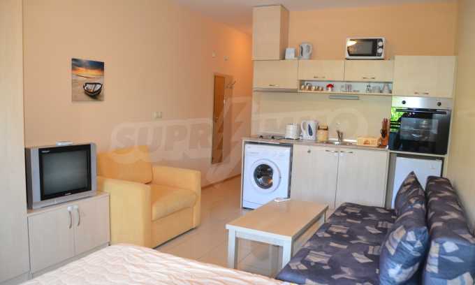 We offer you fully furnished studio apartment in a gated complex next to one of the most popular Black Sea resorts in Bulgaria, Albena.