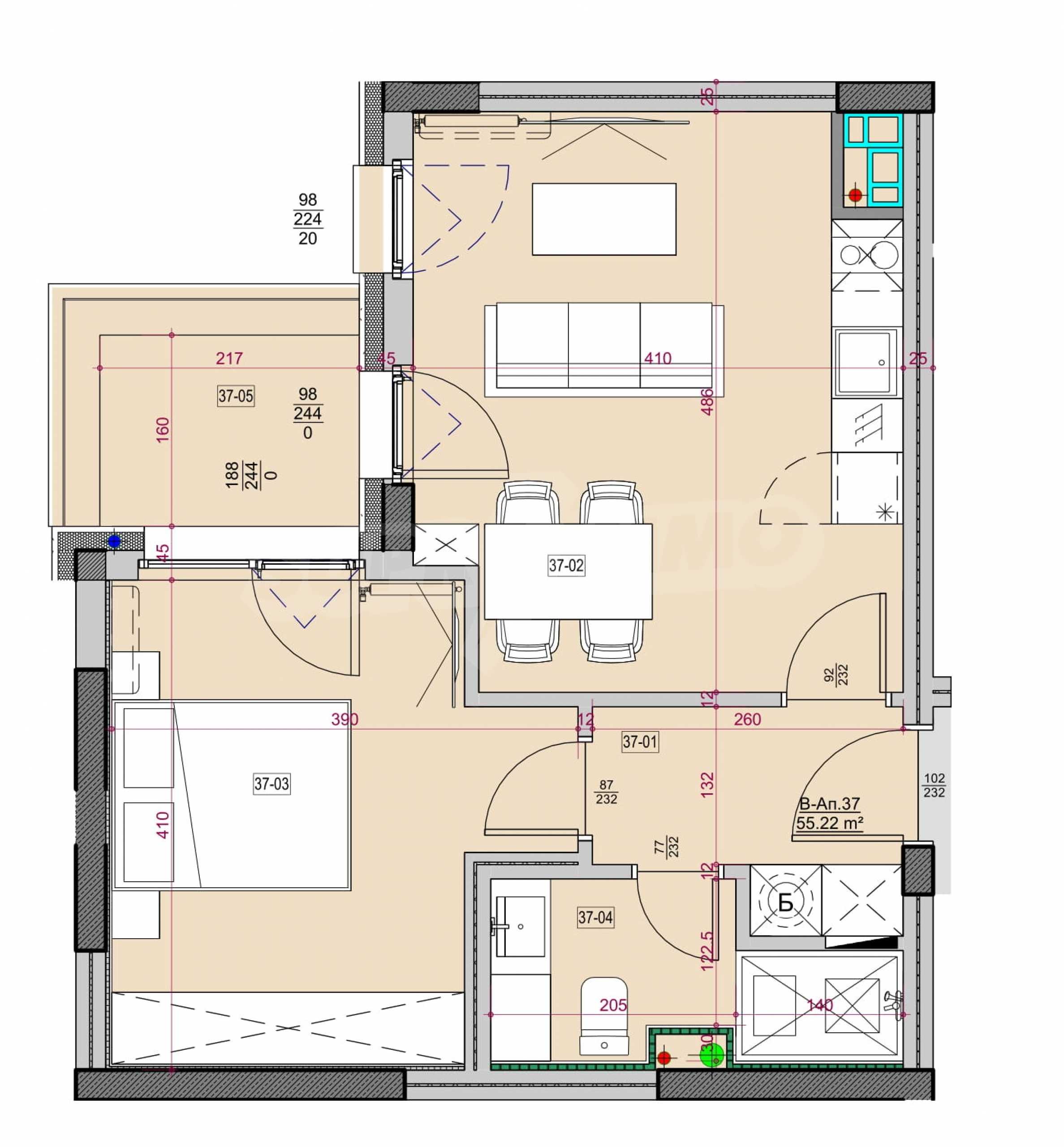 Апартаментът има следното разпределение: