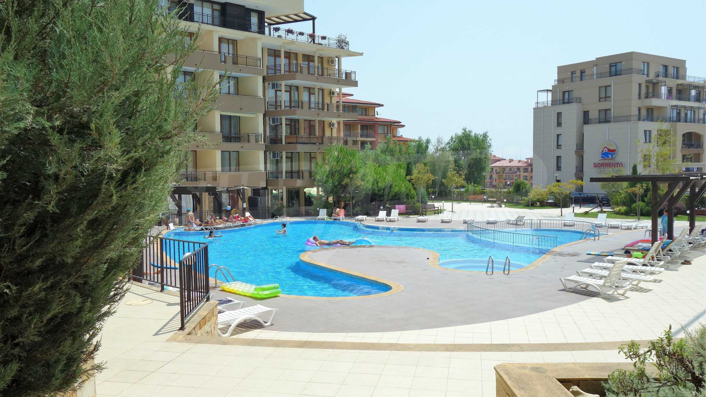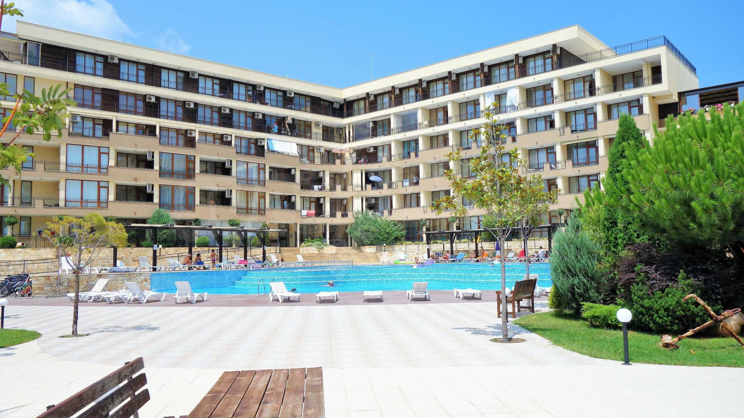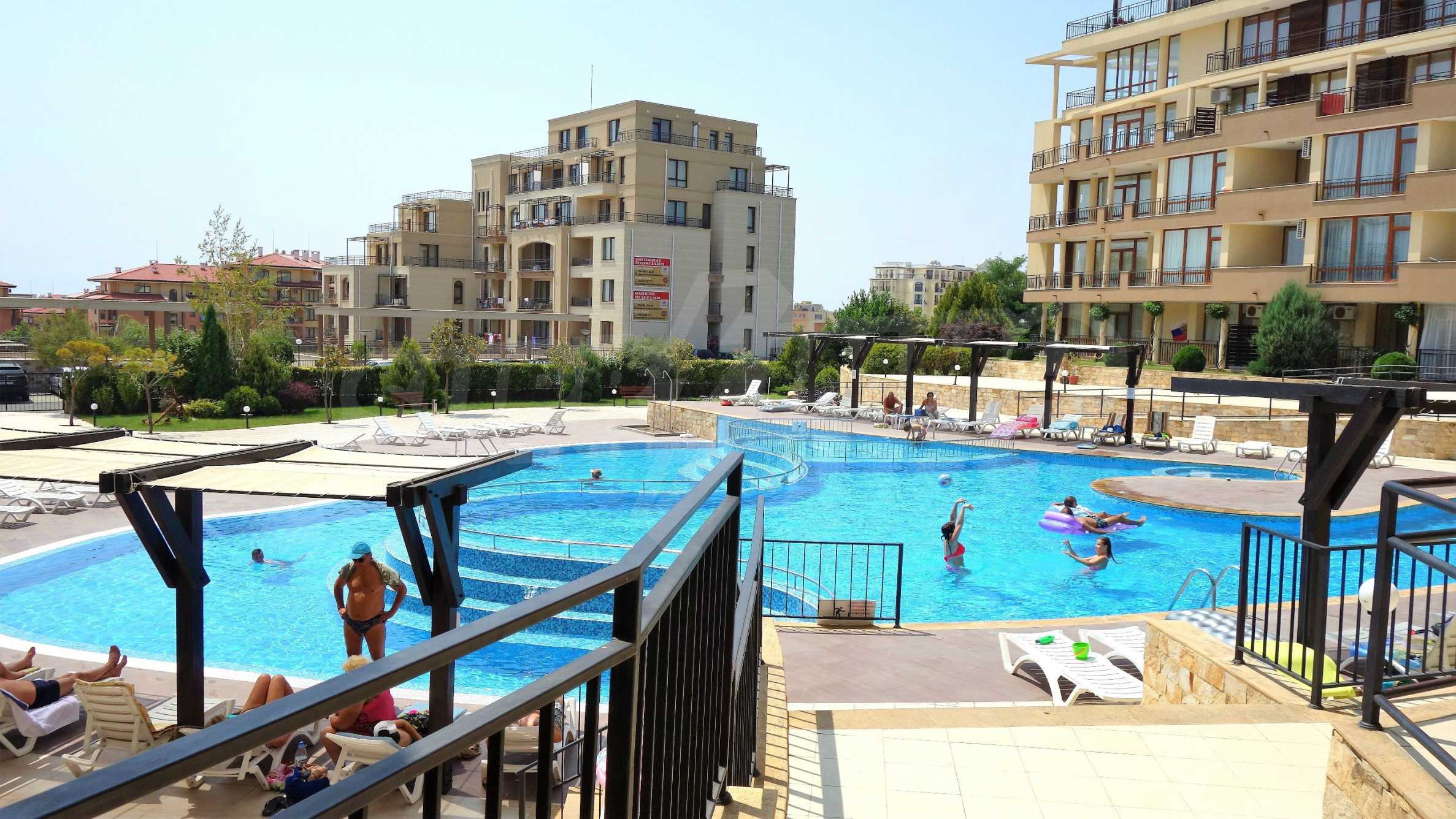 Luxor Complex предлага всички съвременни условия за една морска почивка – външен басейн с по-плитка част за малките туристи, детска площадка, много градини с пейки, парко места, воден бар, ресторант и търговски център.