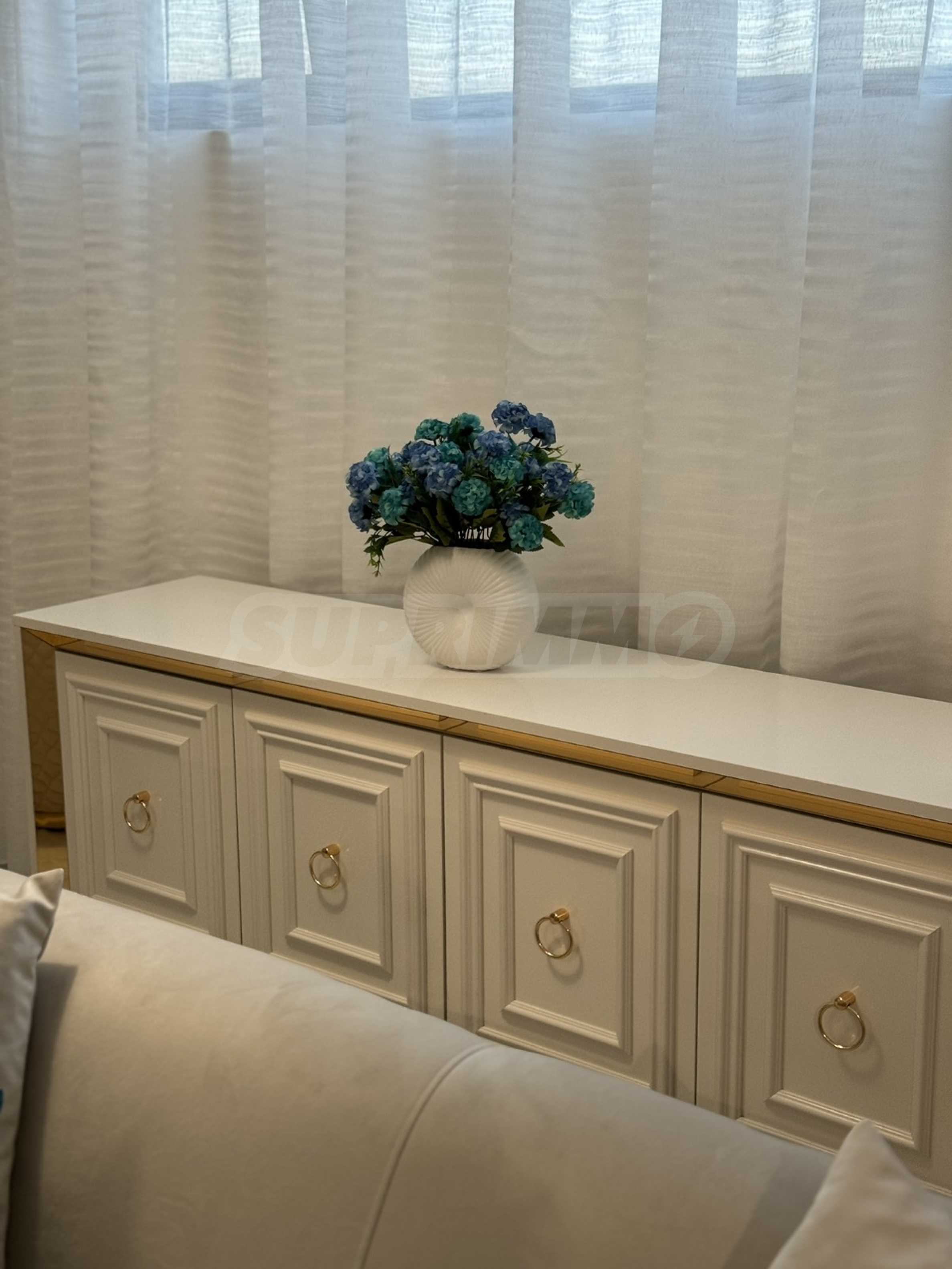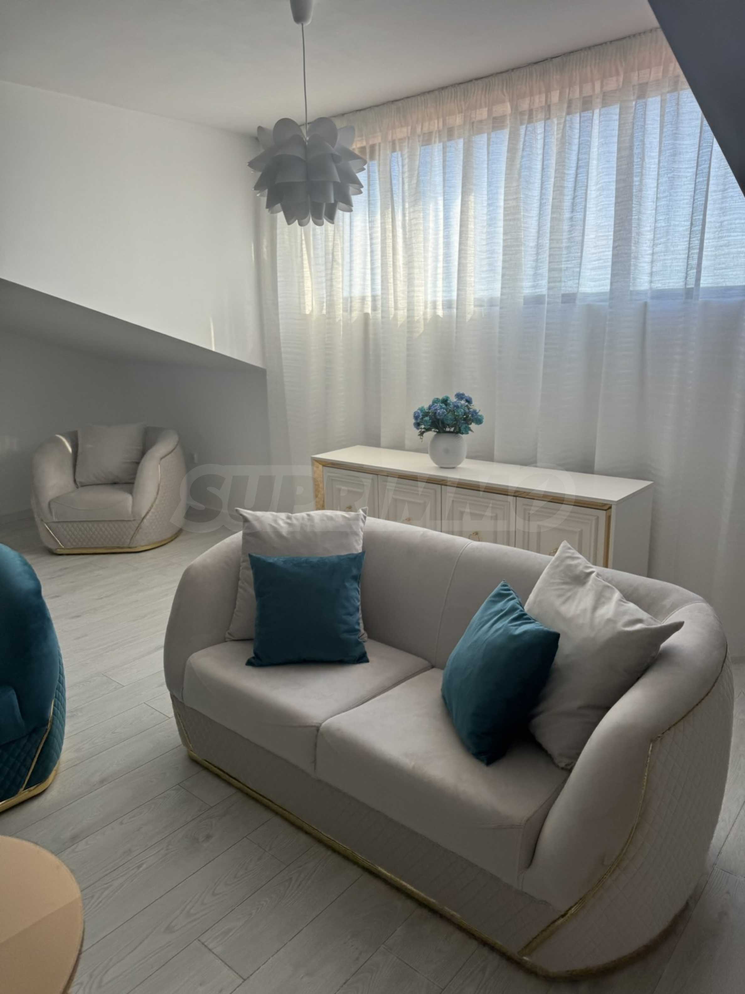 Просторният дневен тракт и уютната спалня са проектирани с високо внимание към детайлите, използвайки висококачествени материали и модерен дизайн.