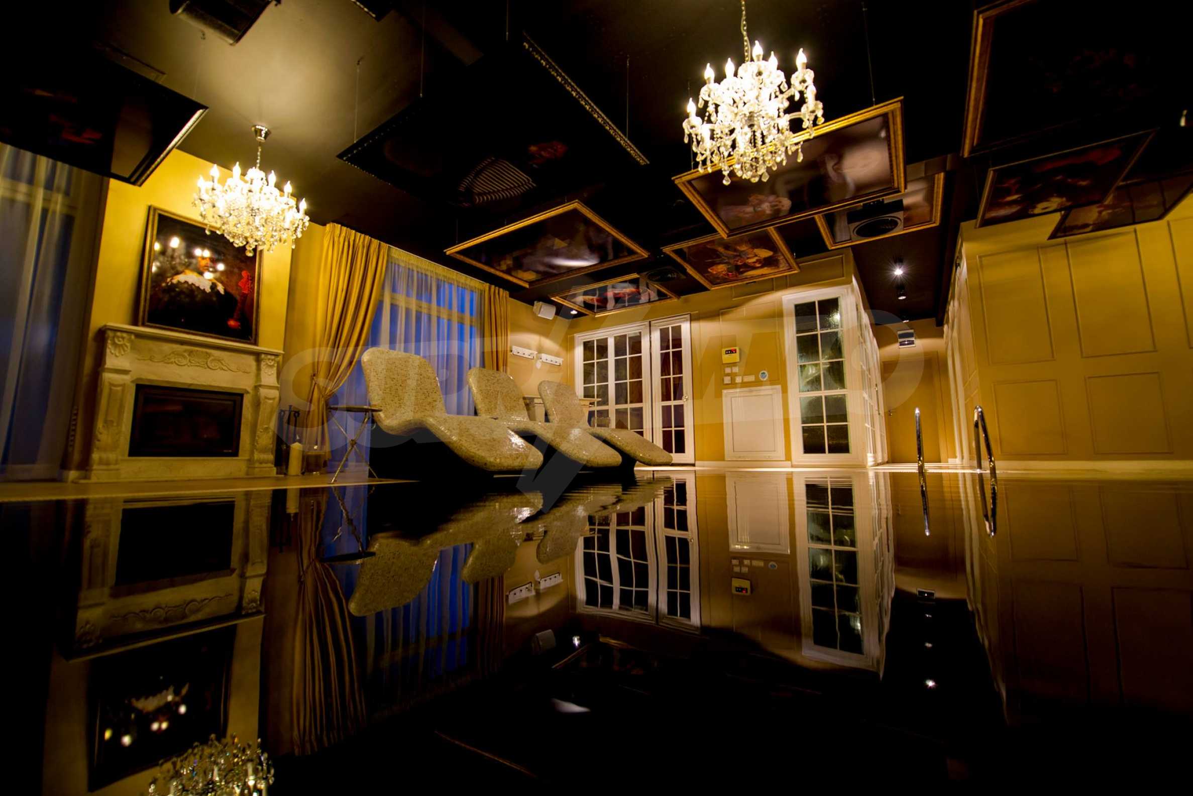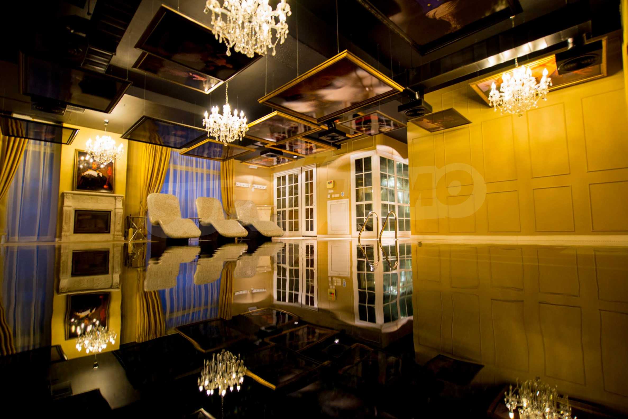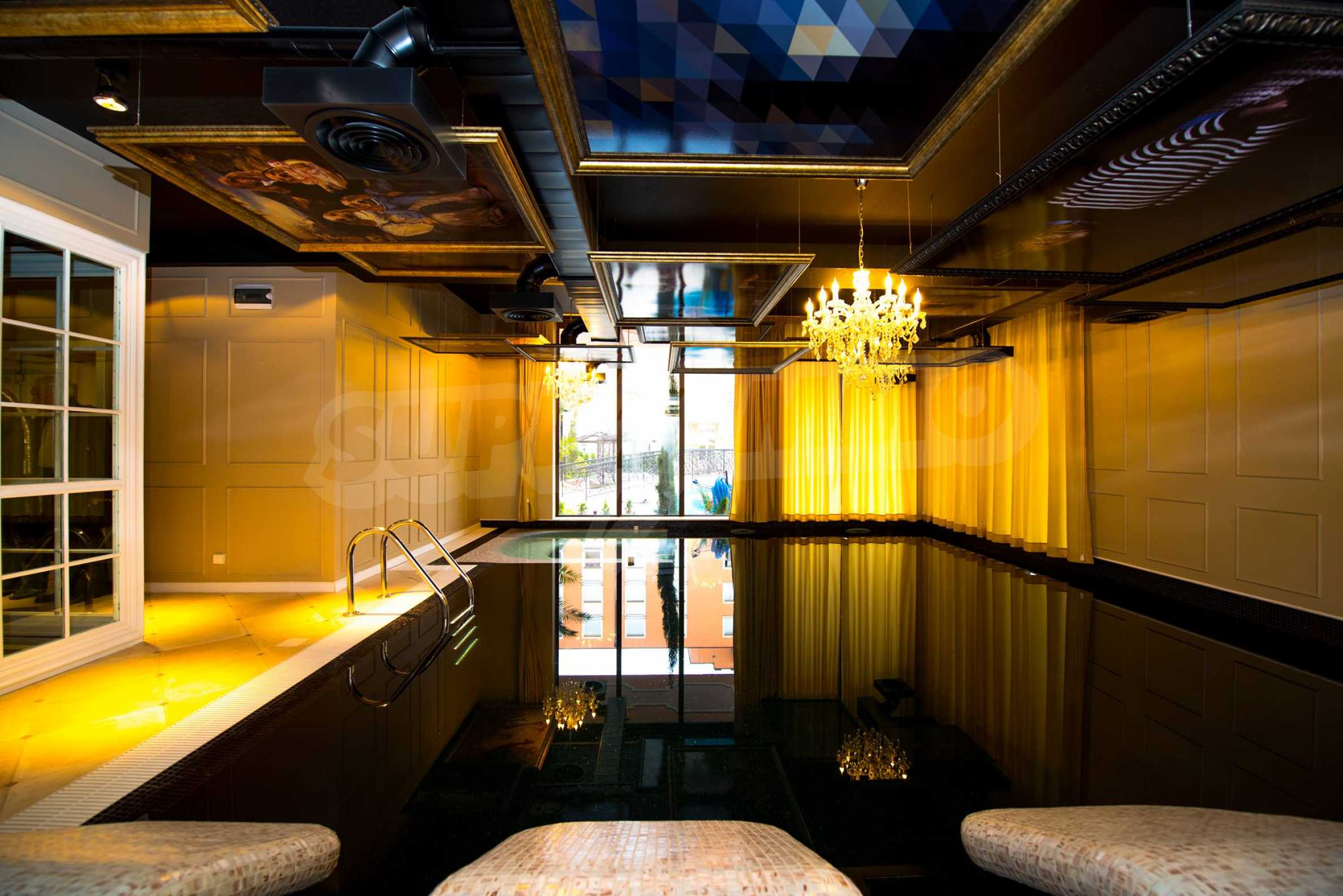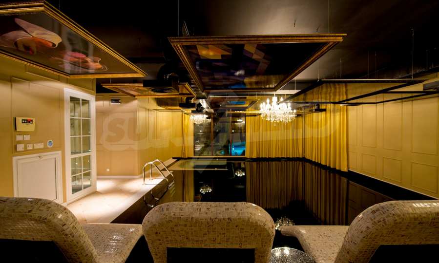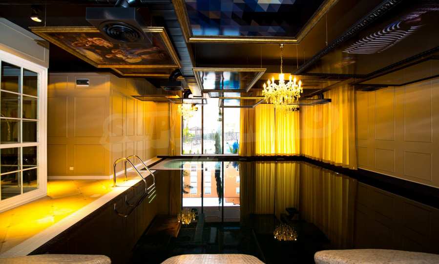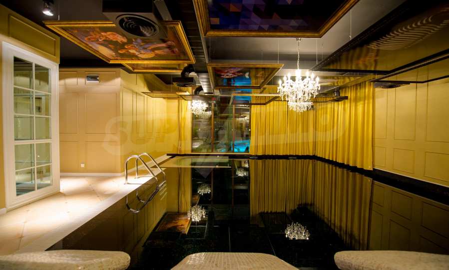 СПА-центърът включва: луксозен закрит плувен басейн с декорирани тавани и стени в стил барок и златни акценти, сауна и турска баня.