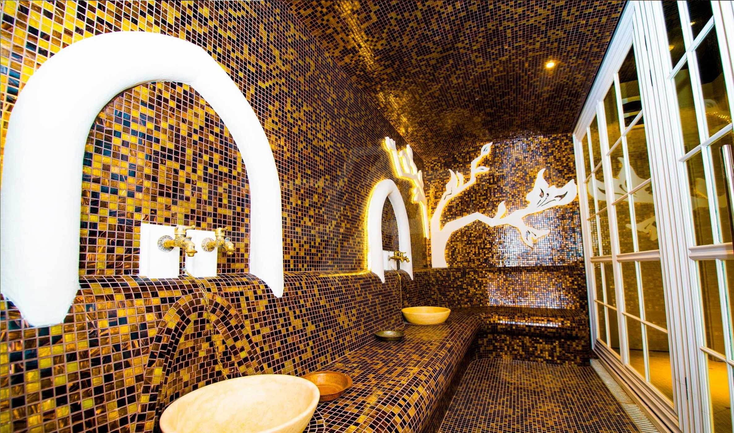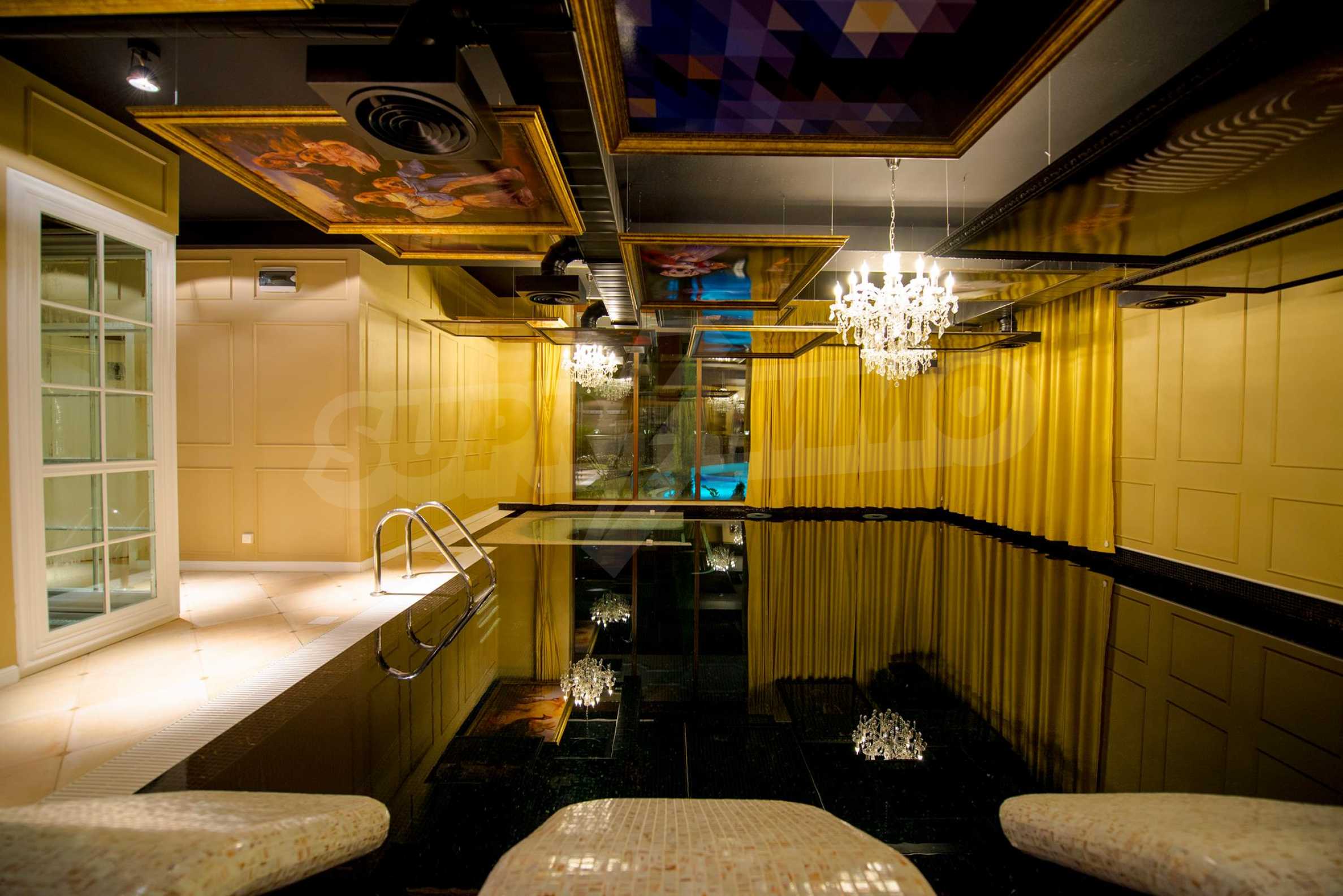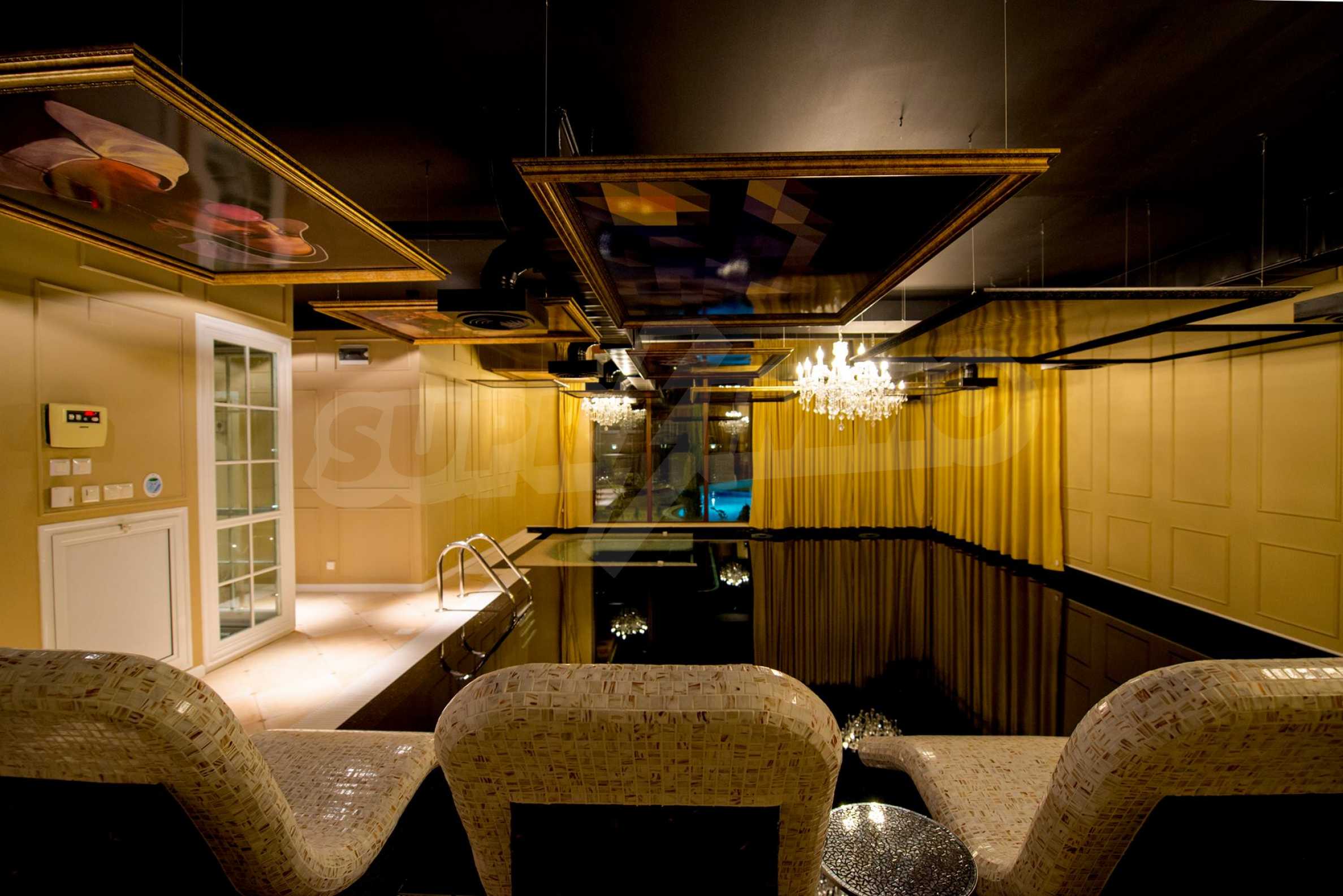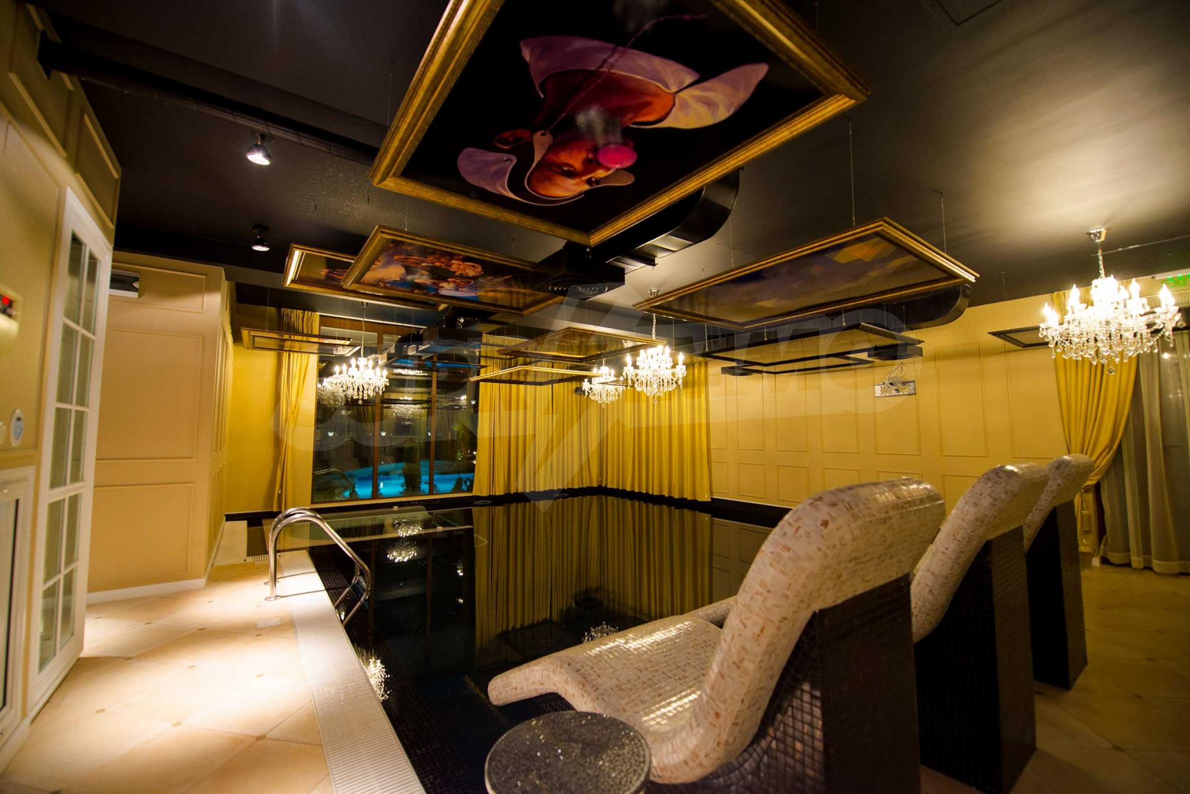 СПА-центърът включва: луксозен закрит плувен басейн с декорирани тавани и стени в стил барок и златни акценти, сауна и турска баня.