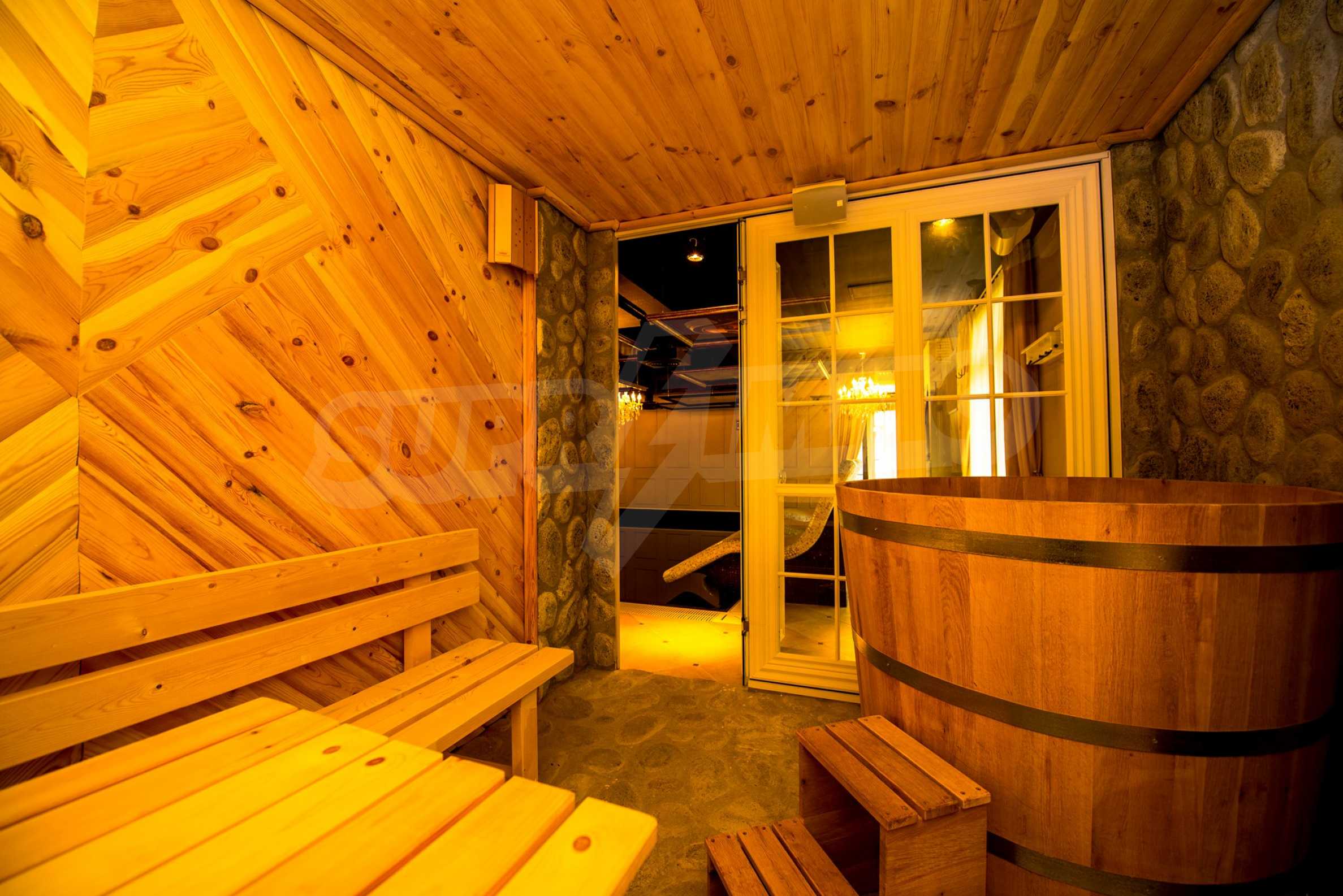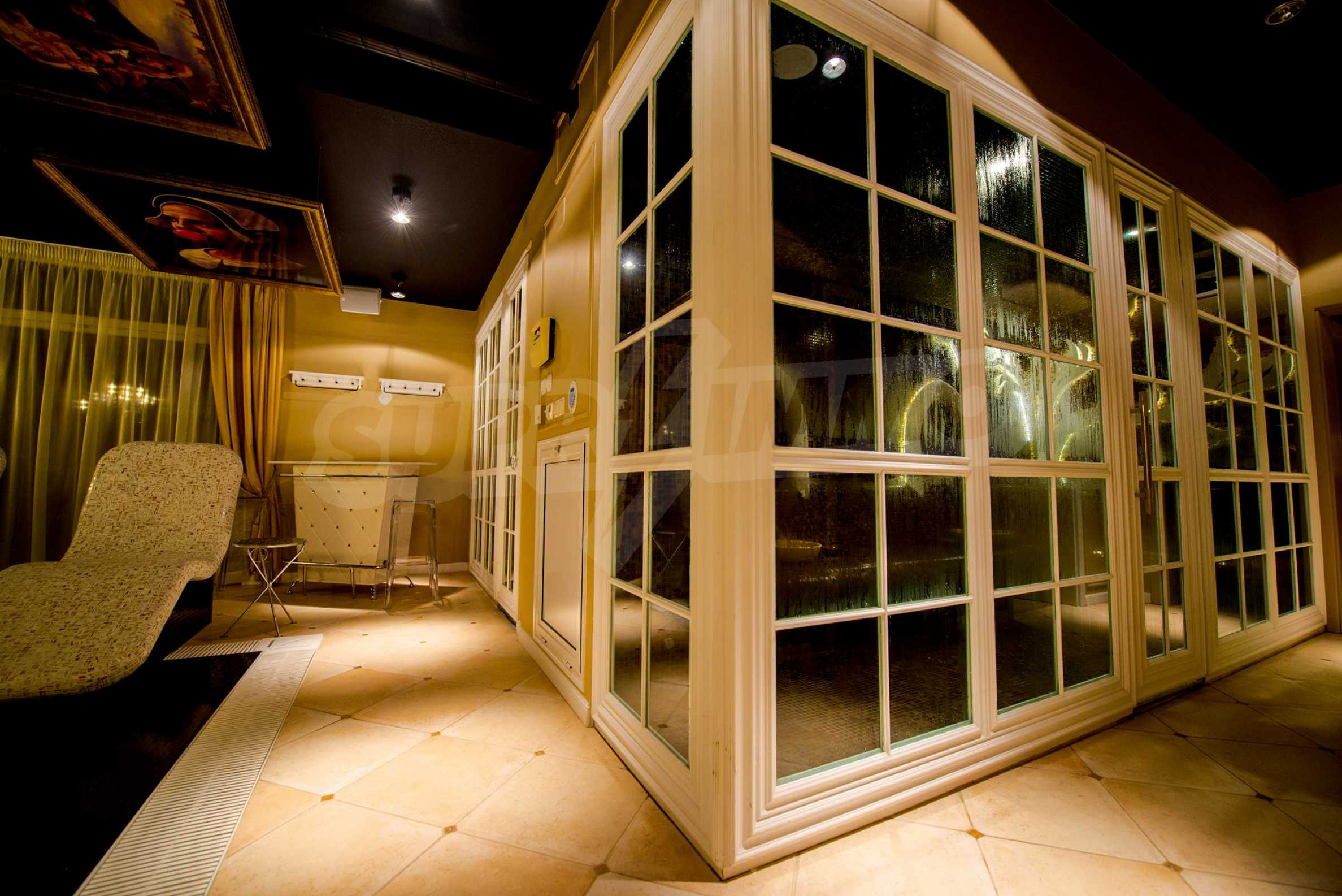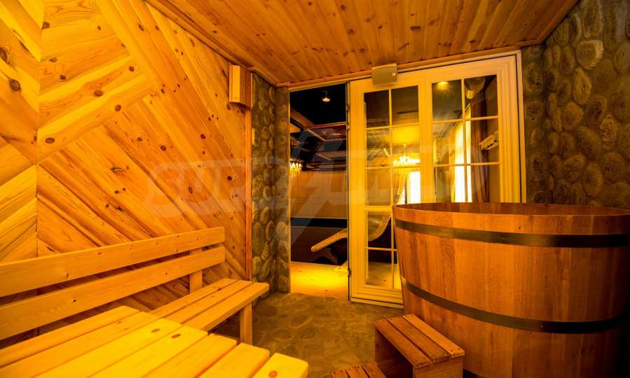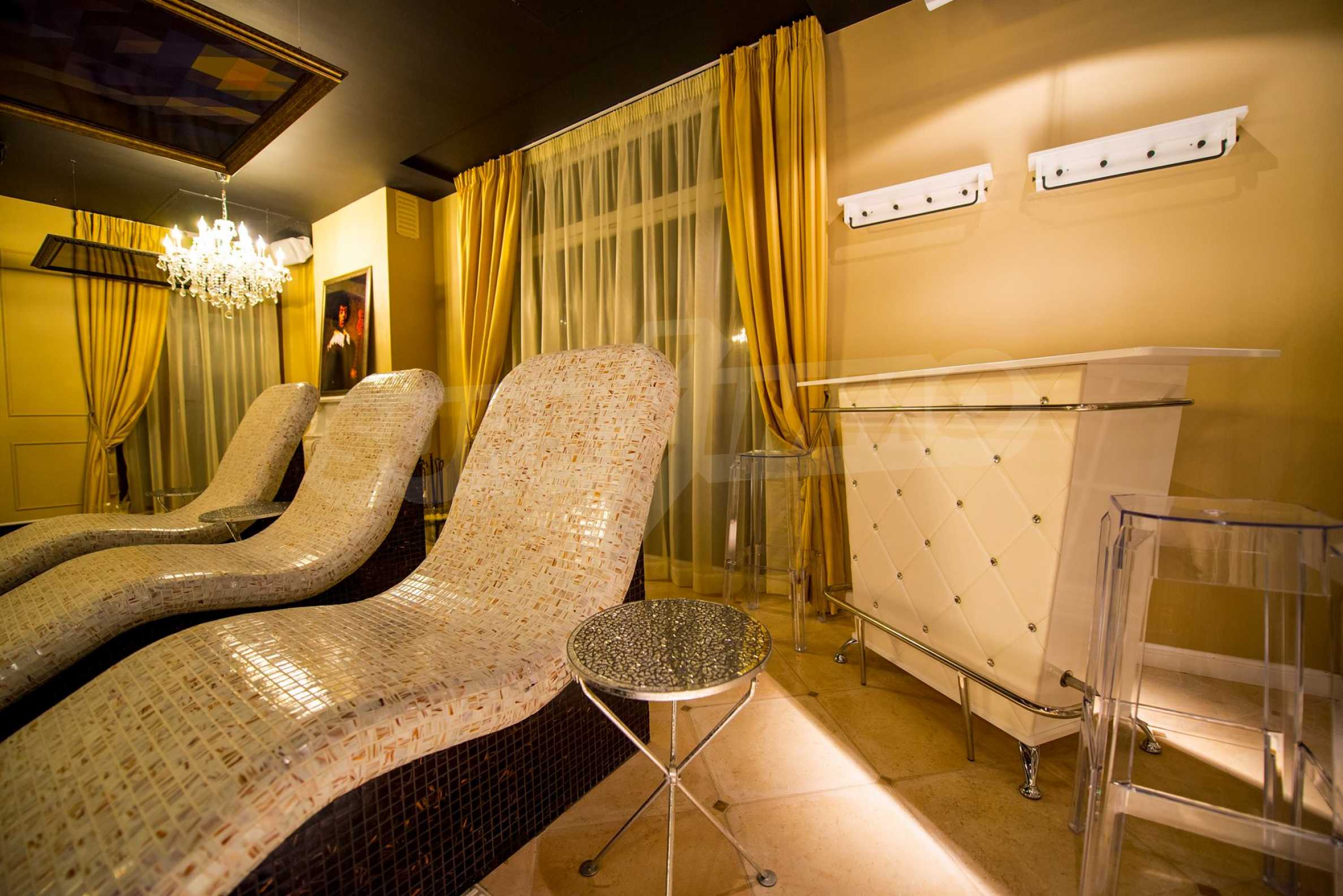 СПА-центърът включва: луксозен закрит плувен басейн с декорирани тавани и стени в стил барок и златни акценти, сауна и турска баня.