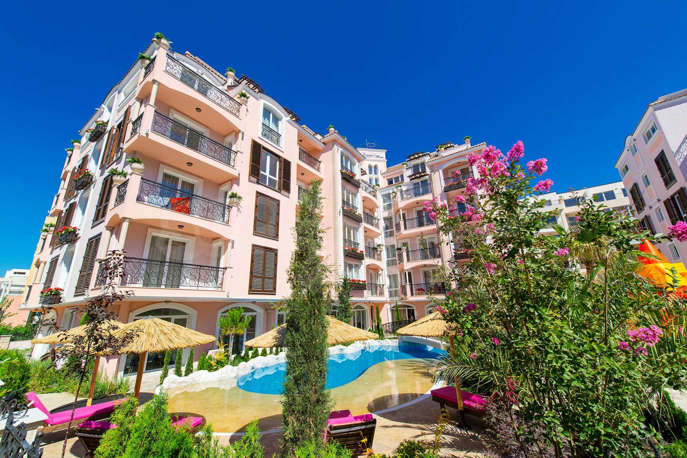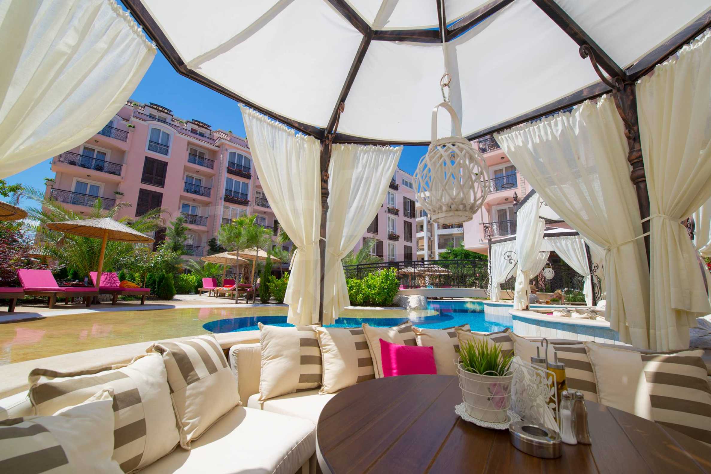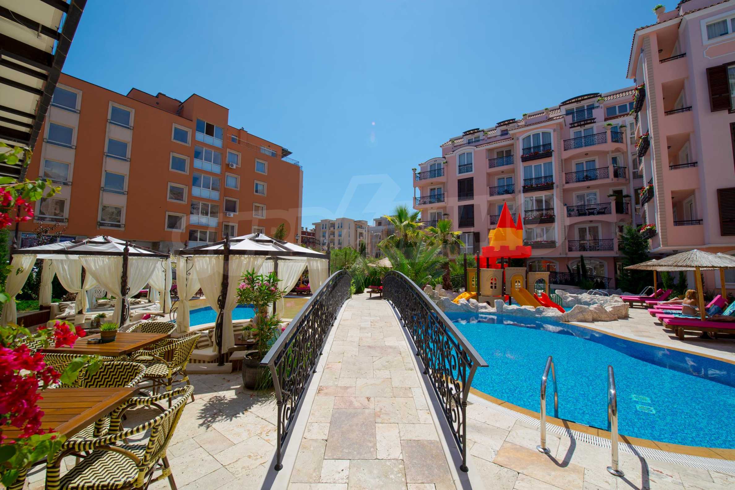 Комплексът се намира в южната част на курорта и разполага с първокласни удобства на територията: