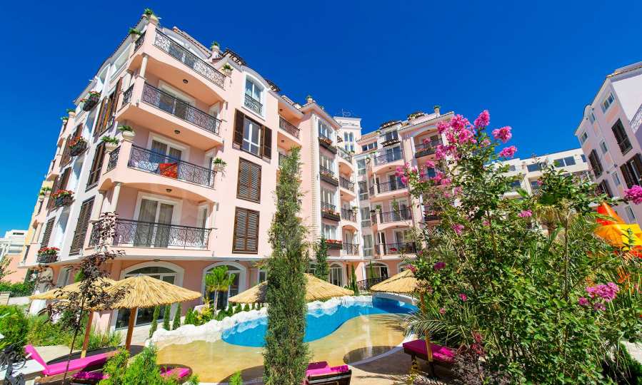 Архитектурата и концепцията на комплекса са вдъхновени от архитектурното богатство на Френската Ривиера, с внимание към детайла, с уютния чар на Сен Тропе или едно от онези райски кътчета около Ница. Арки, пастелни цветове, състарени плочки, цветя, палми, маслини, часовникова кула - това е духът на този чаровен комплекс.