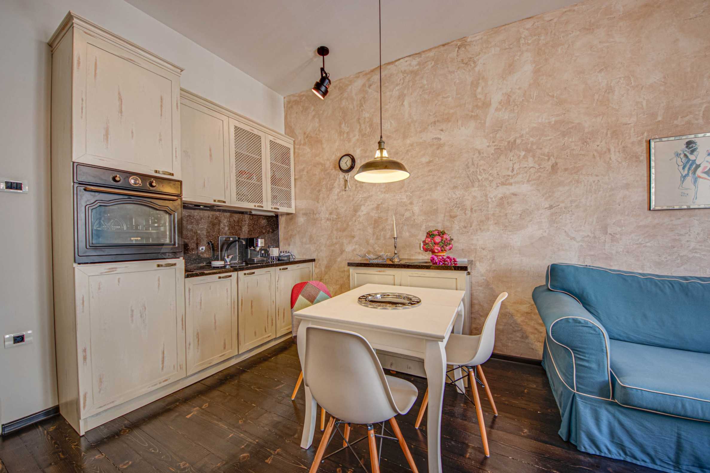Обзавеждане: Мека мебел; холна маса; маса за хранене с четири стола; Тв шкаф; LCD “Sony”; вградена кухня; хладилник; фурна „Gorenje”; съдомиялна „Ariston”; перaлня „Ariston”