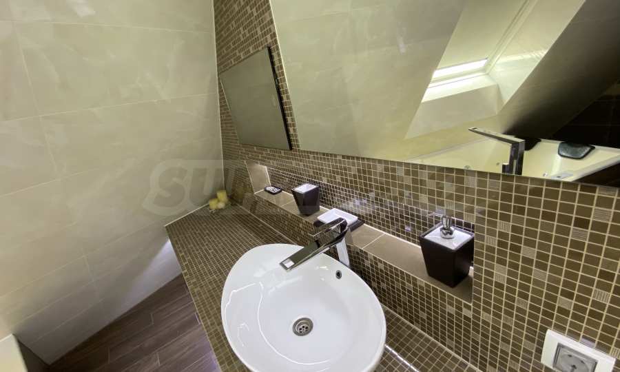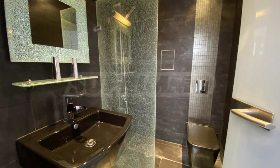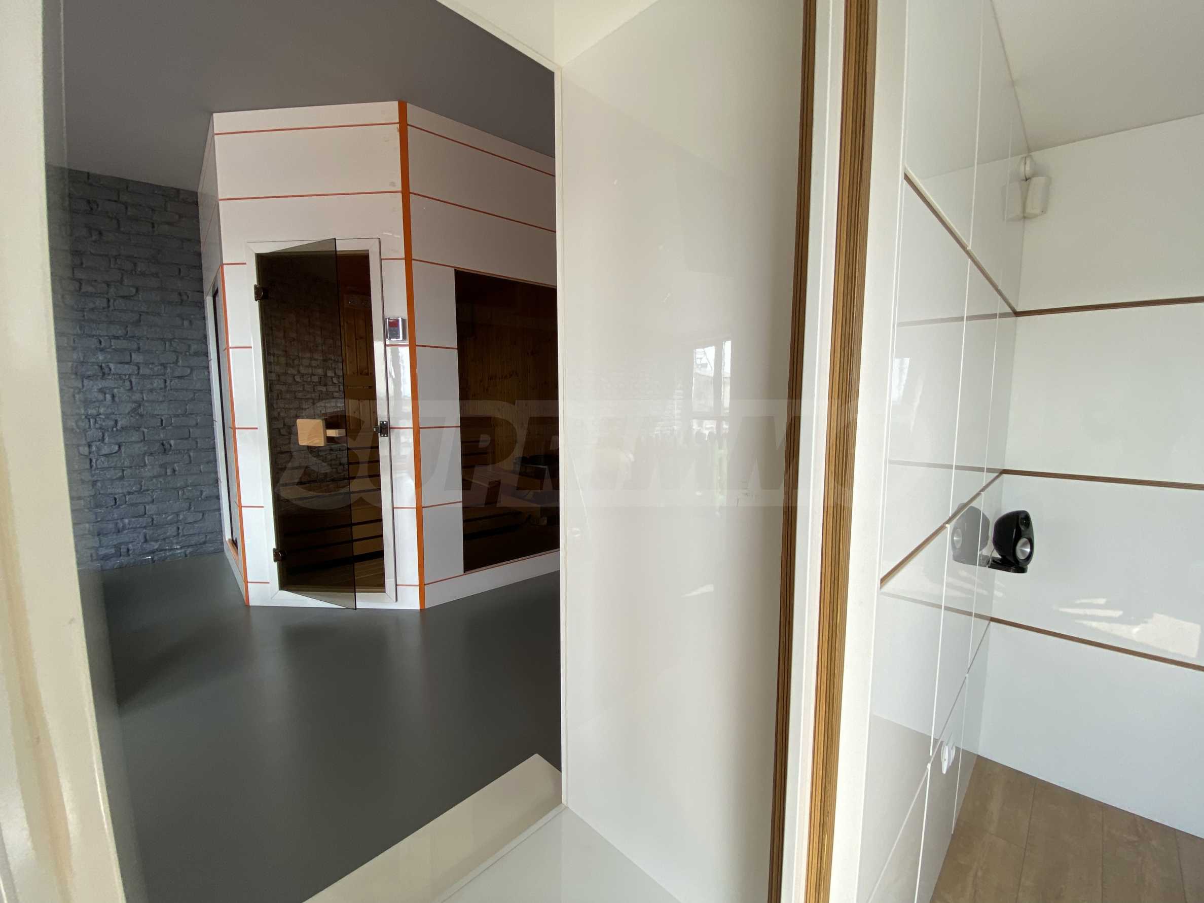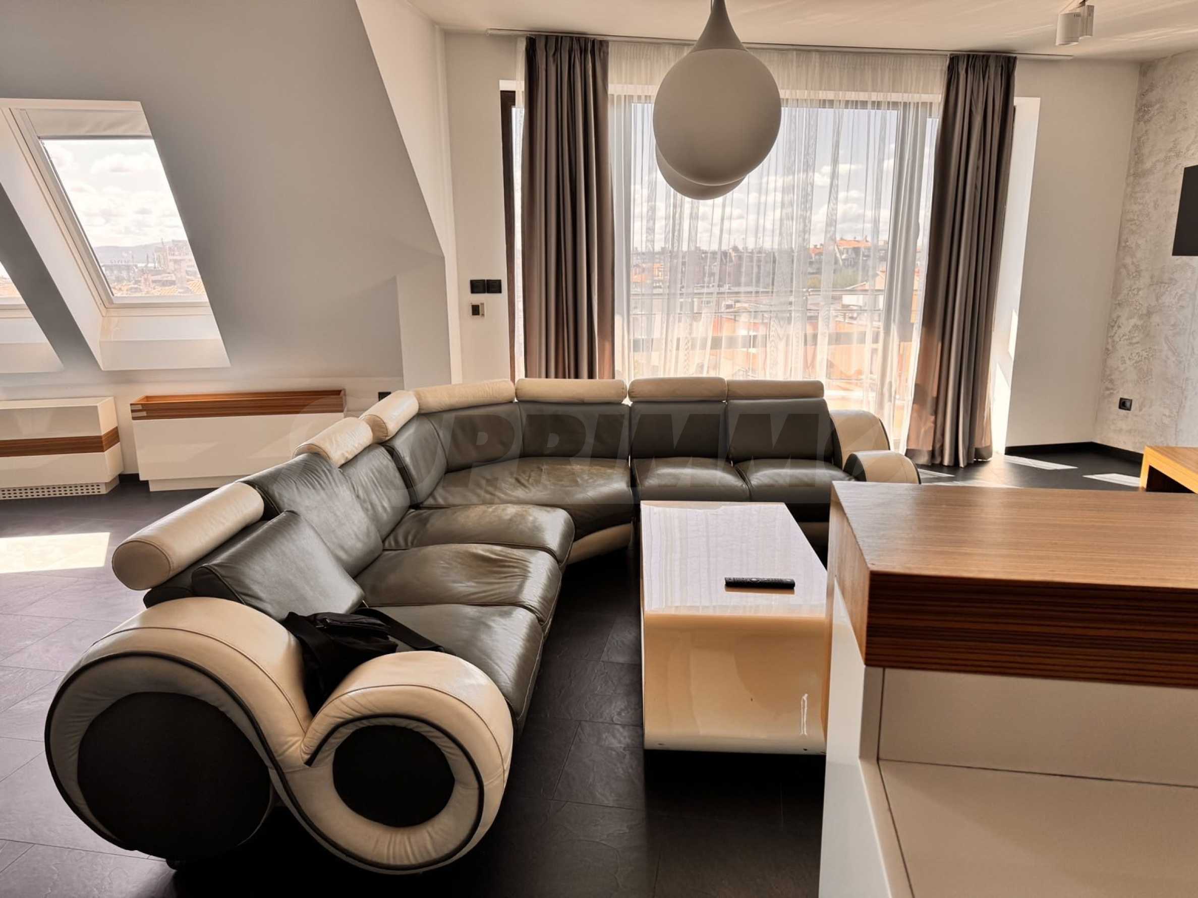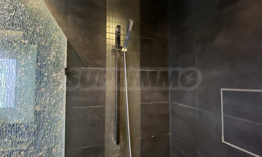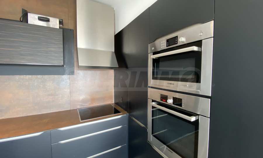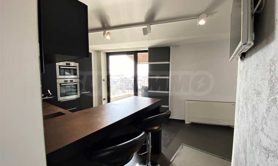 Апартаментът е обзаведен и оборудван с черна и бяла техника от висок клас, аларма, видеонаблюдение, озвучителна система и други съвременни екстри. Предлага се с пълното обзавеждане и оборудване, с дизайнерска кухня SYKORA (Чехия), мебелите са изработени от MORATO MEBEL. Довършителните работи в жилището допълват модерния интериор, в цветовата гама на сиви, бели и земни тонове, с подбрани материали като японски облицовъчен камък.