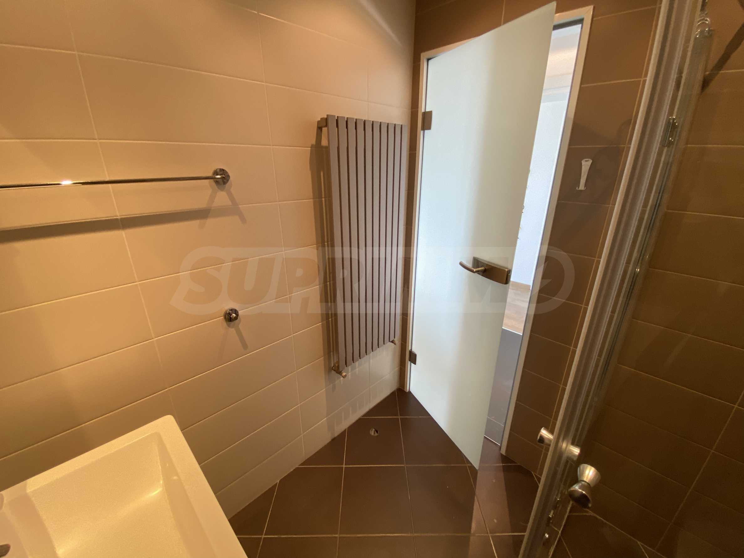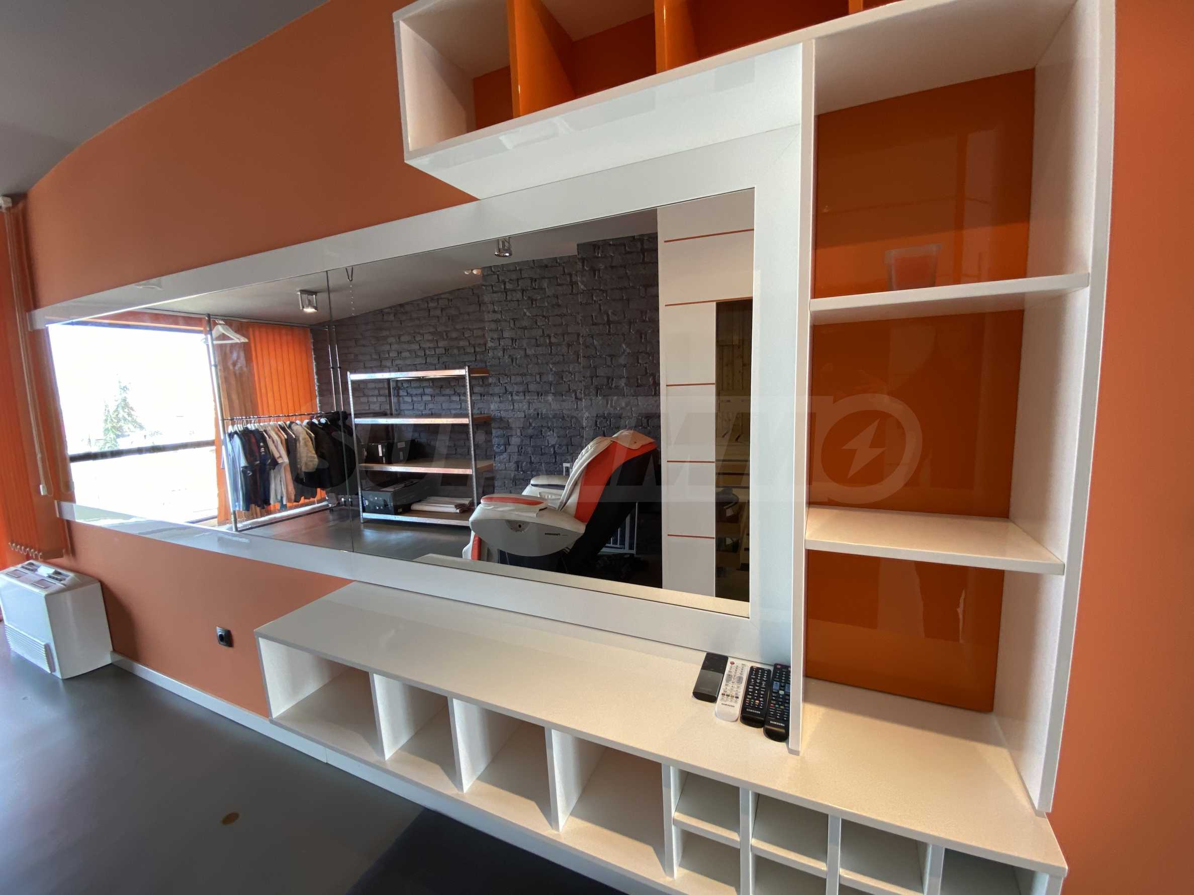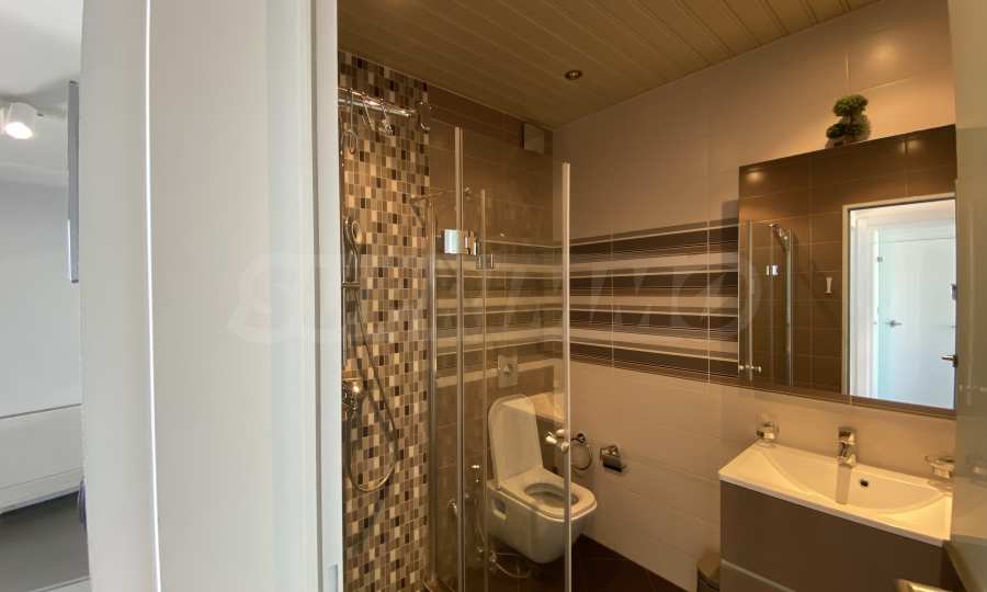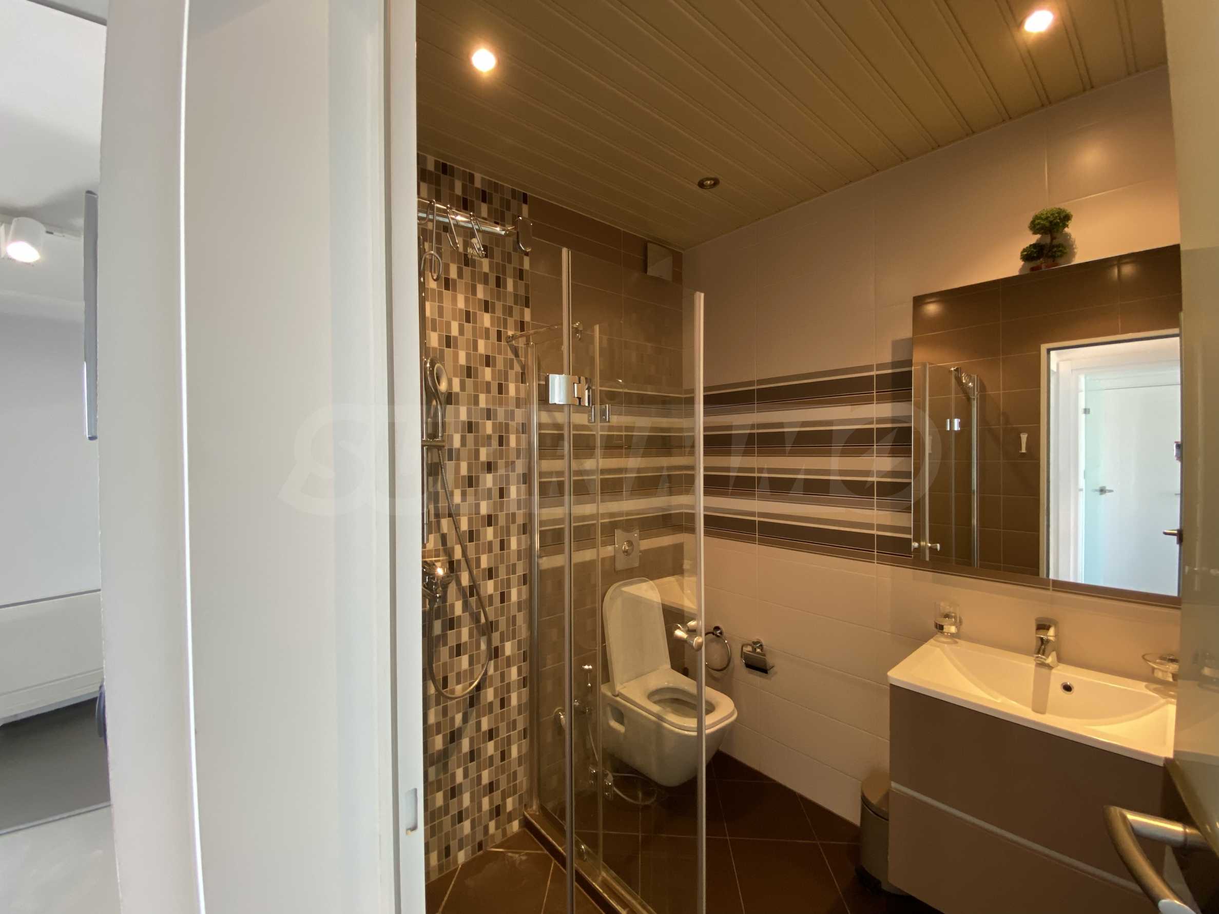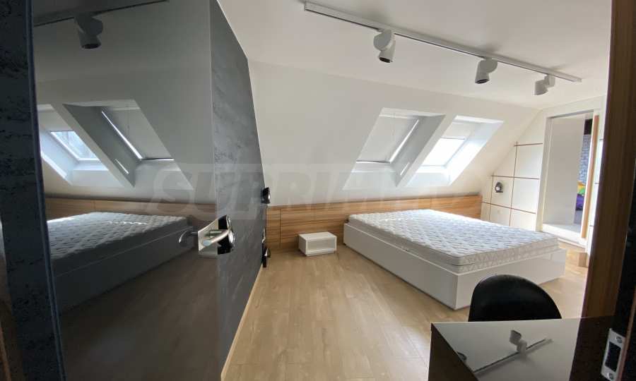 Апартаментът е обзаведен и оборудван с черна и бяла техника от висок клас, аларма, видеонаблюдение, озвучителна система и други съвременни екстри. Предлага се с пълното обзавеждане и оборудване, с дизайнерска кухня SYKORA (Чехия), мебелите са изработени от MORATO MEBEL. Довършителните работи в жилището допълват модерния интериор, в цветовата гама на сиви, бели и земни тонове, с подбрани материали като японски облицовъчен камък.