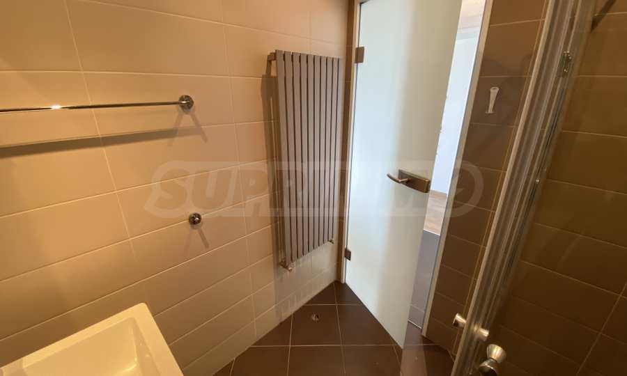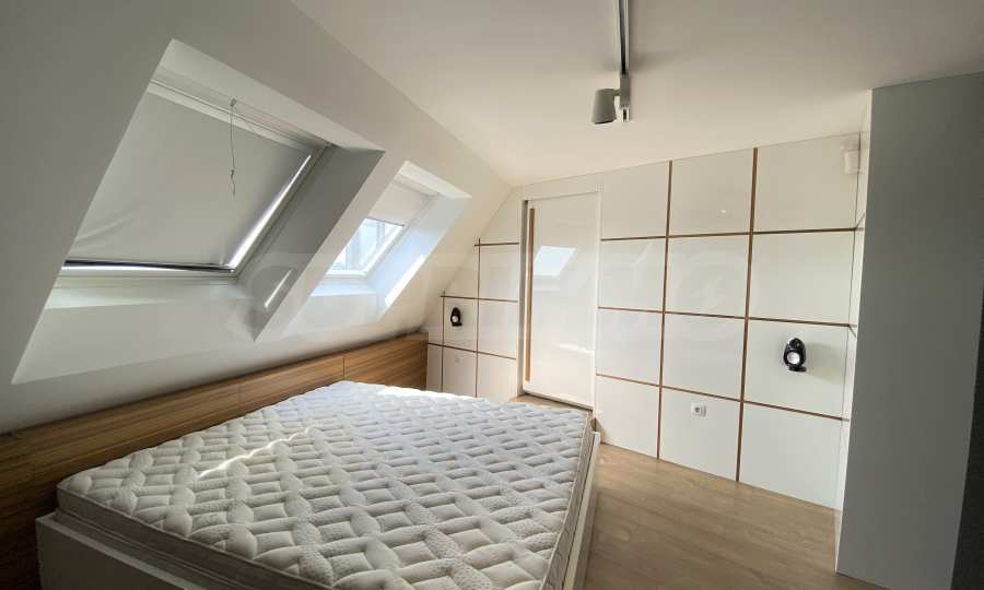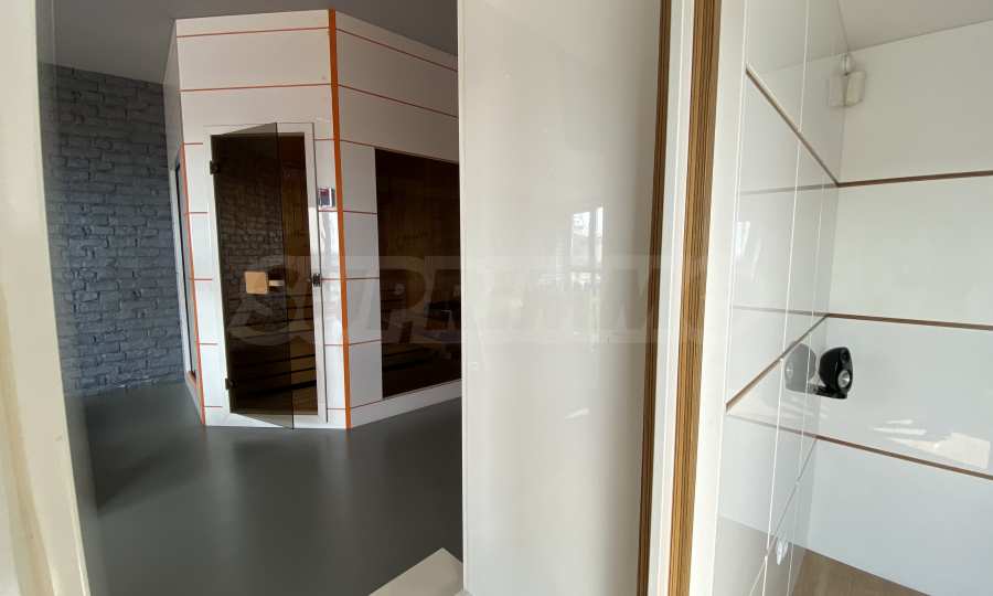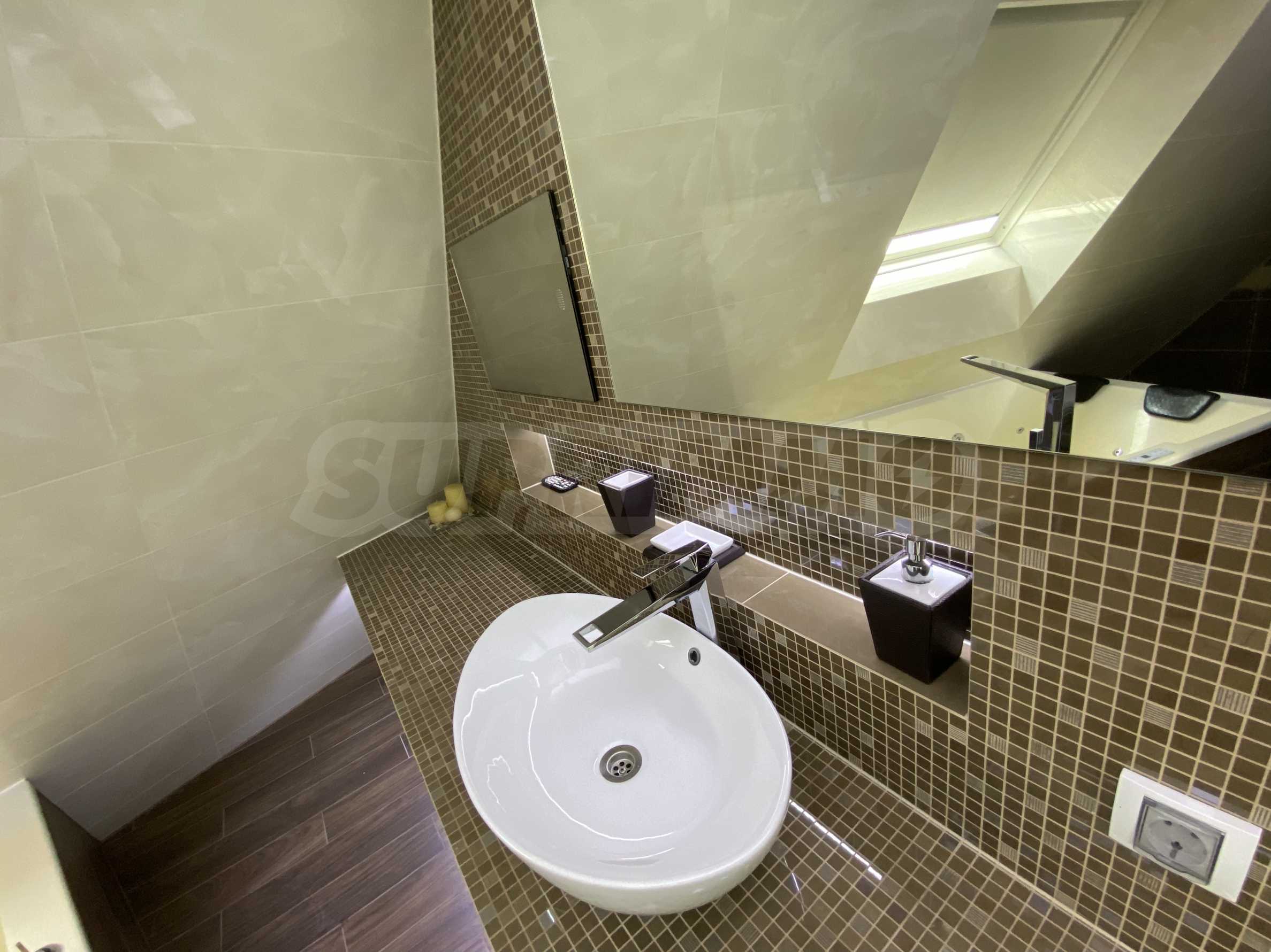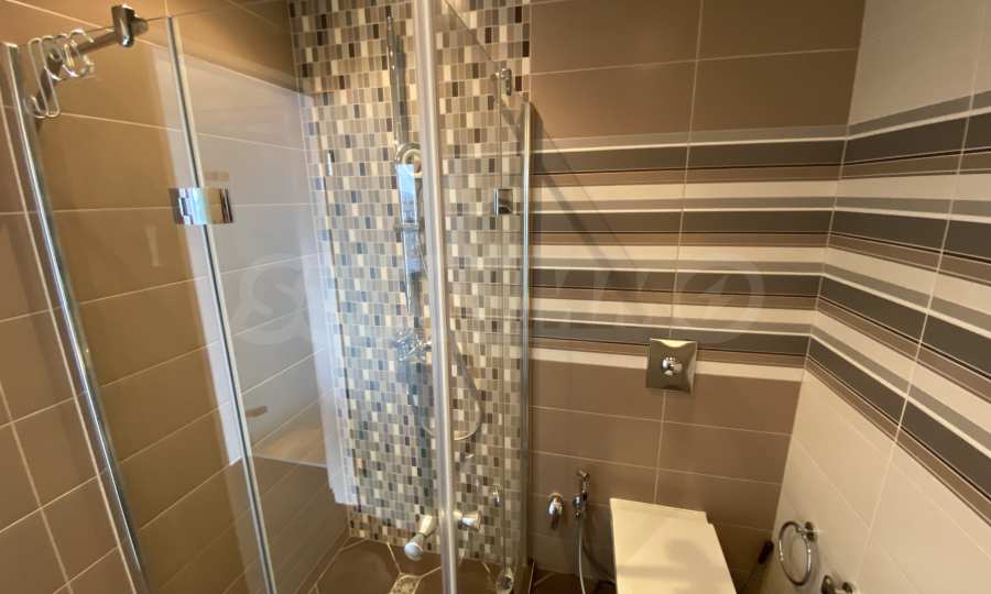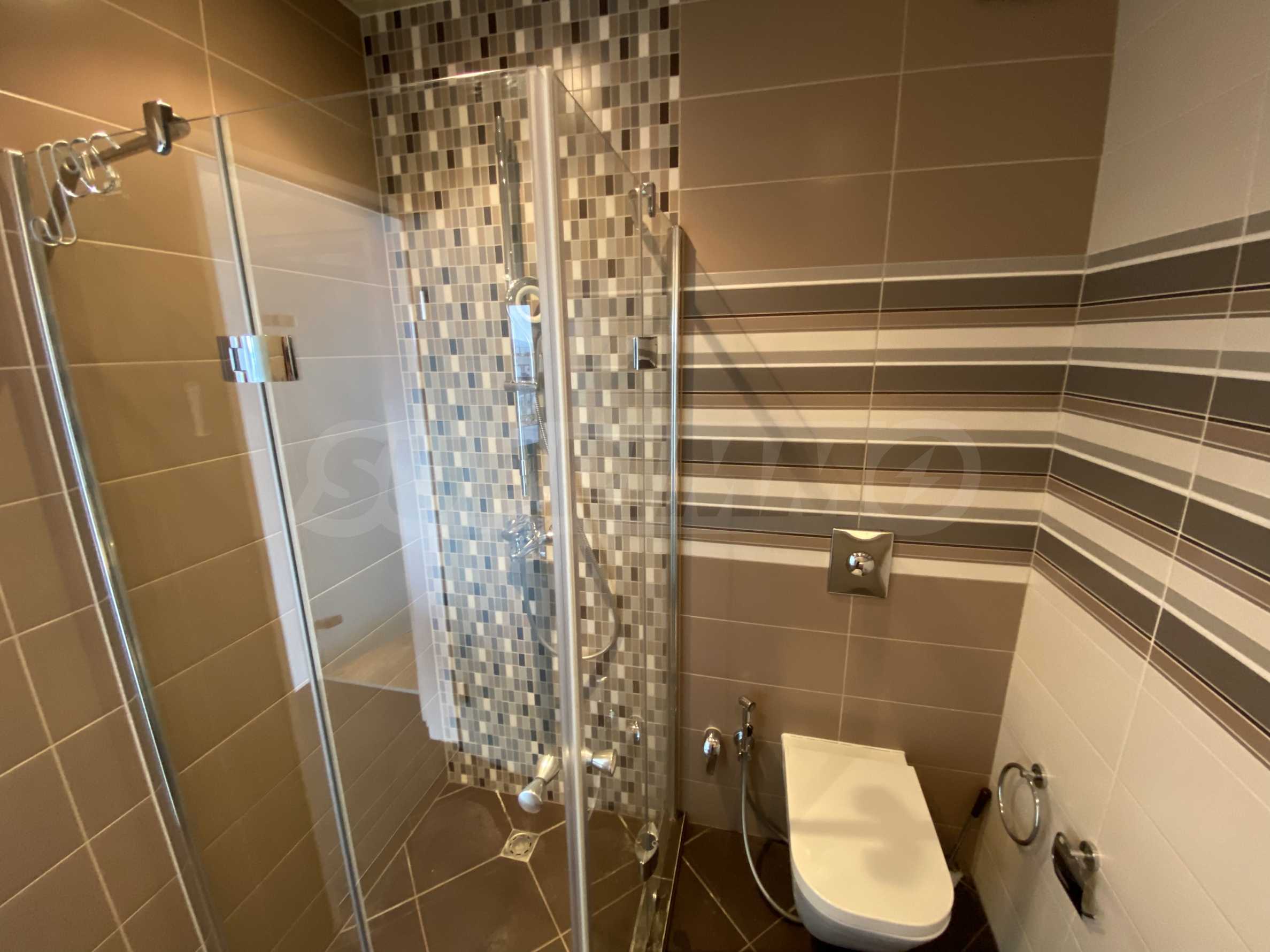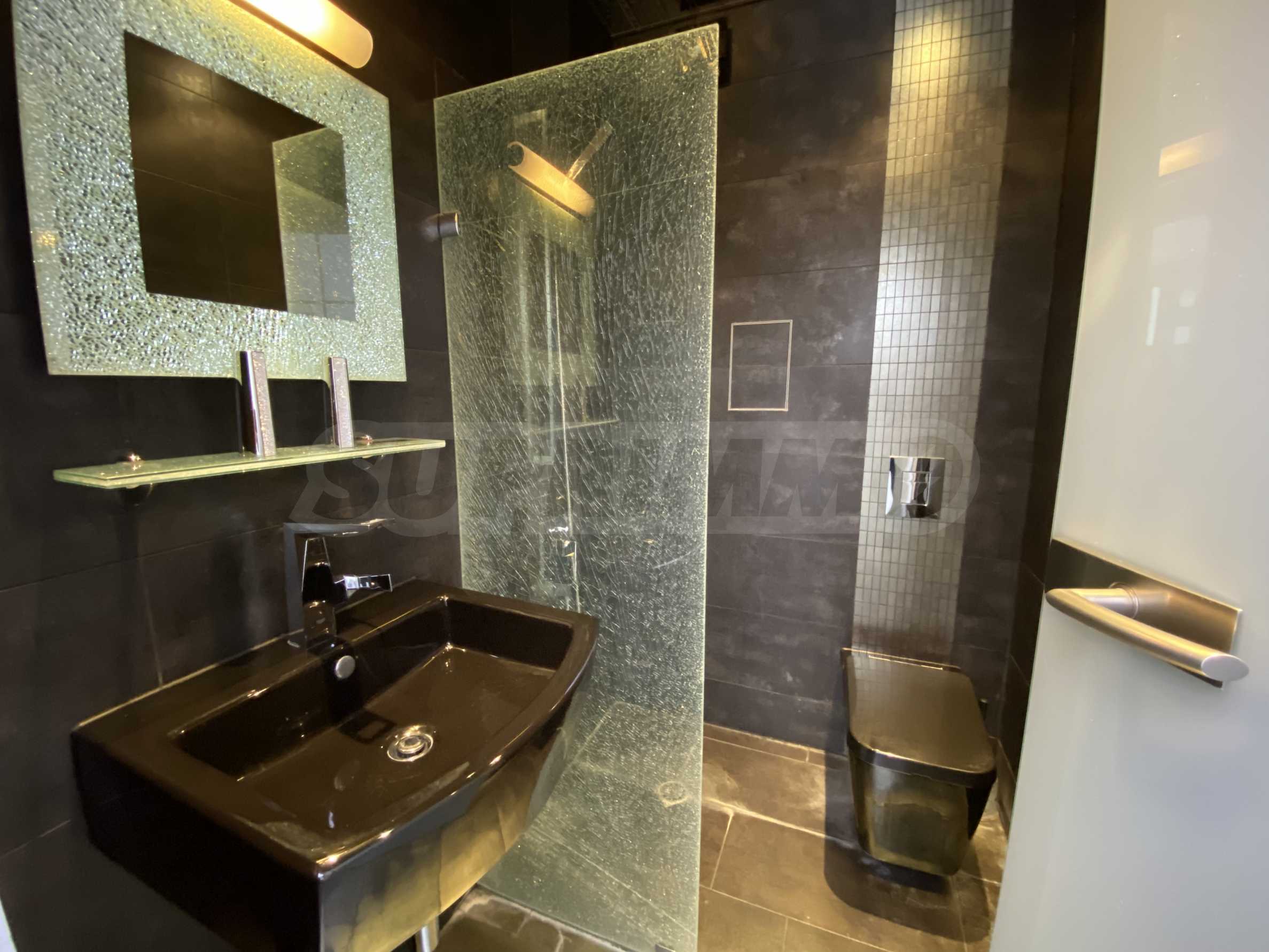 Апартаментът е обзаведен и оборудван с черна и бяла техника от висок клас, аларма, видеонаблюдение, озвучителна система и други съвременни екстри. Предлага се с пълното обзавеждане и оборудване, с дизайнерска кухня SYKORA (Чехия), мебелите са изработени от MORATO MEBEL. Довършителните работи в жилището допълват модерния интериор, в цветовата гама на сиви, бели и земни тонове, с подбрани материали като японски облицовъчен камък.