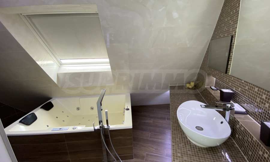 Отоплението е решено с подово отопление, конвектори, слънчев колектор и термопомпа, италианска камина на газ PIAZZETTA. Има система за видеонаблюдение, СОТ и цифрова телевизия /последните две предплатени за 1 година/