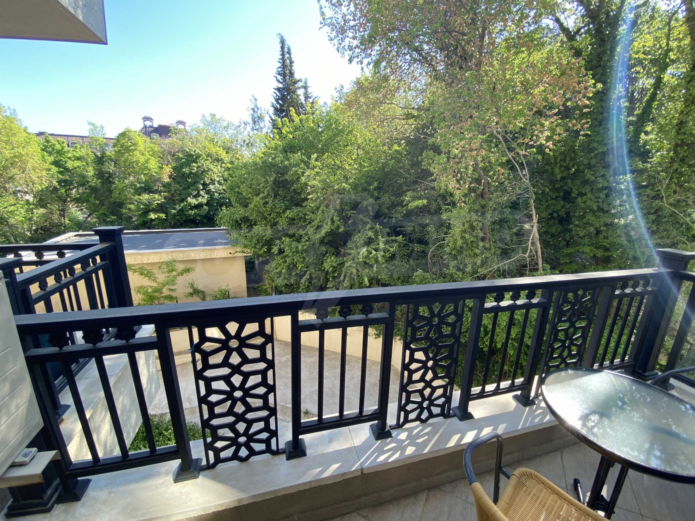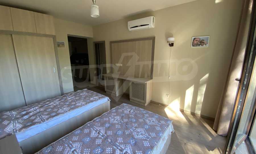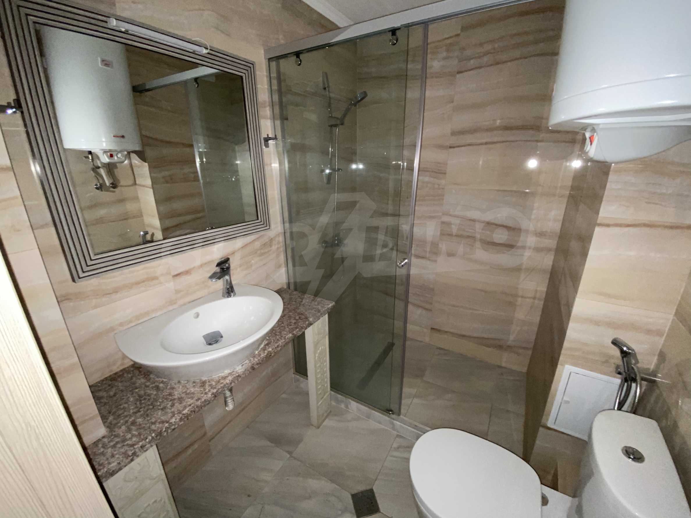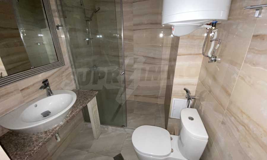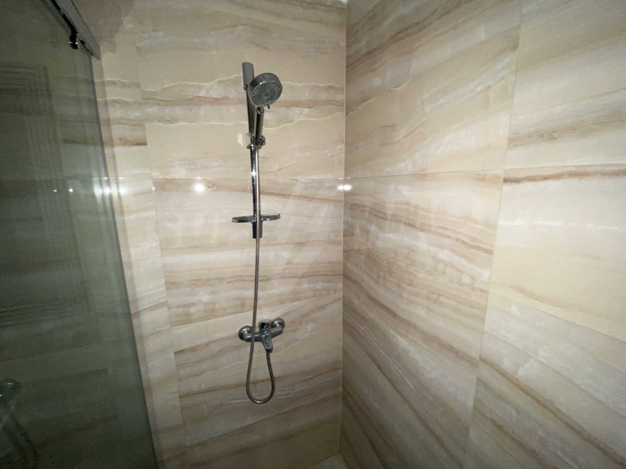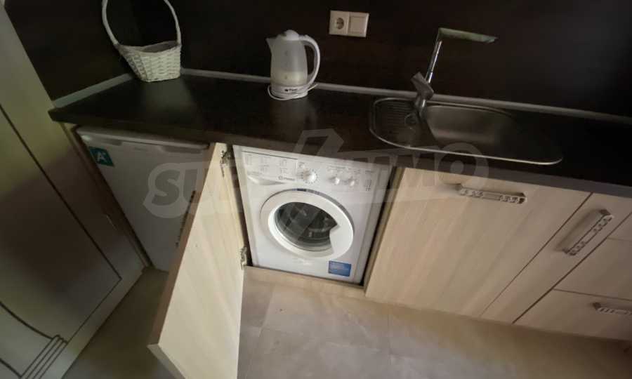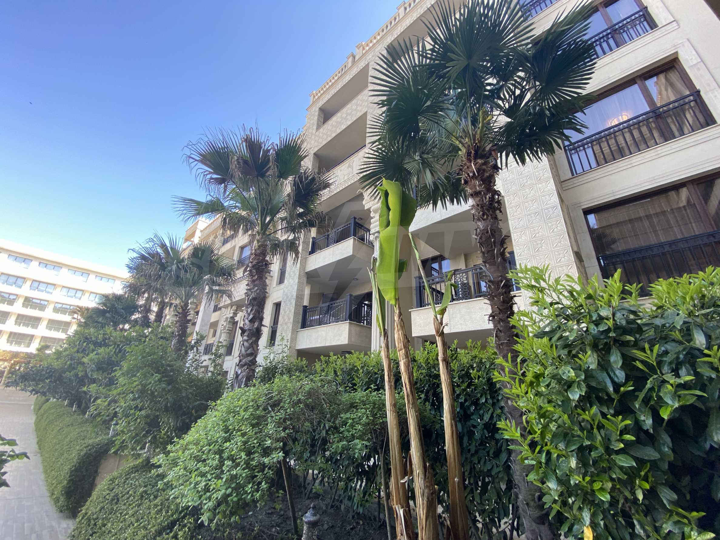 Имотът е разположен на 4-ти етаж, с южно изложение и се състои от една стая, коридор, баня с тоалет и тераса. Студиото е мебелирано и се предлага с цялото оборудване. Мебелировката е изпълнена от инвеститора и е в стила на хотелската част. В коридора е вградена кухненска мебел, оборудвана с мивка, хладилник и пералня. Банята е луксозно изпълнена и разполага с душ кабина, тоалет с биде и мивка с гранитен плот.