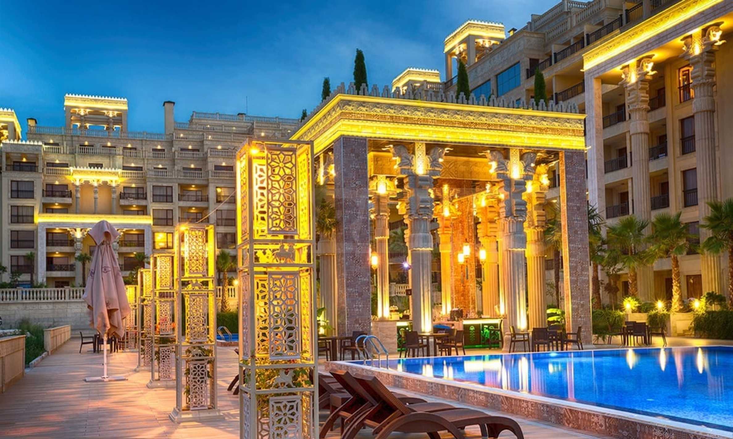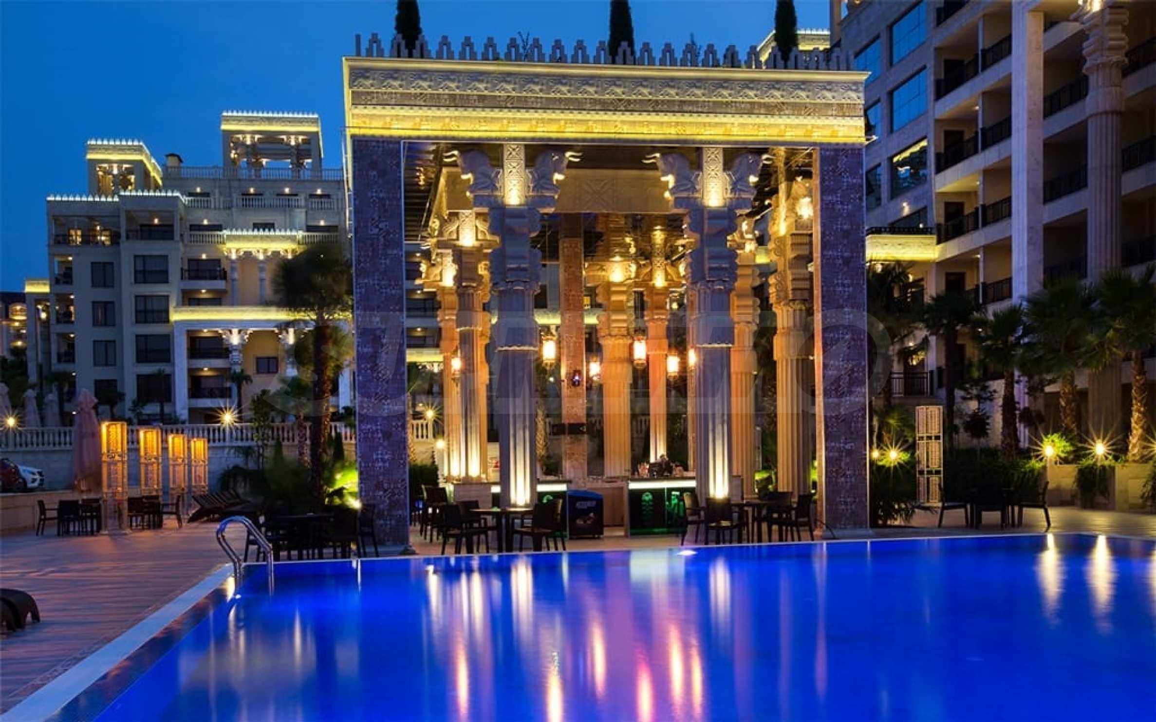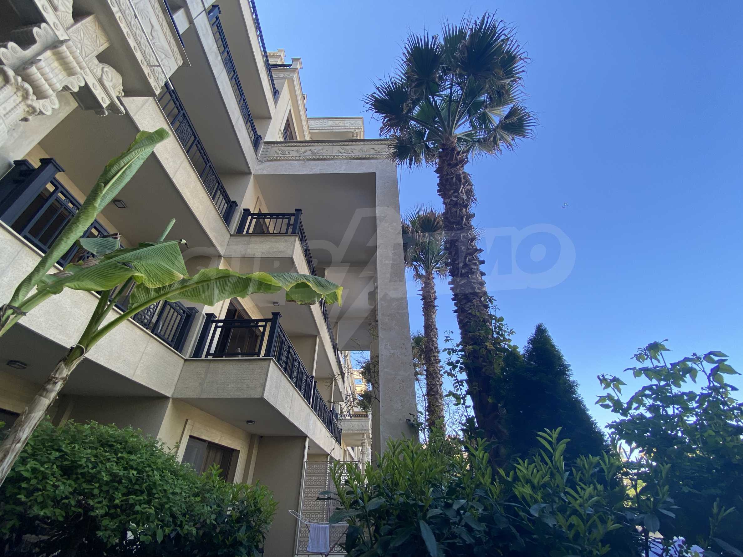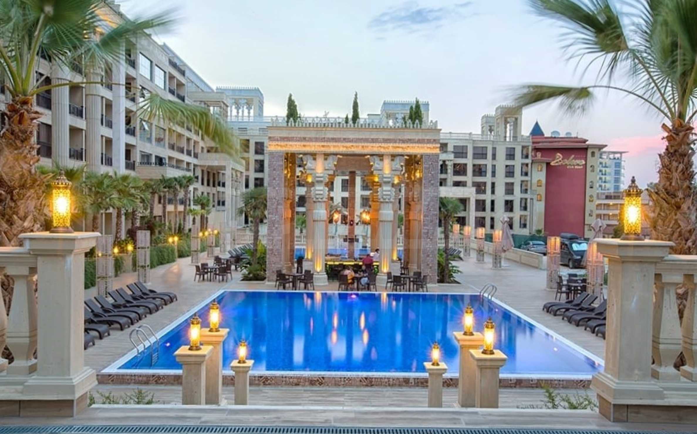 Комплексът е построен в уникален стил, богато украсен с орнаменти и статуи по фасадите и колоните. Той е един от най-новите и луксозно изпълнени апарт-хотели в курорт Златни пясъци. За живущите в сградата има изградени четири външни басейна, фитнес, ресторант, бар, подземен и надземен паркинг, детска площадка, както и огромна добре озеленена и поддържана територия.