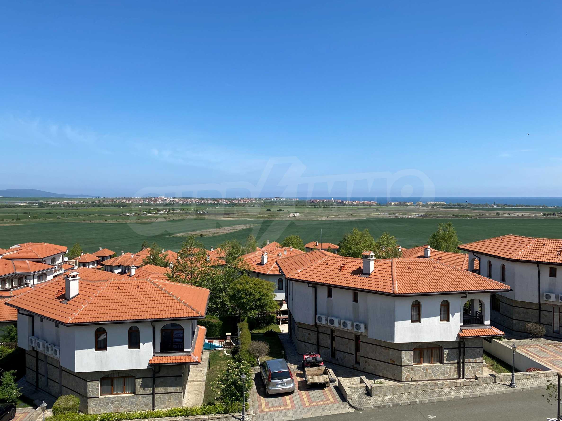 Имотът предлага 122.80 кв.м обща площ и 320 кв.м двор. Разполага с функционално разпределени помещения с разкриващи се прекрасни гледки към морето и заобикалящата зелена среда.