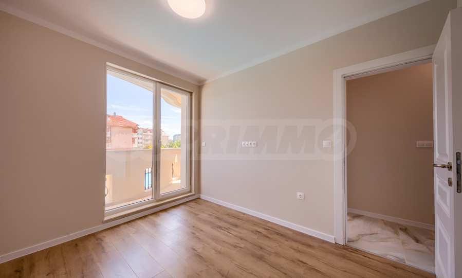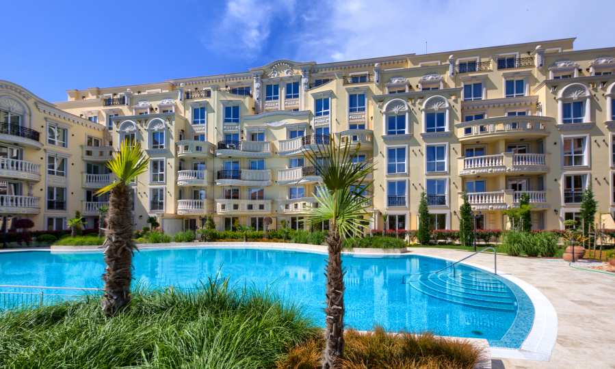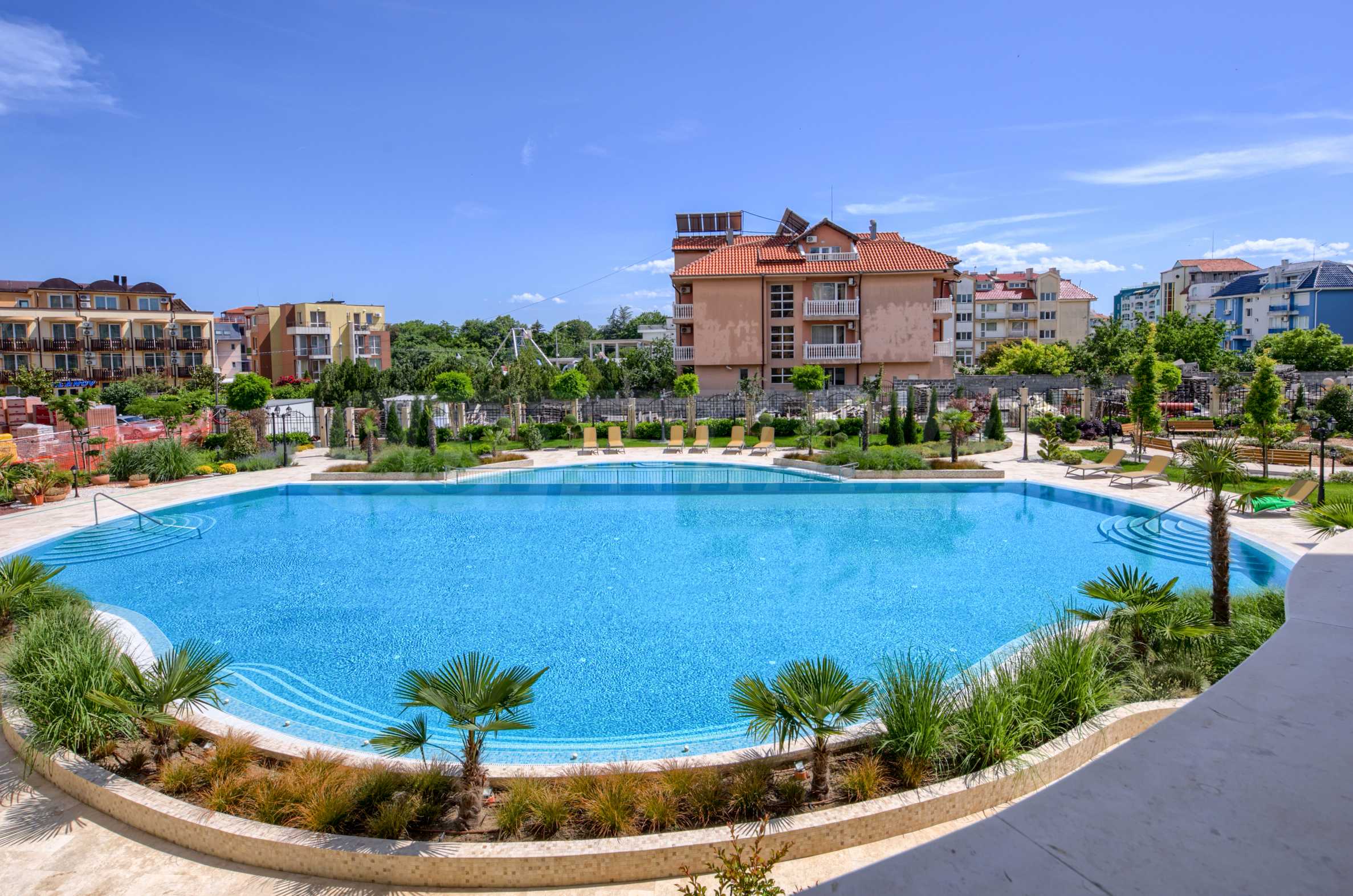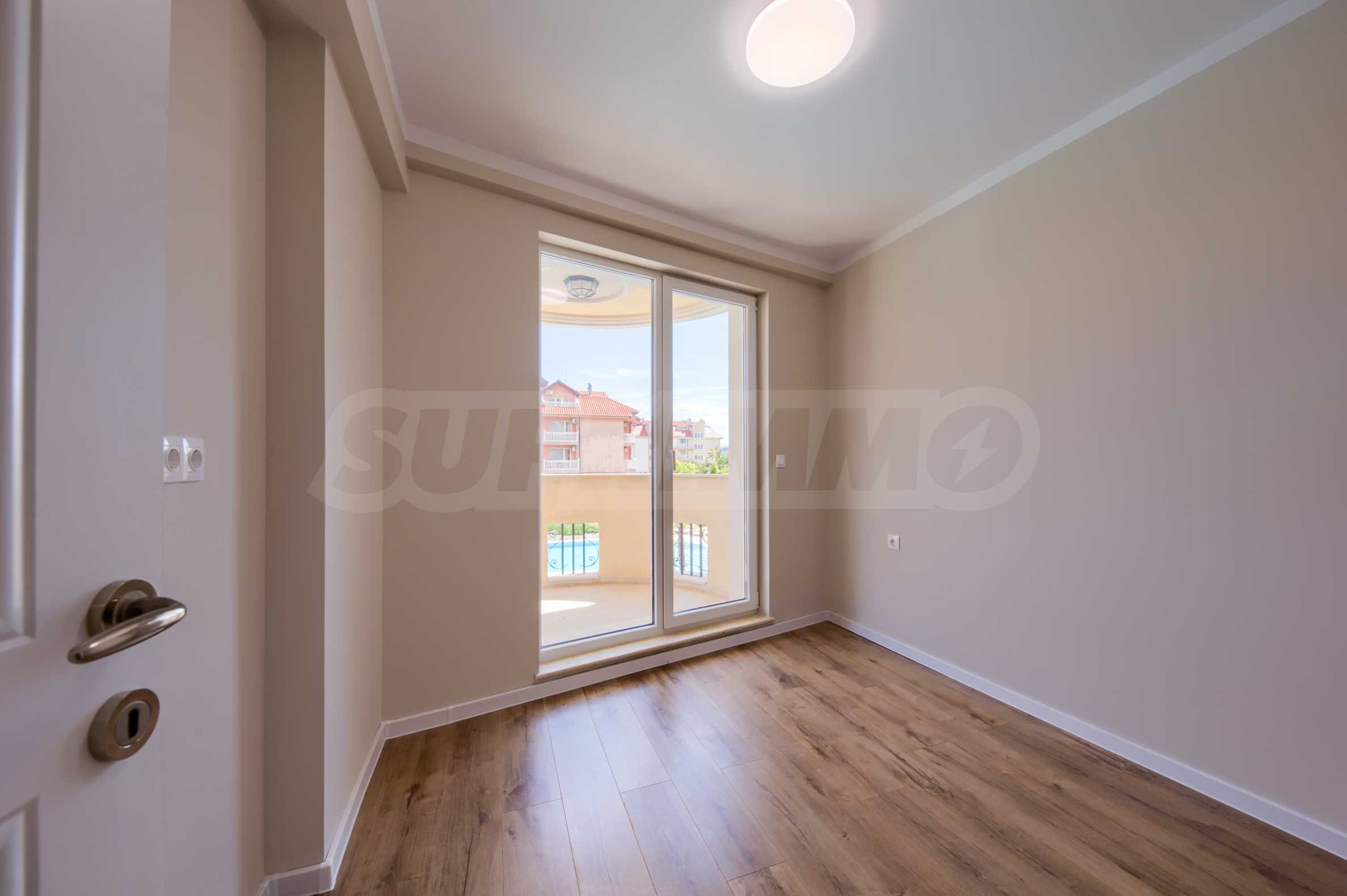 Имотът има веранда от 15.36 кв.м, с гледка към басейна, две уютни спални, дневна/кухня и две бани, едната е с вана.