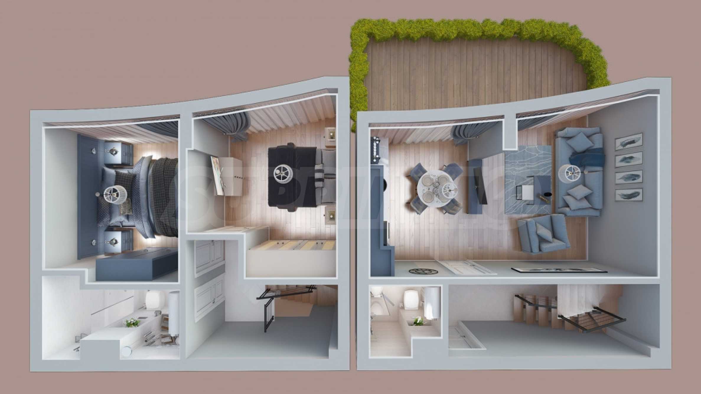 Имотите се издават в степен на завършеност "до ключ", готови за обзавеждане, с оборудвани бани, като има опции за няколко варианта бутиково обзавеждане по дизайн проекта, примерните визуализации можете да разгледате в снимковия материал към тази оферта.