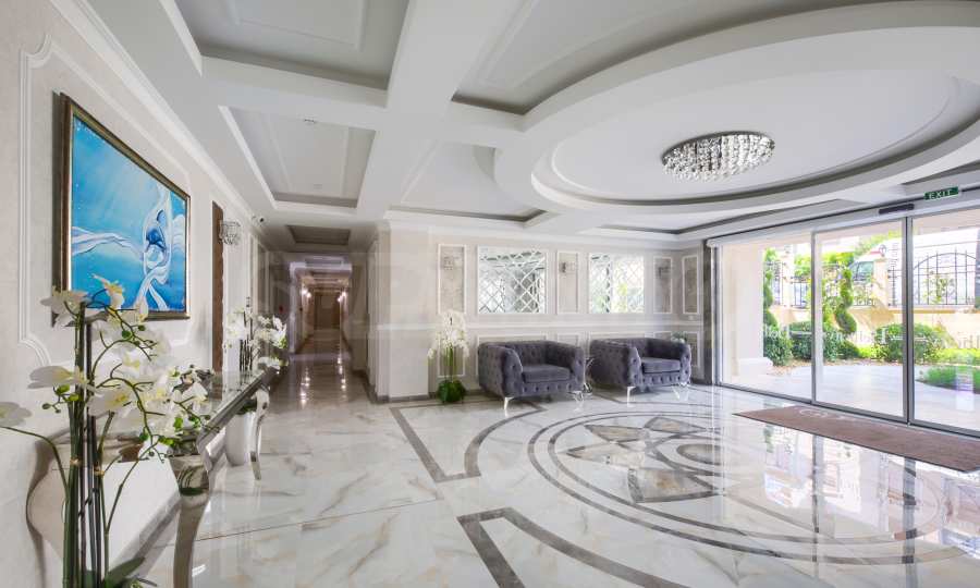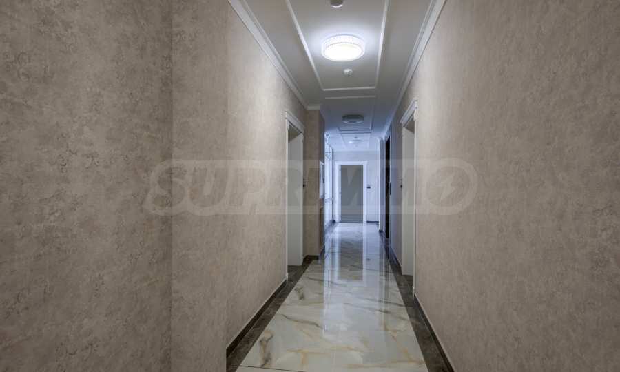 Общите части, коридори и стълбища, рецепцията и фоайето са завършени по дизайнерски проект.