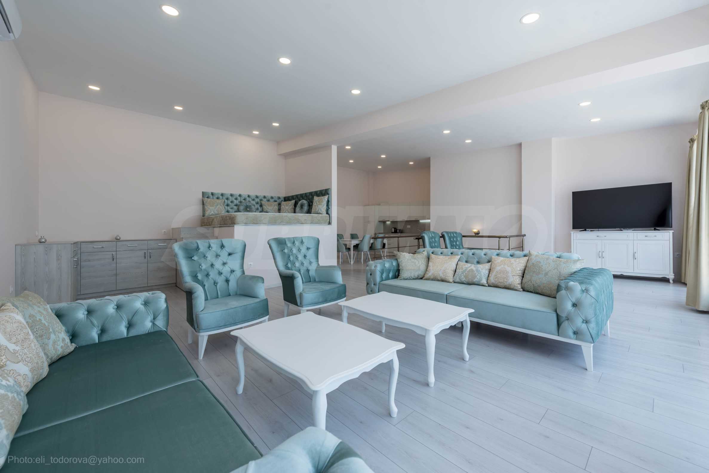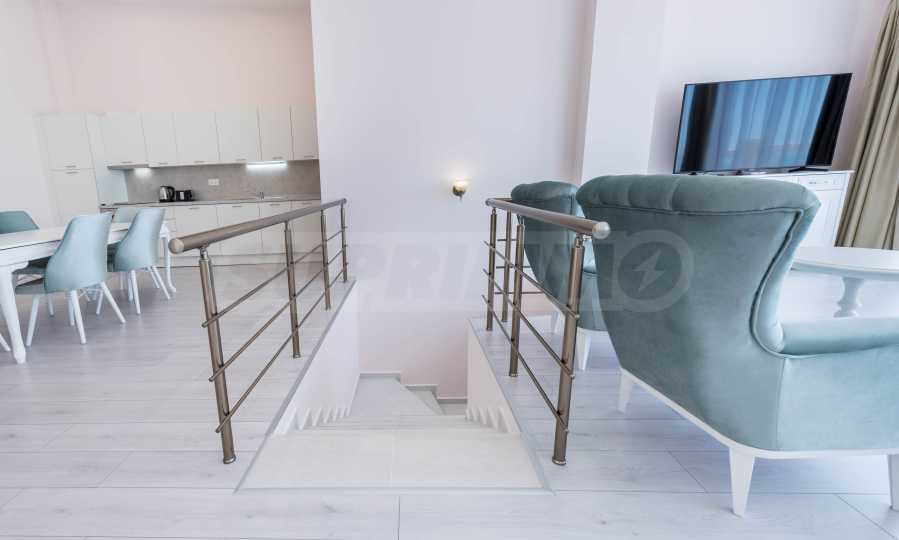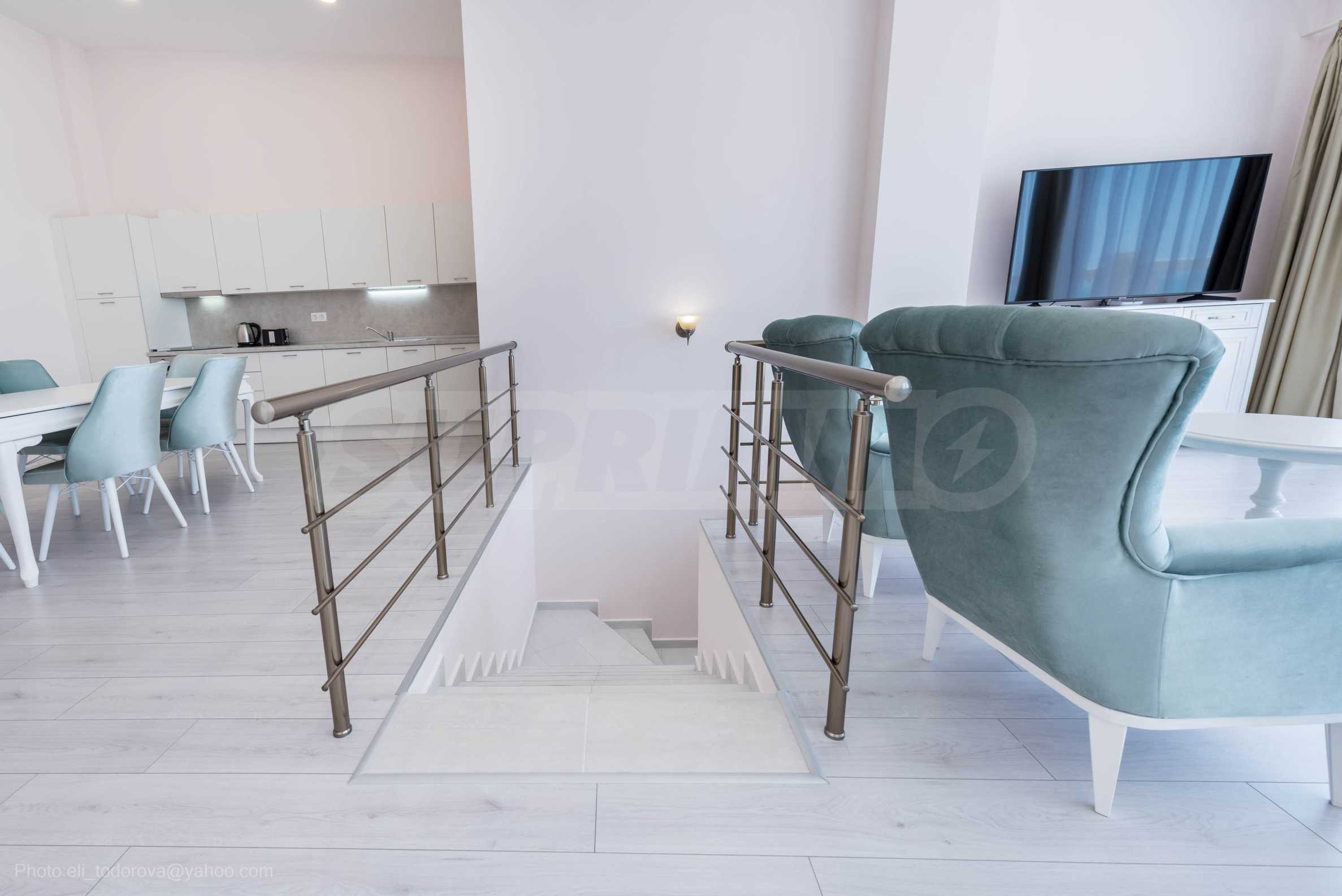 - второ ниво: кухня с трапезария, голяма всекидневна с панорамни френски прозорци, голяма тераса с фронтална морска панорама.