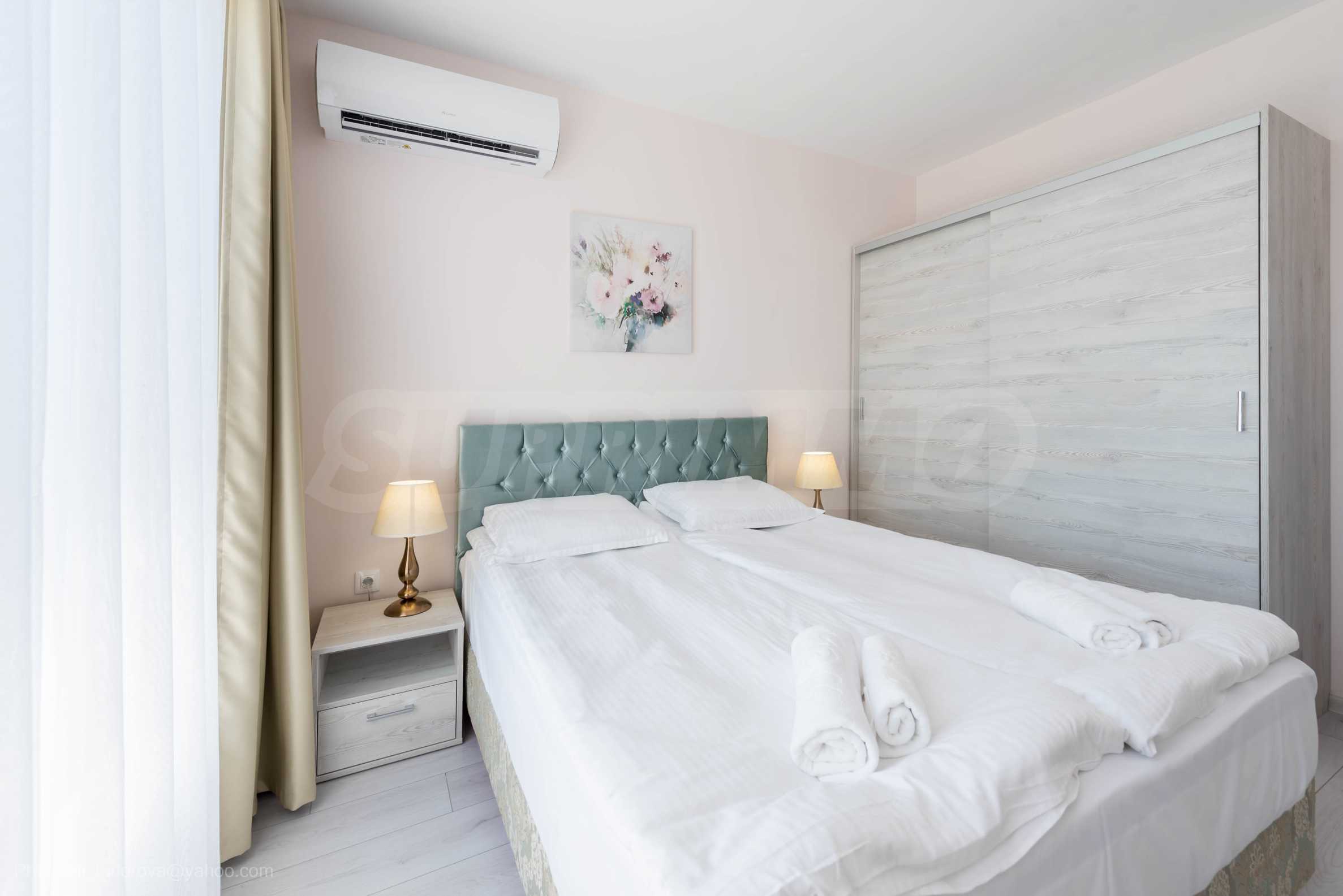 Цялостната концепция на комплекса е свързана с висок клас обслужване и удобства на брега на морето. Издържан в класически архитектурен стил, с изчистени форми и богато озеленена градина с подбрана растителност, с внимание към всеки детайл, този отличителен комплекс е подходящ за дългосрочен престой през всеки сезон.