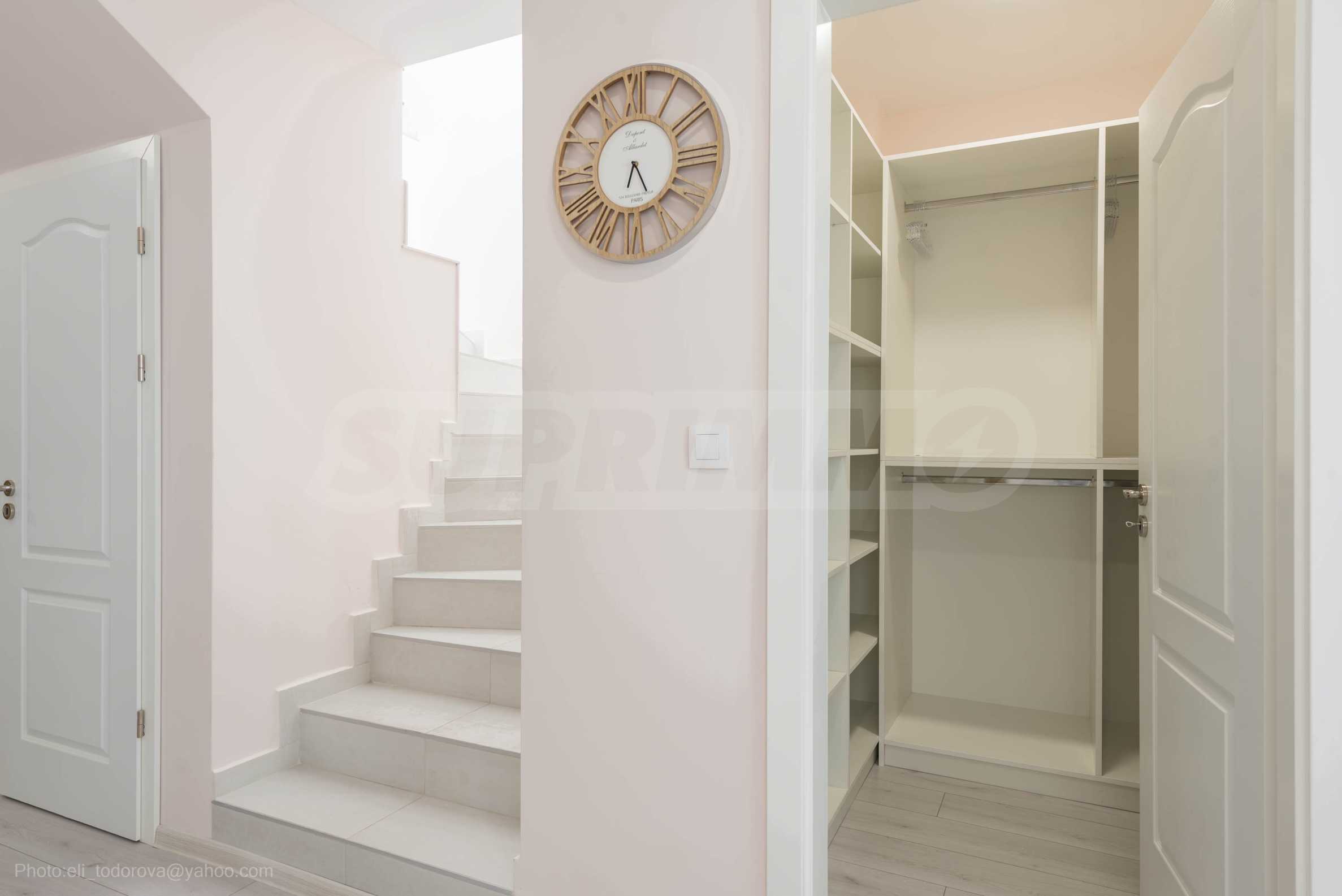 - първо ниво: коридор, три спални, две бани, дрешник, малък килер;