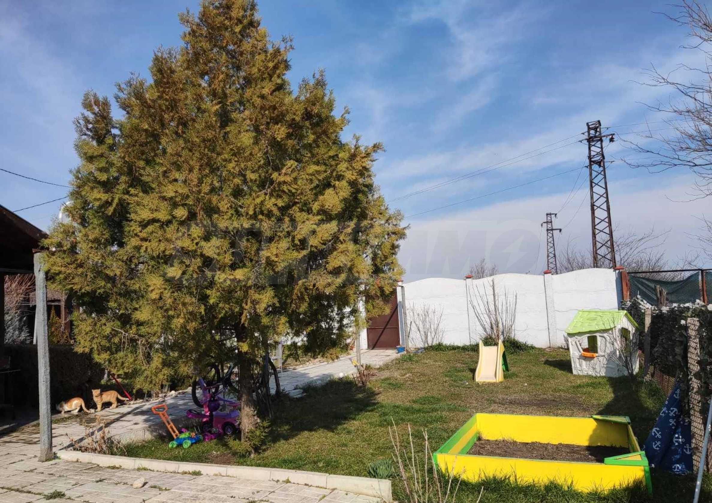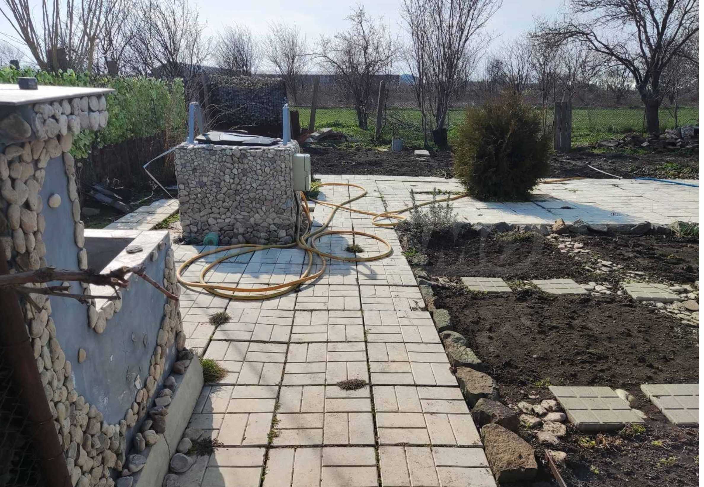 Имотът се състои от 150 кв.м обща площ: две спални, голям хол и кухня, широк коридор, баня и тоалетна. Има изградена лятна кухня, външна мивка и навес с барбекю. Дворът е 2600 кв.м, като е разположен върху равен терен и благородна земя. Могат да се отглеждат зеленчуци и плодородни дръвчета. Разполага с кладенец и помпа.