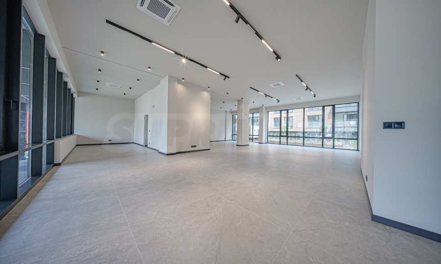 • магазини със собствени складове на две нива, разположени на партера и първото подземно ниво, в южната част на сградата;