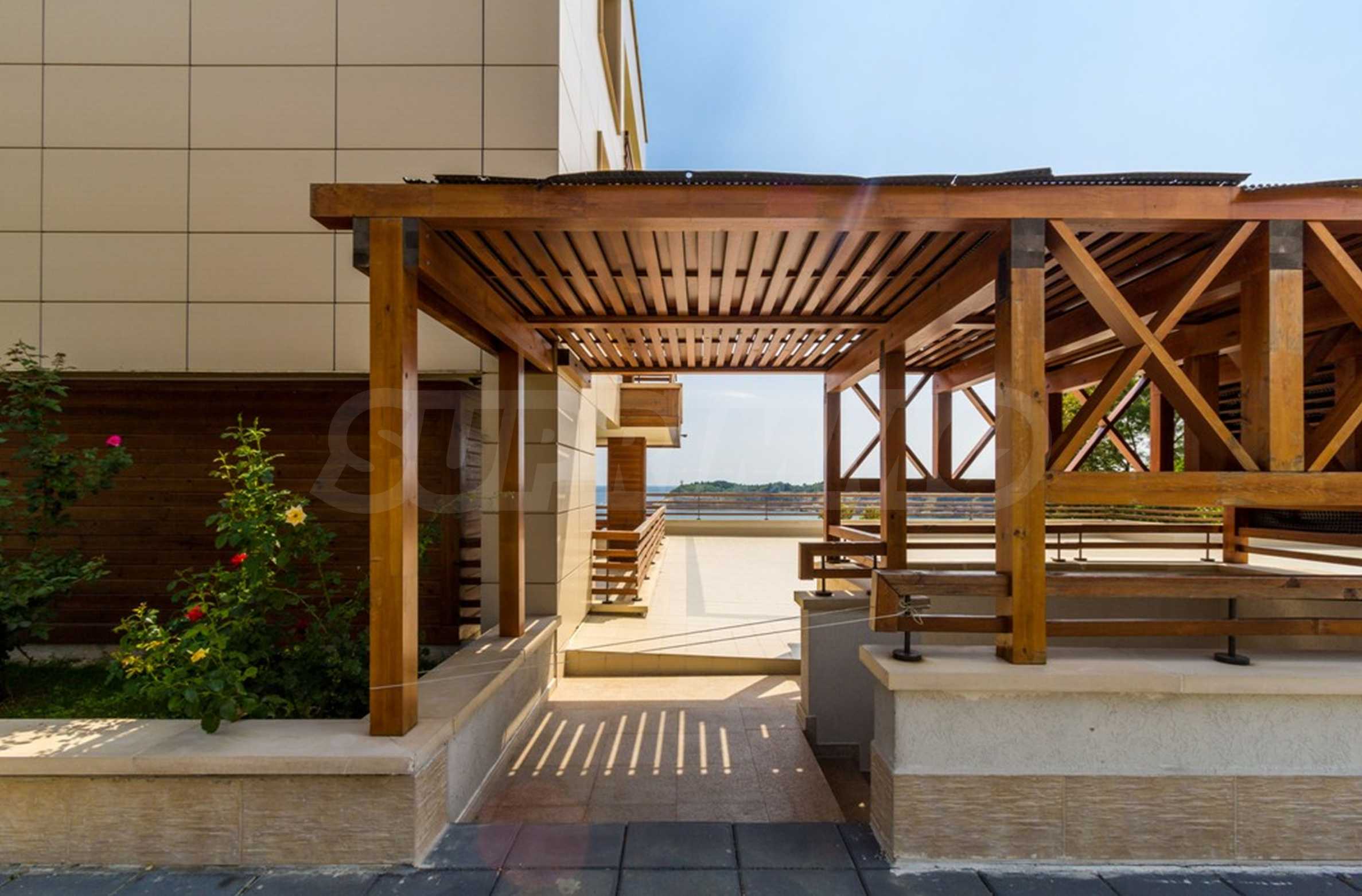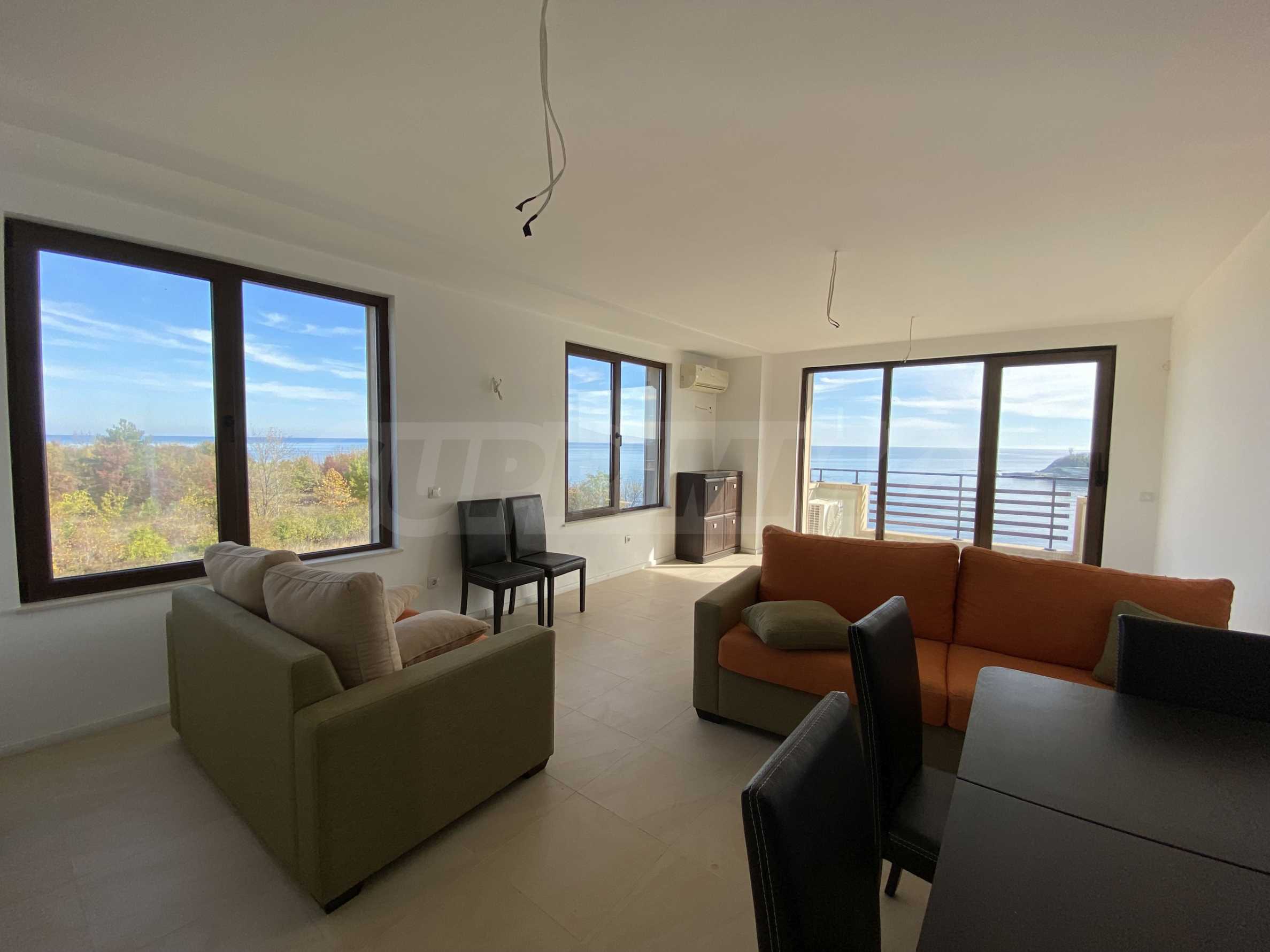 Просторното жилище е с функционално разпределение, включващо две спални, две бани, отделна тоалетна, дневна с панорамна гледка към морето, две тераси. Подходящо е както за целогодишно живеене, така и като ваканционен имот или инвестиция с потенциал за отдаване под наем.