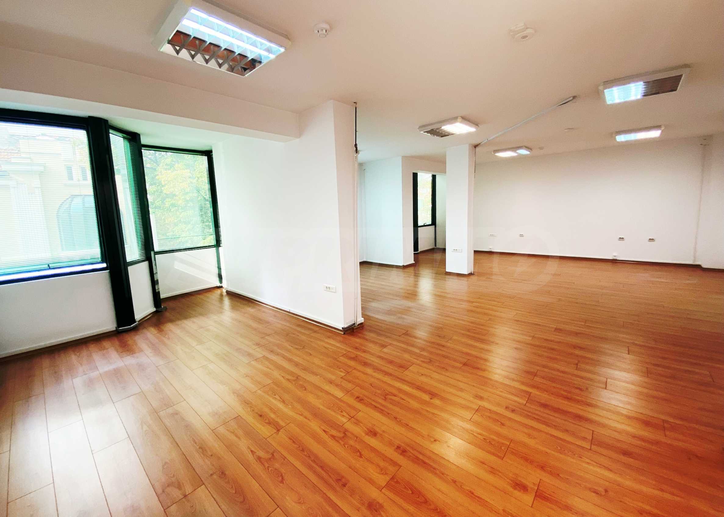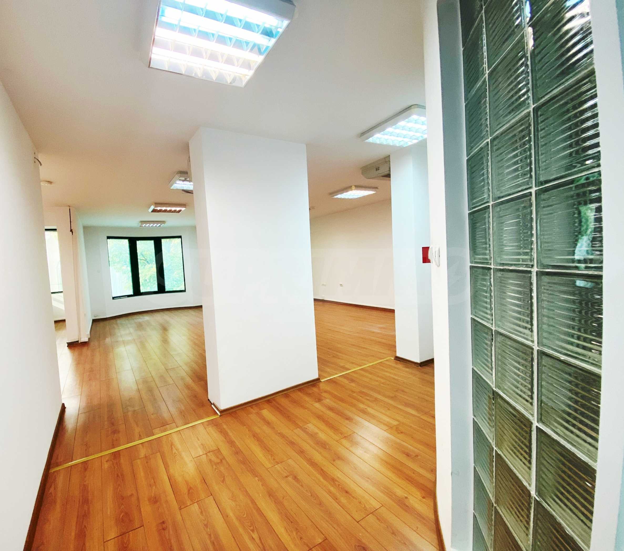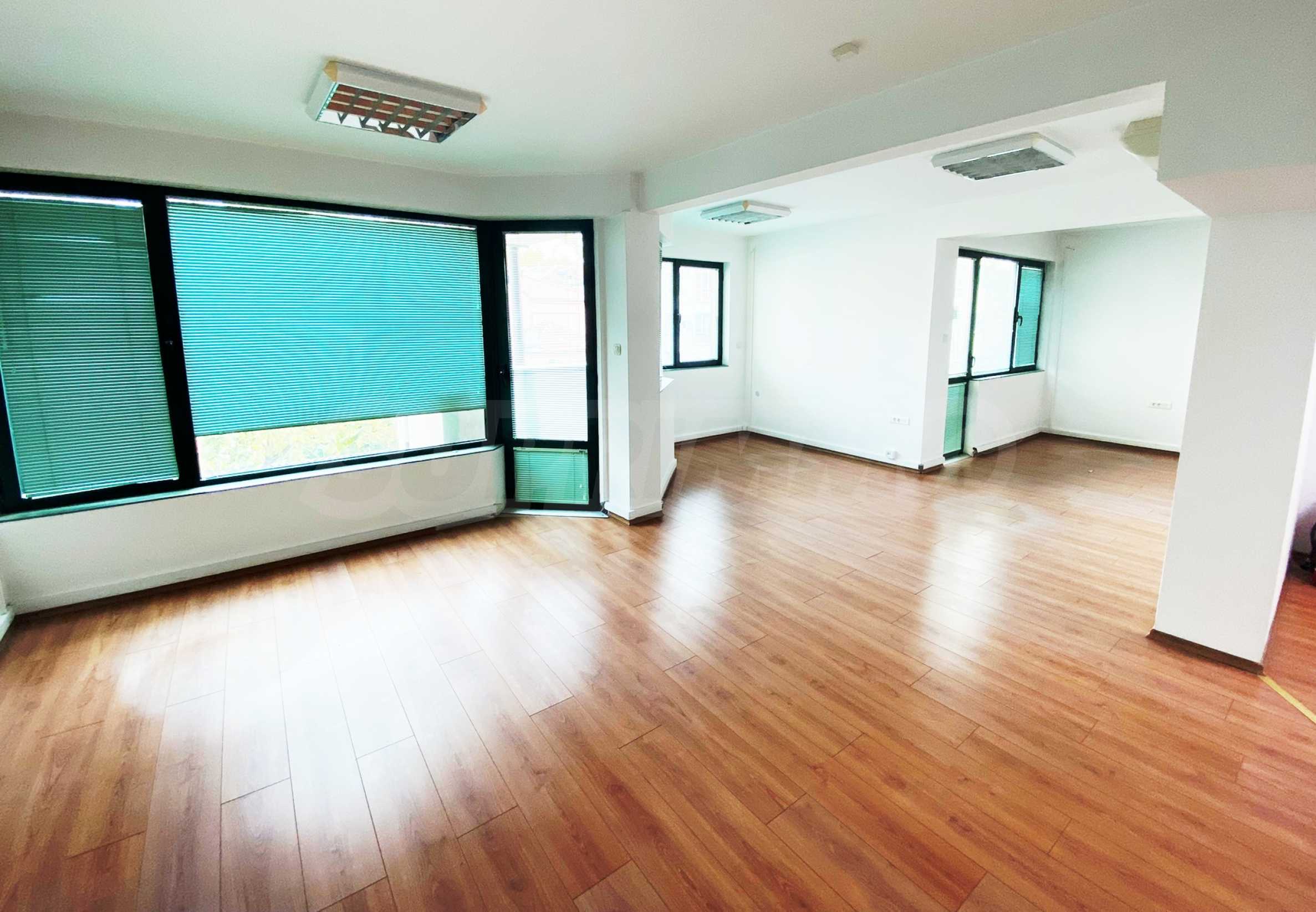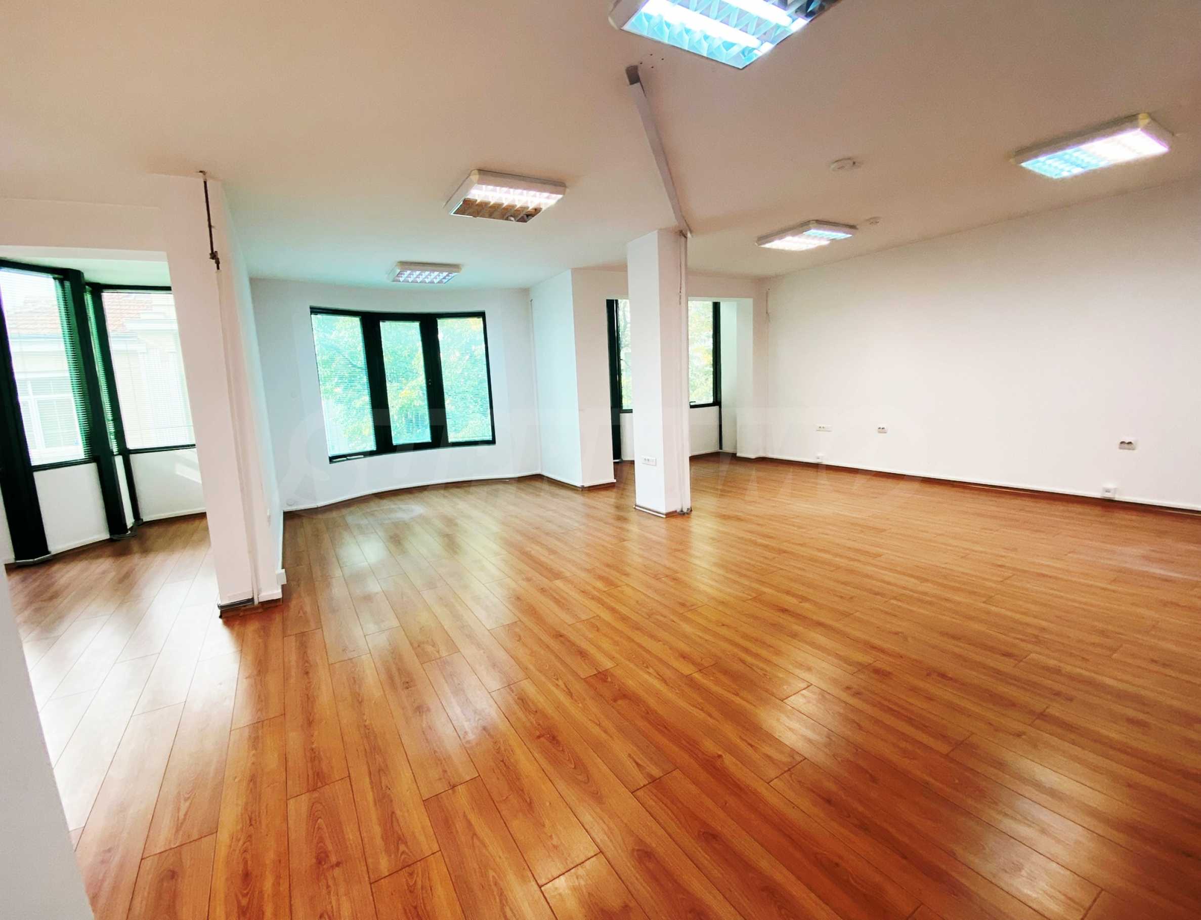Помещението е с площ от 180 кв.м - тип open space, подходящо е за IT фирма, кантора, учебен център и др. Отопление и охлаждане с климатици Daikin.