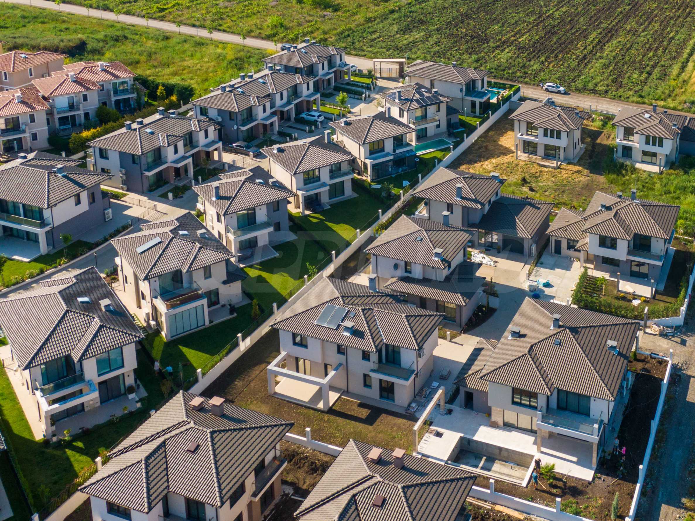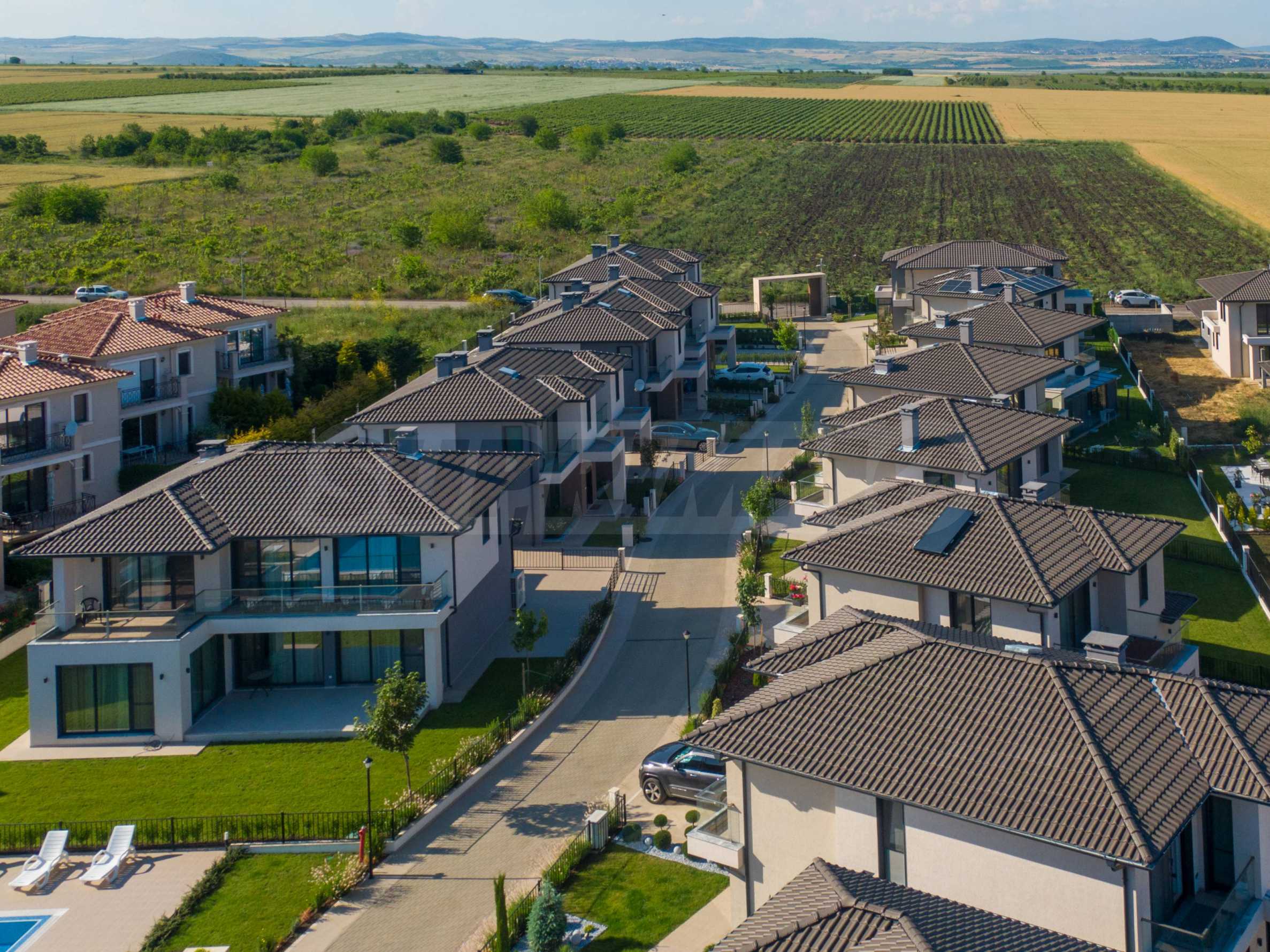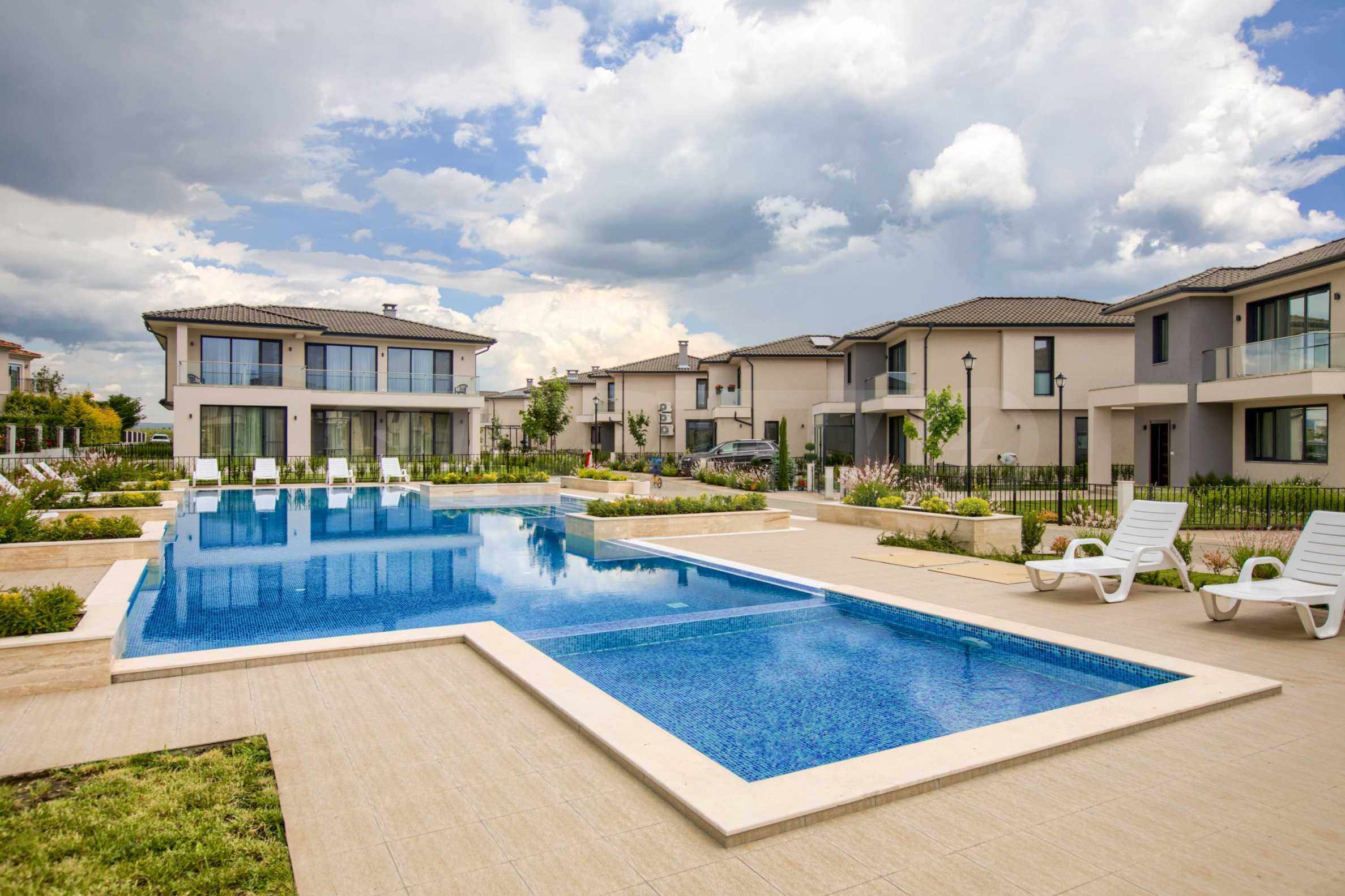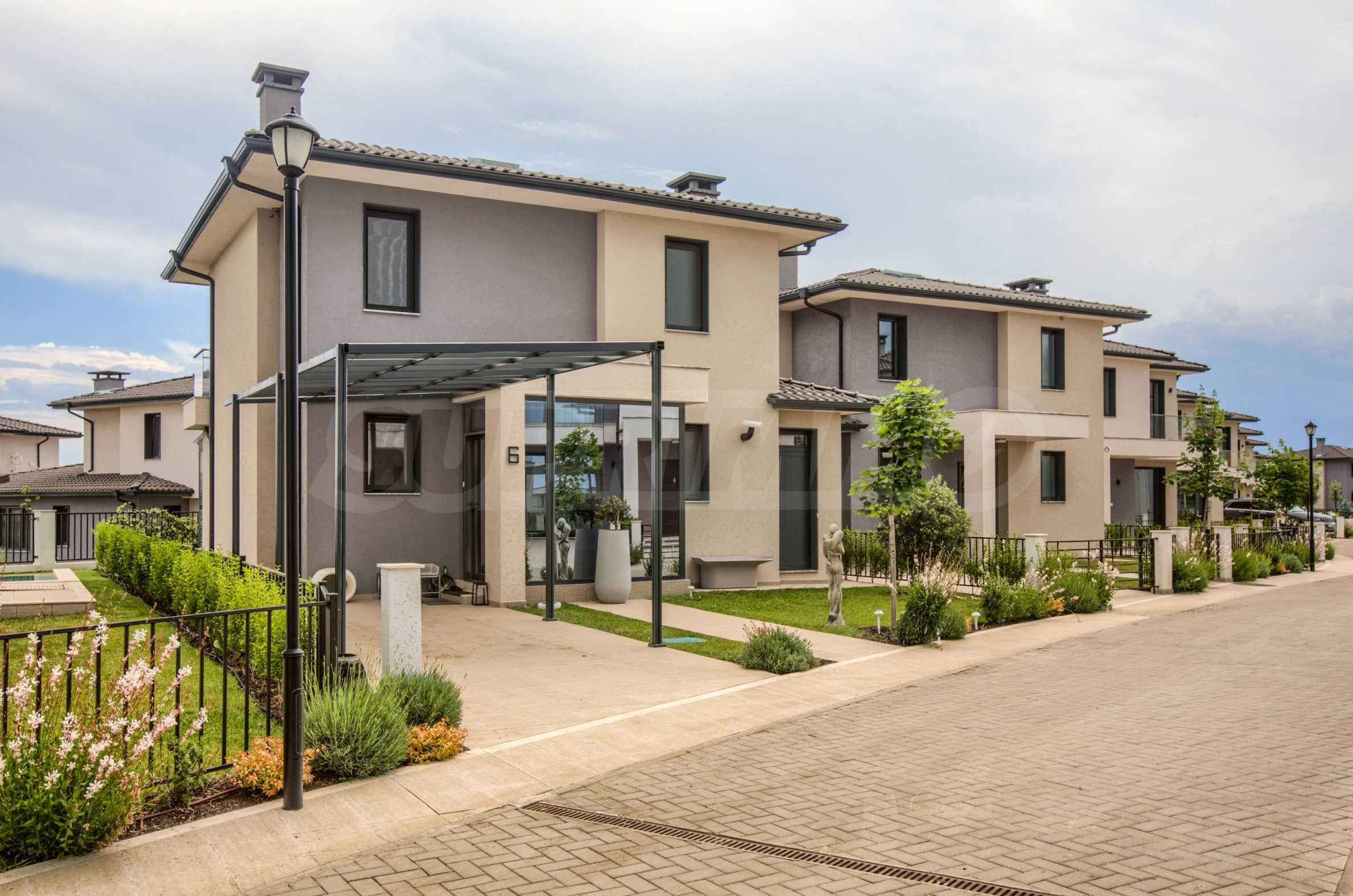 Всяка от къщите е самостоятелна и е заобиколена от собствена градина и зона за отдих. Достъпът до комплекса е ограничен, сигурността е гарантирана чрез внедрените системи за контрола.