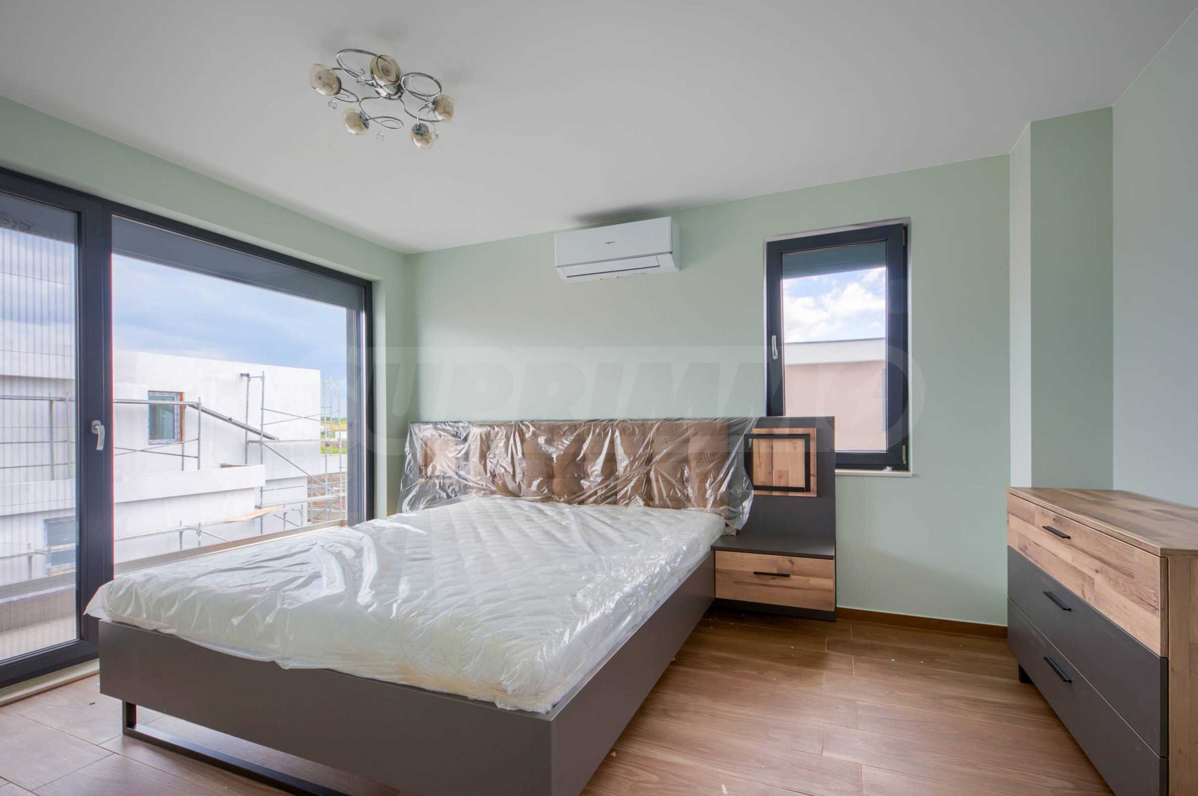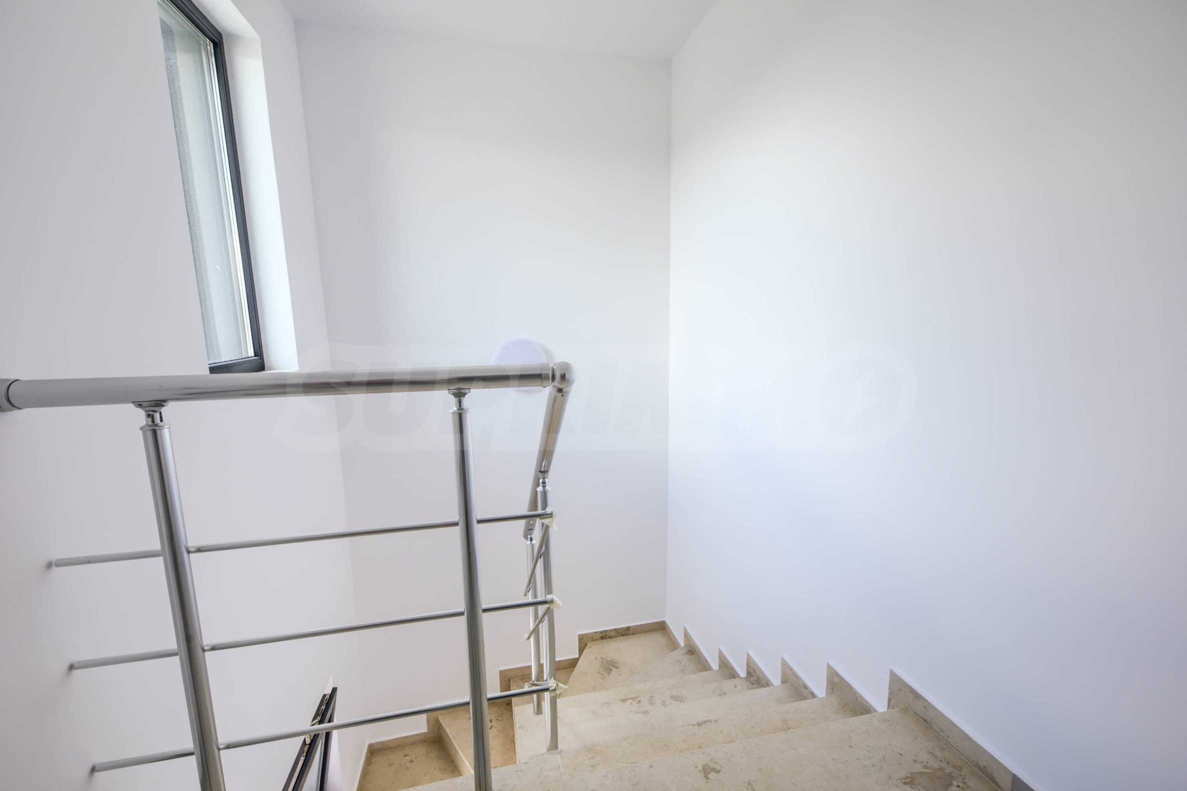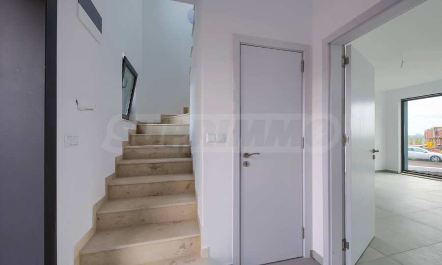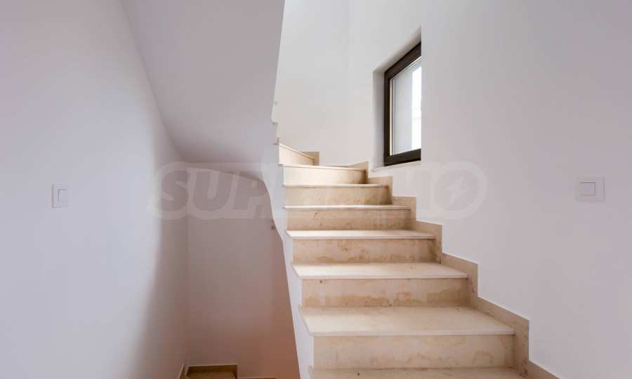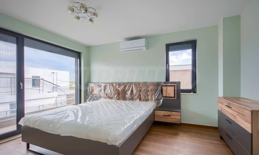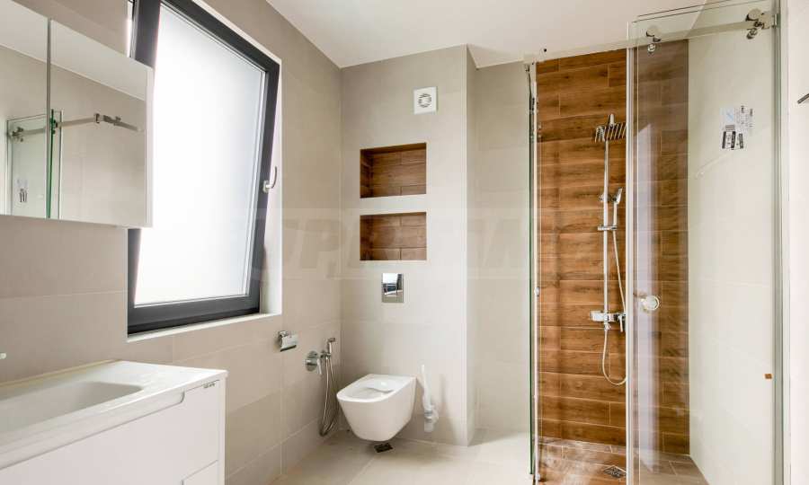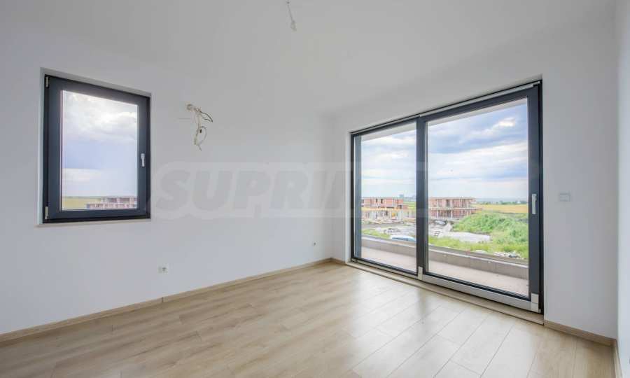 - Прозорци: 5-камерни PVC профили с троен стъклопакет, немски обков и система ENERGY; подпрозоречни первази - от естествен камък;