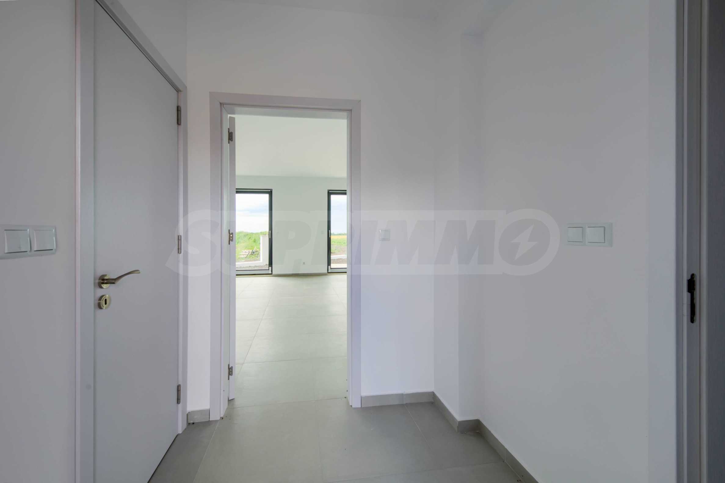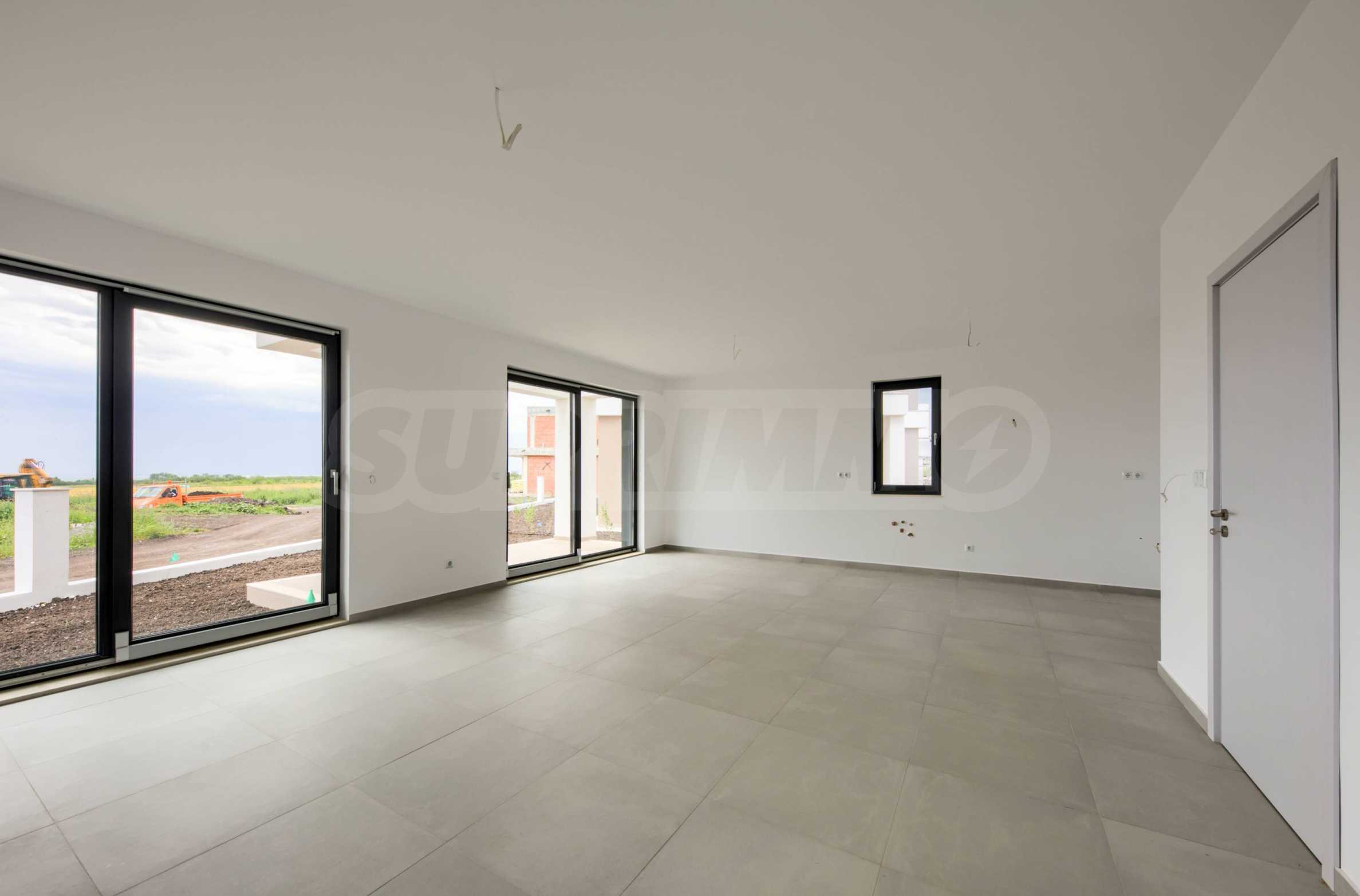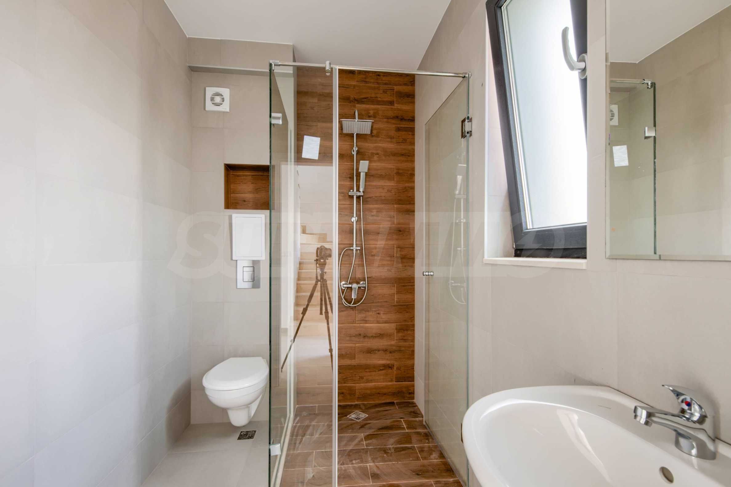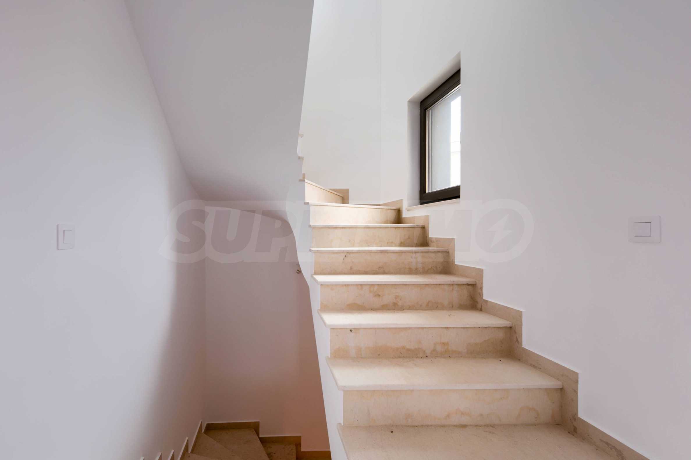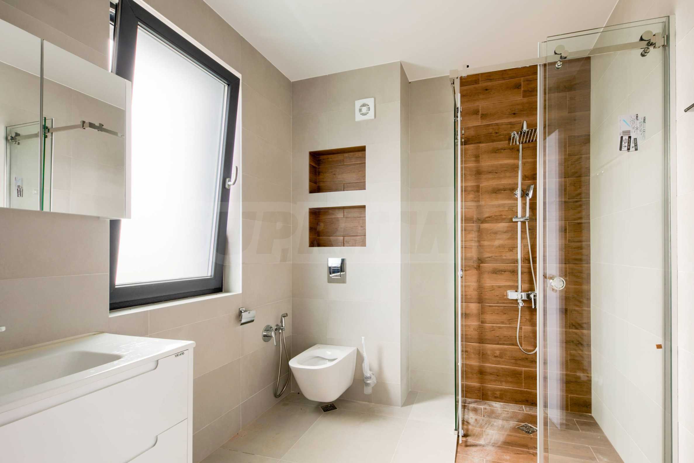 - Прозорци: 5-камерни PVC профили с троен стъклопакет, немски обков и система ENERGY; подпрозоречни первази - от естествен камък;