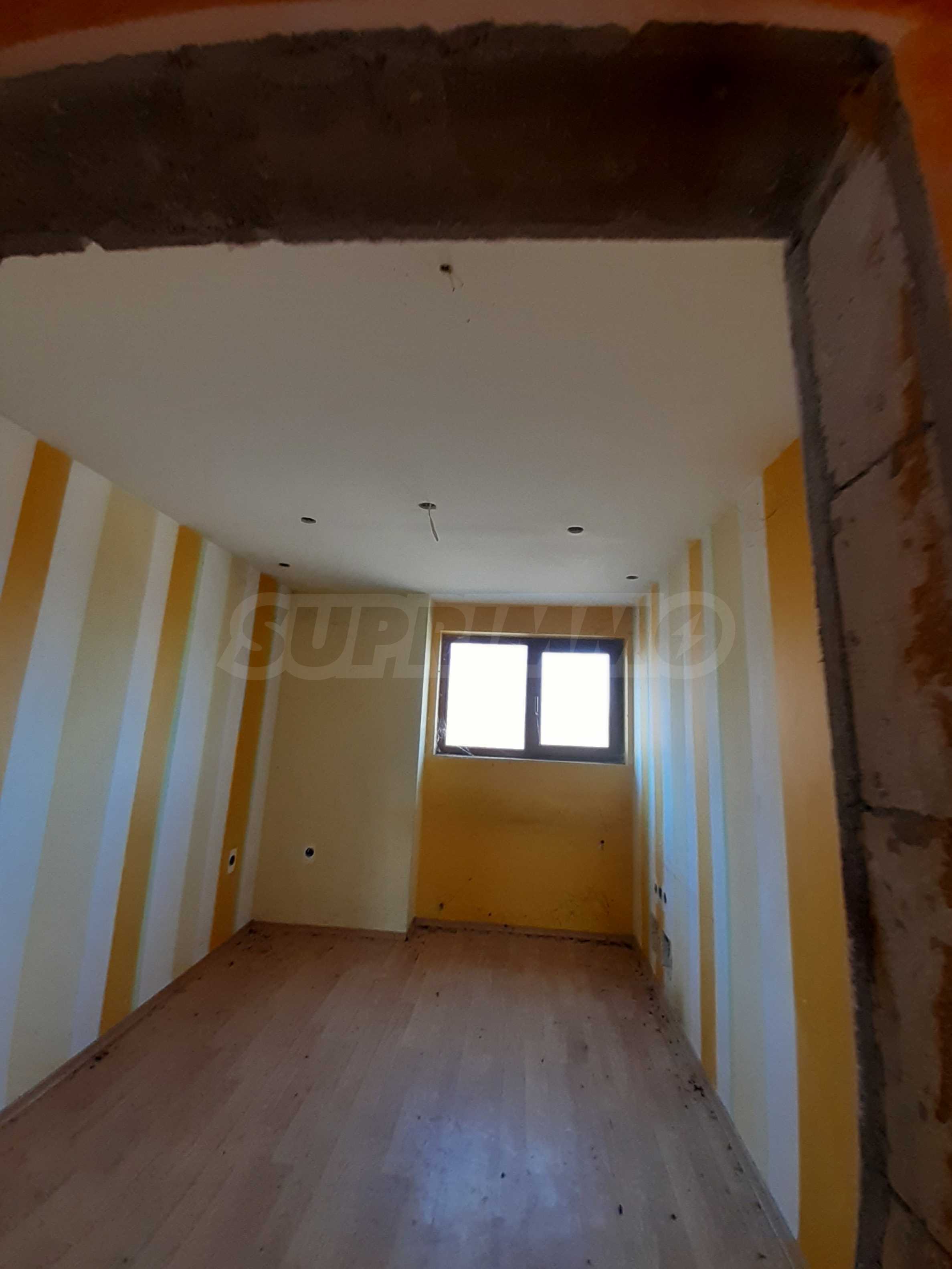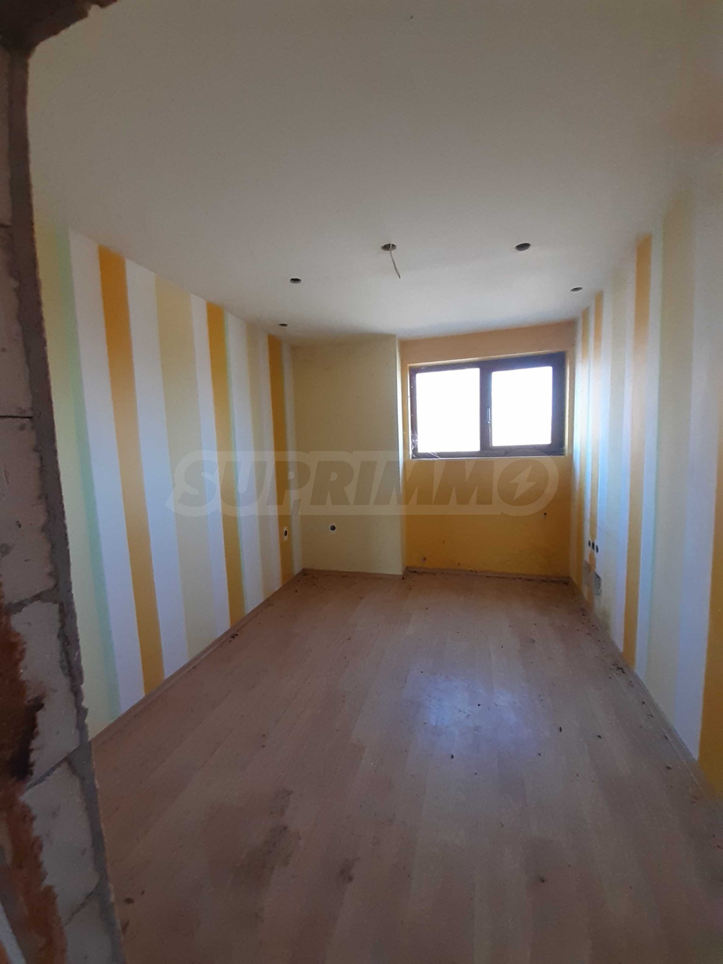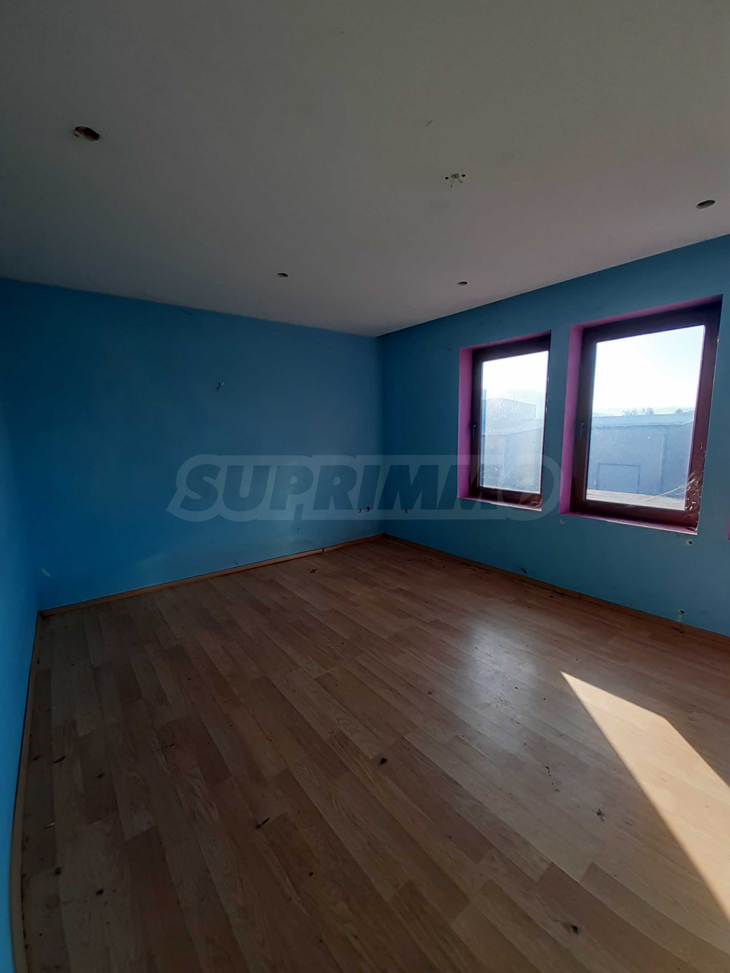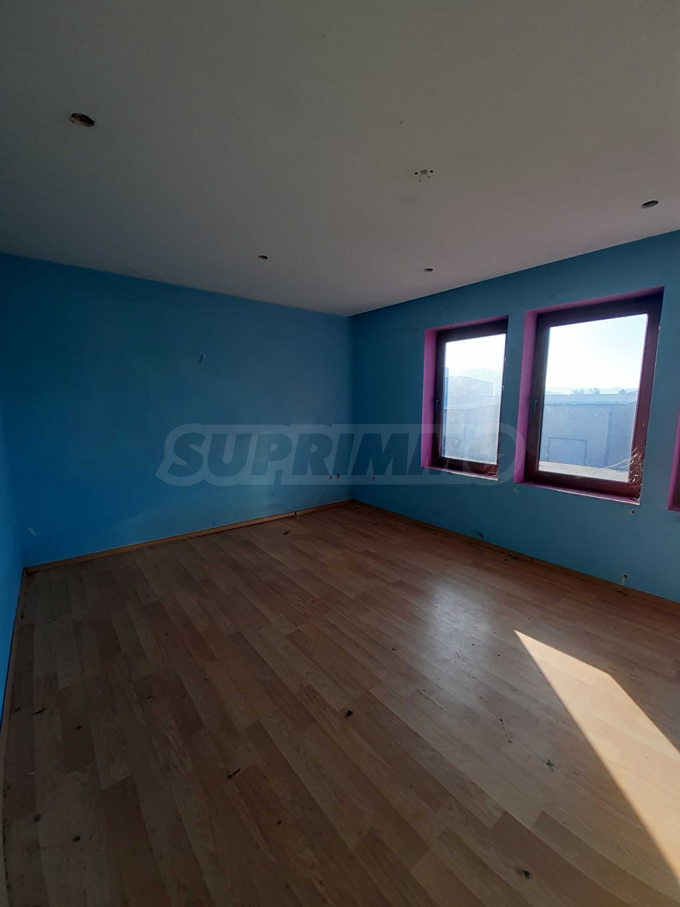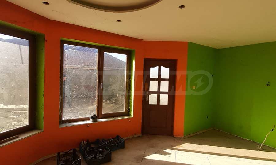 Къщата е новопостроена и има жилищна площ от 352 кв. м. Подовите настилки в спалните са ламинат, в дневната - теракот, баните - санитарен фаянс, стените са с латекс и тапети. Дограмата е PVC, а вратите са MDF.