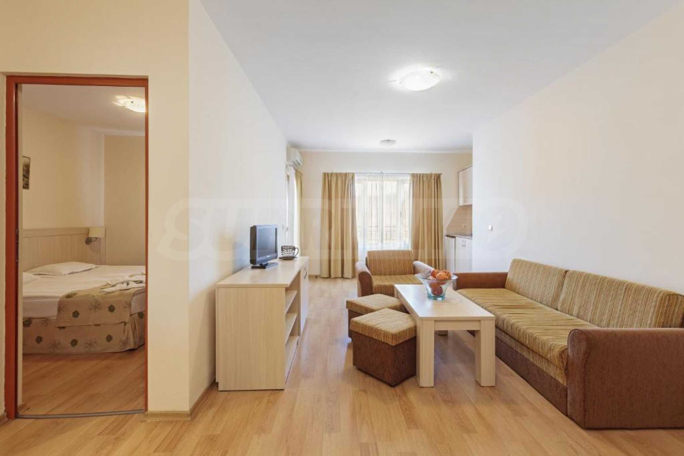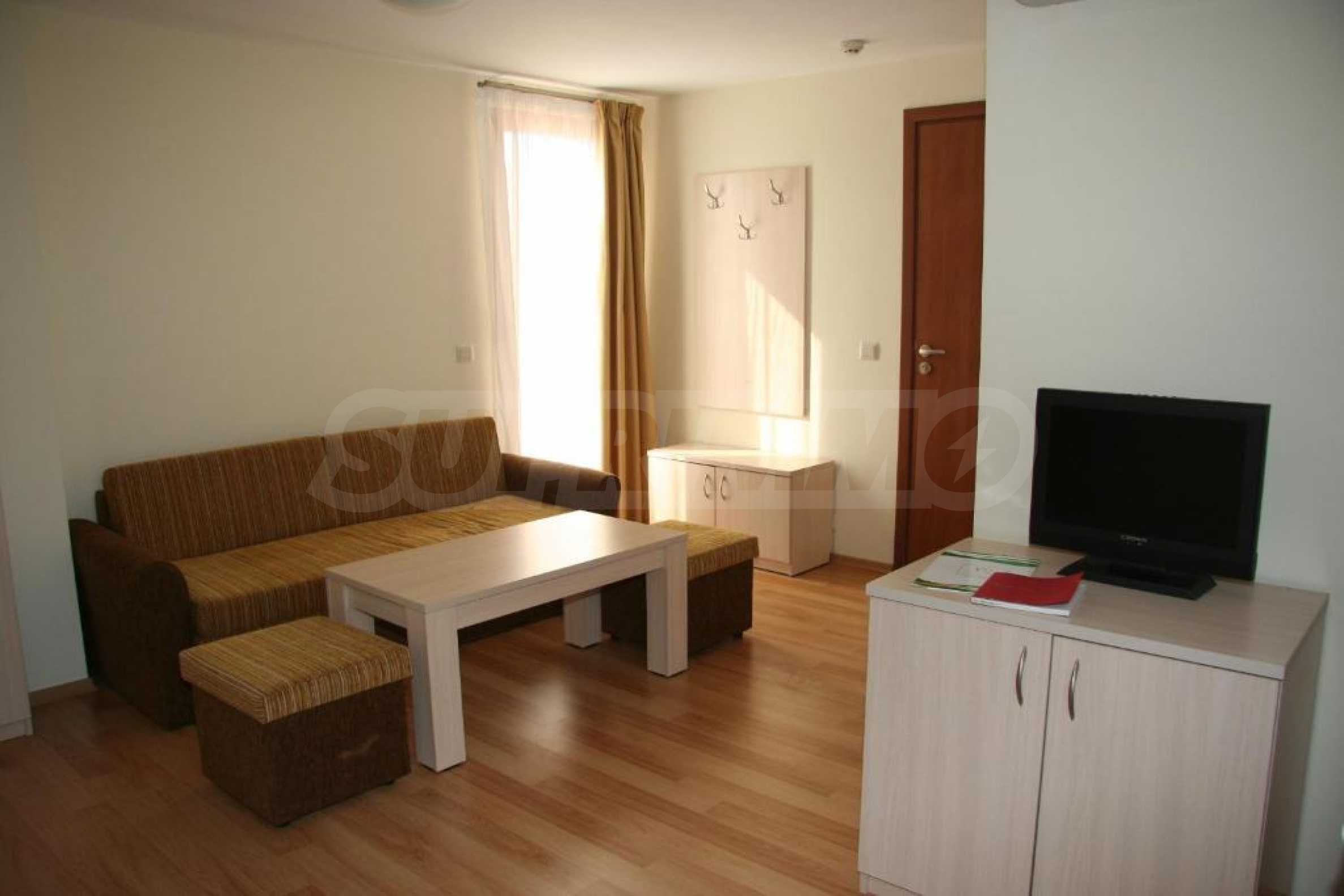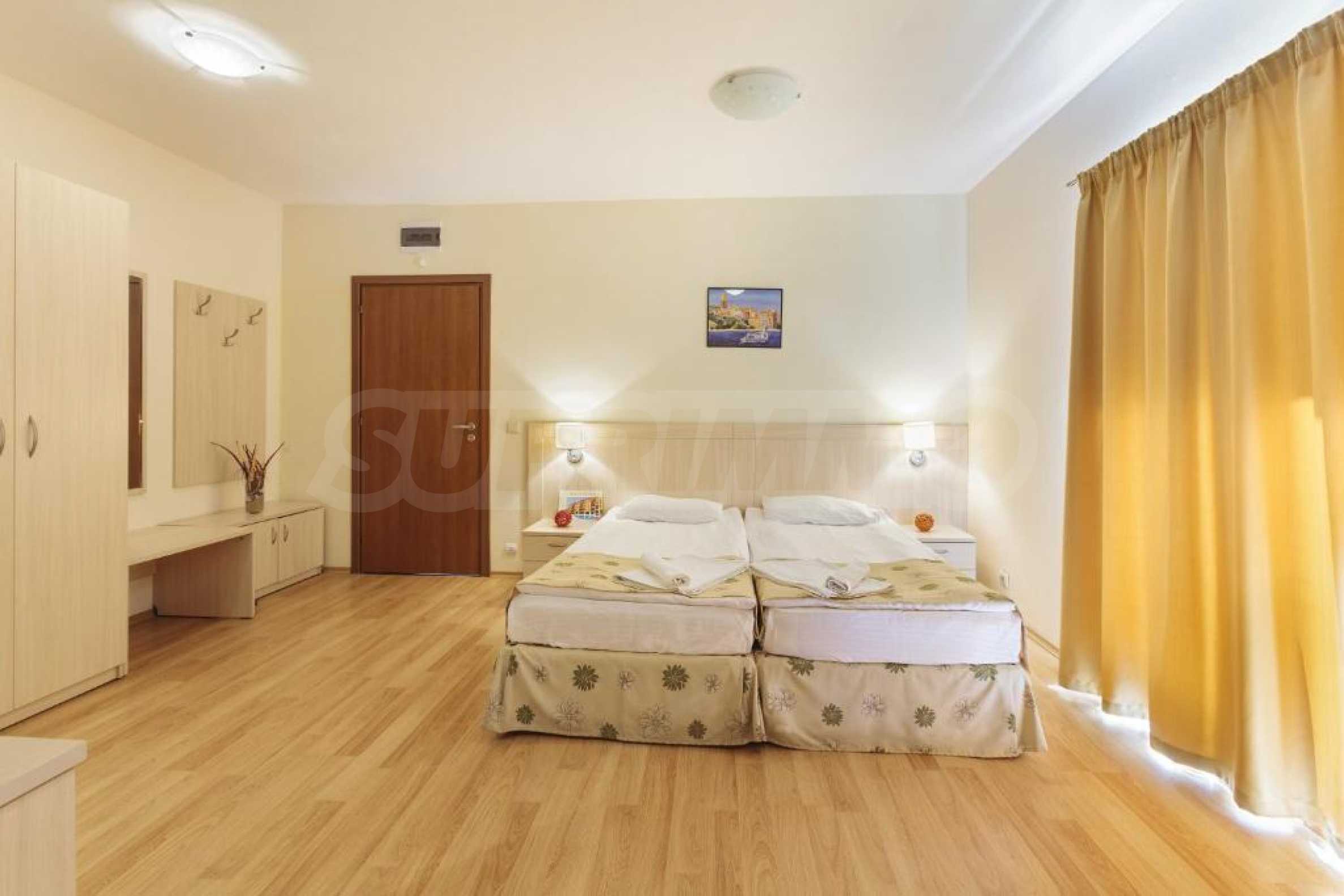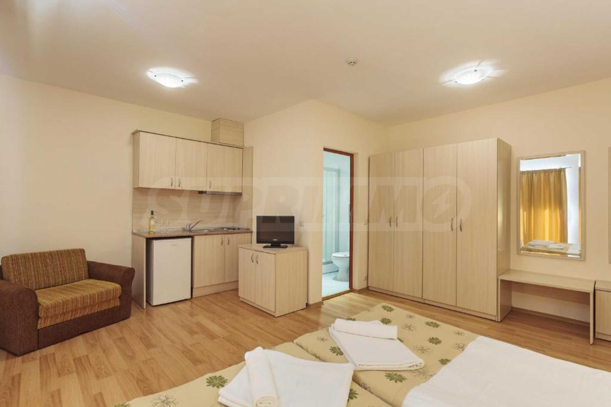 Ваканционните жилища се предлагат в напълно завършен вид, всички имоти разполагат с балкони и индивидуални климатични инсталации.