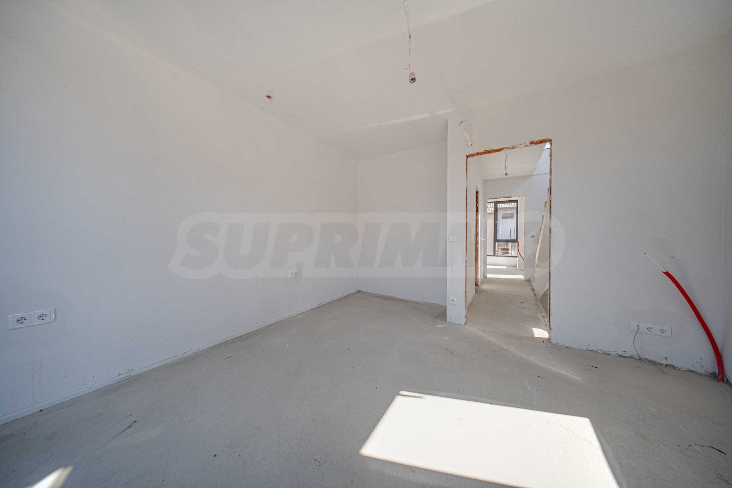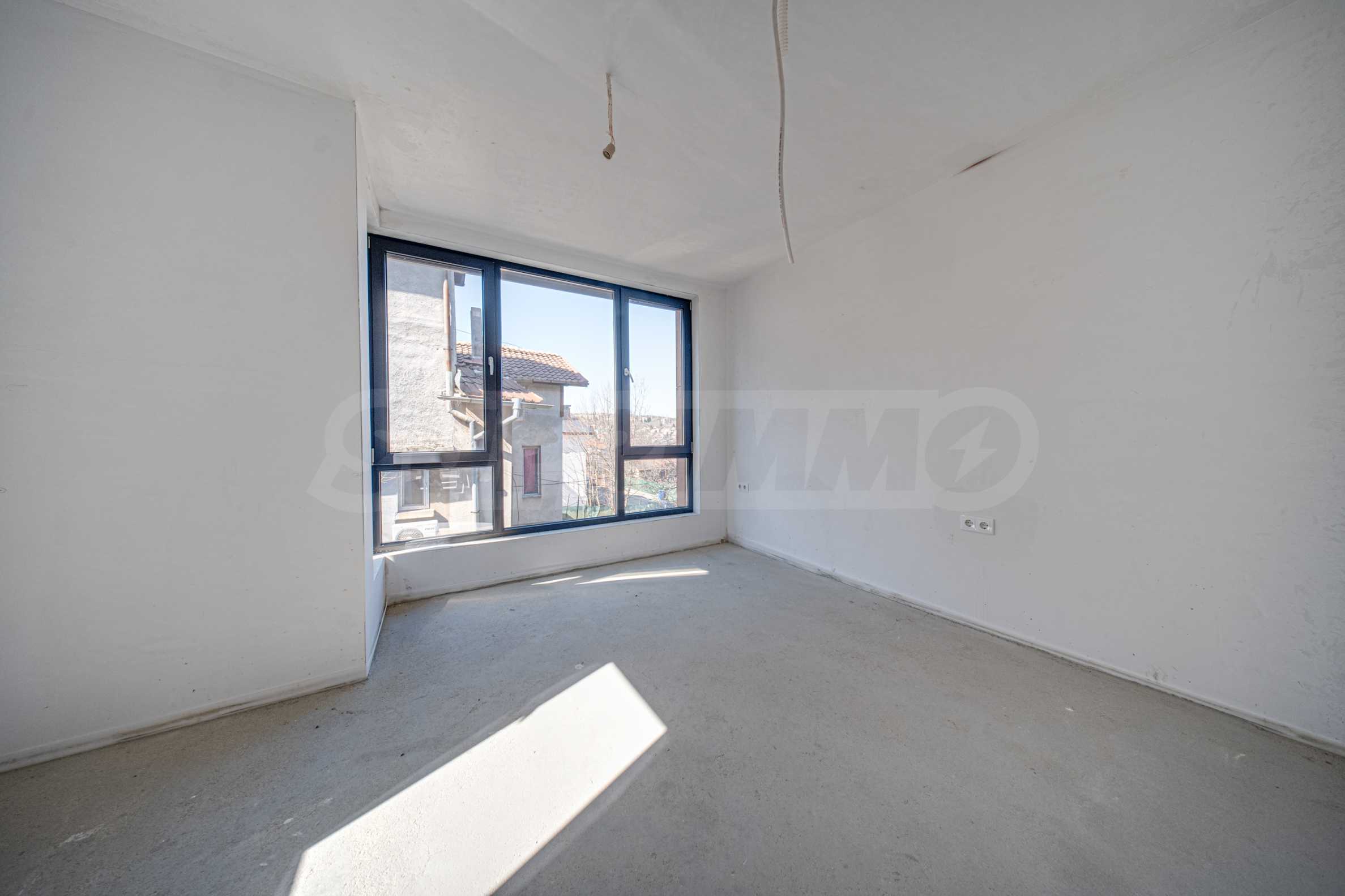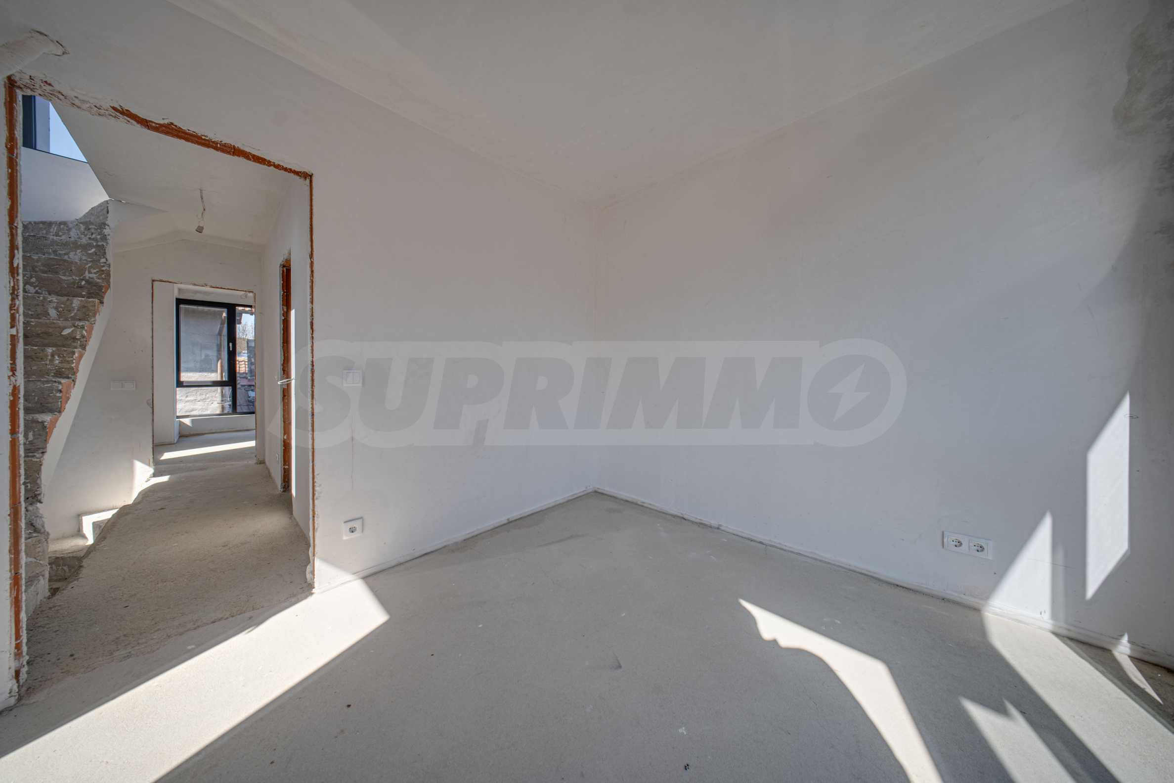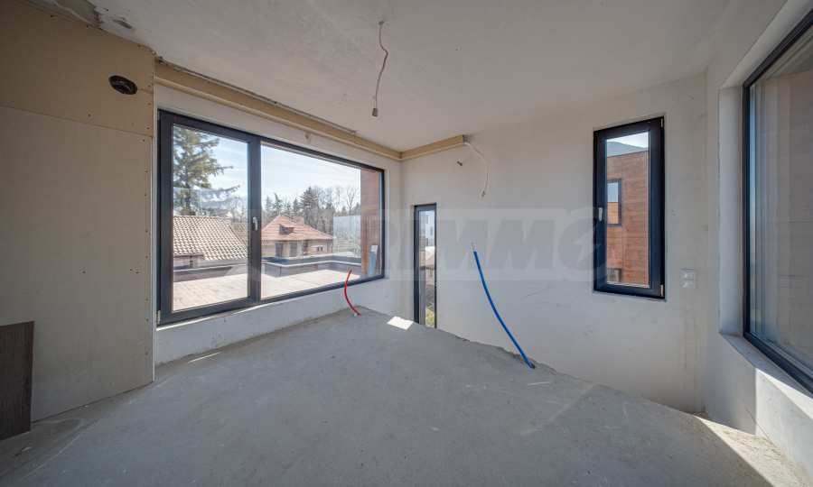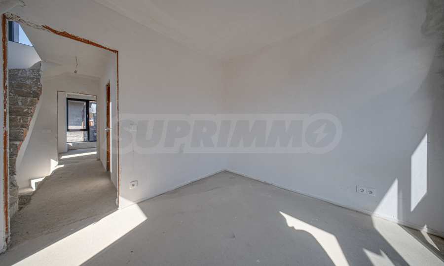 Дневната е на партерен етаж, на следващия етаж има по две спални, една баня с тоалетна, един склад, на трети етаж има две спални, една баня с тоалетна и на етаж четири има още една стая с покривна тераса.
