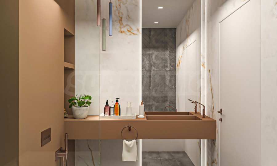 Визуализациите са примерни. Инвеститорът предлага примерни интериорни решения, като е обърнато особено внимание на детайлите, които да създадат усещането за топлина в дома и радост от новото жилище. Опитните дизайнери и архитекти на фирмата са готови да осигурят съпровод до пълна пространствена реализация на всеки индивидуализиран обект.