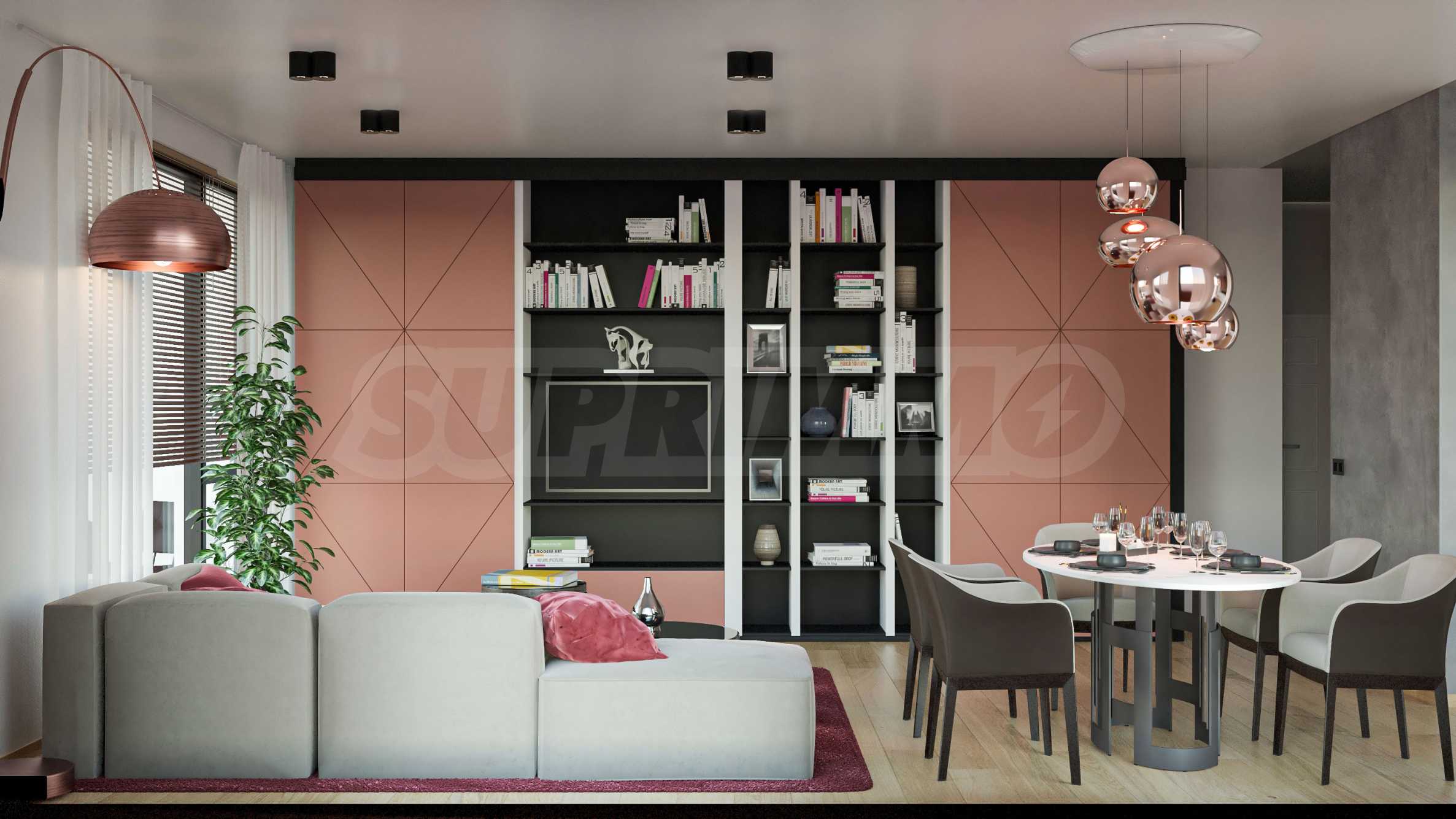 Визуализациите са примерни. Инвеститорът предлага примерни интериорни решения, като е обърнато особено внимание на детайлите, които да създадат усещането за топлина в дома и радост от новото жилище. Опитните дизайнери и архитекти на фирмата са готови да осигурят съпровод до пълна пространствена реализация на всеки индивидуализиран обект.