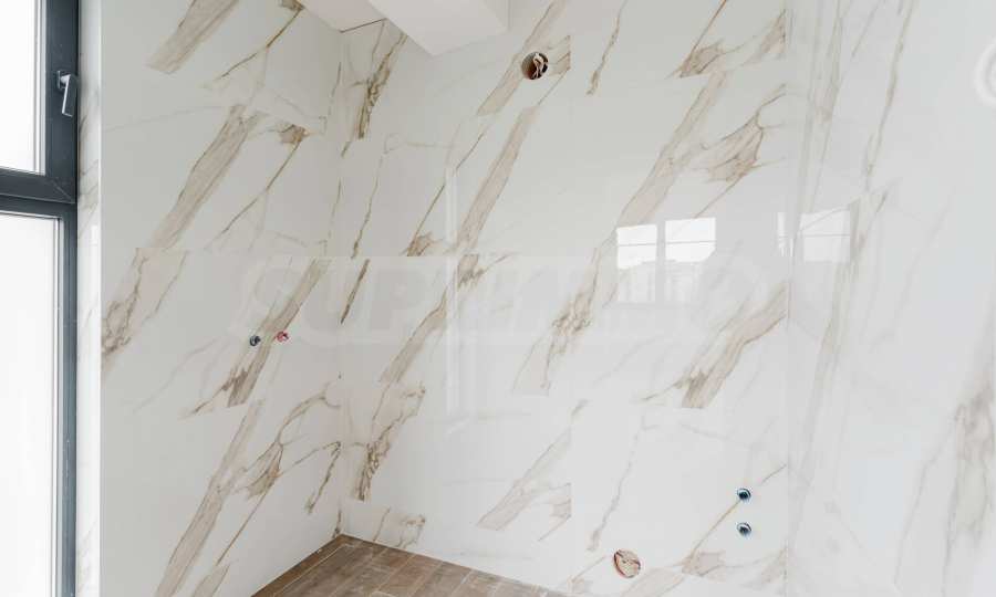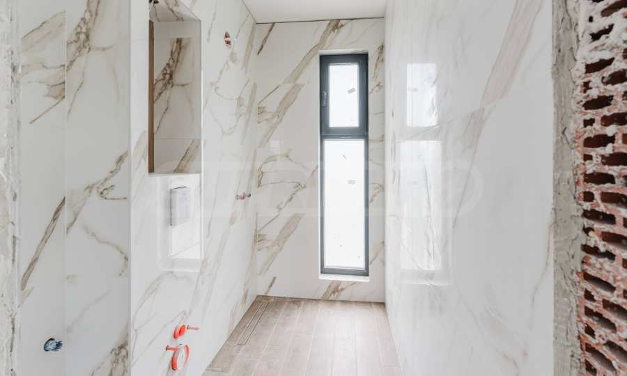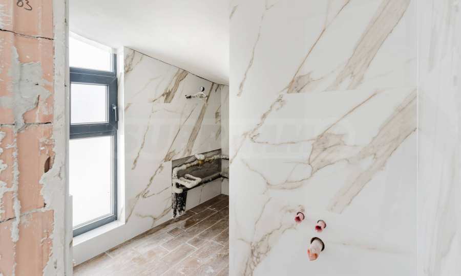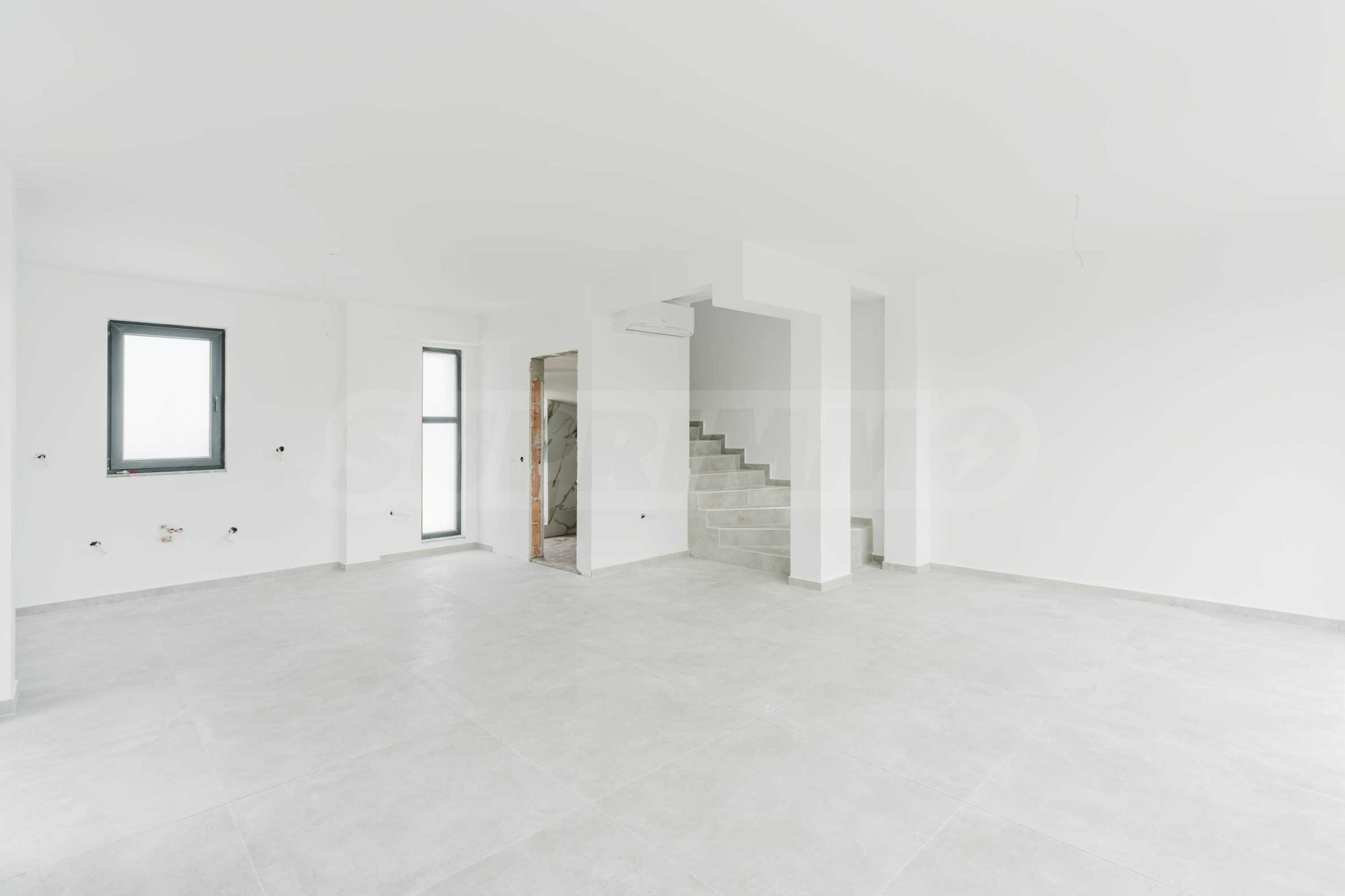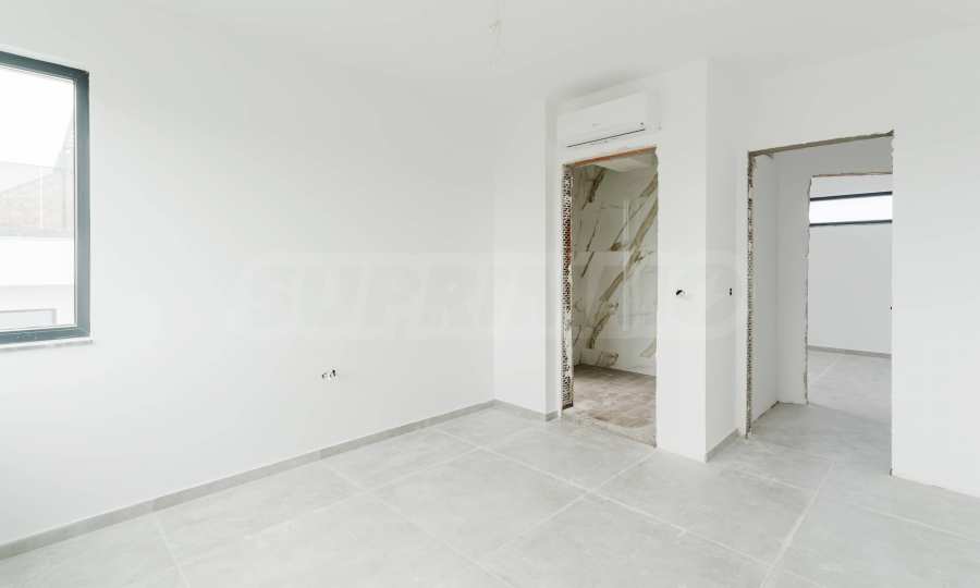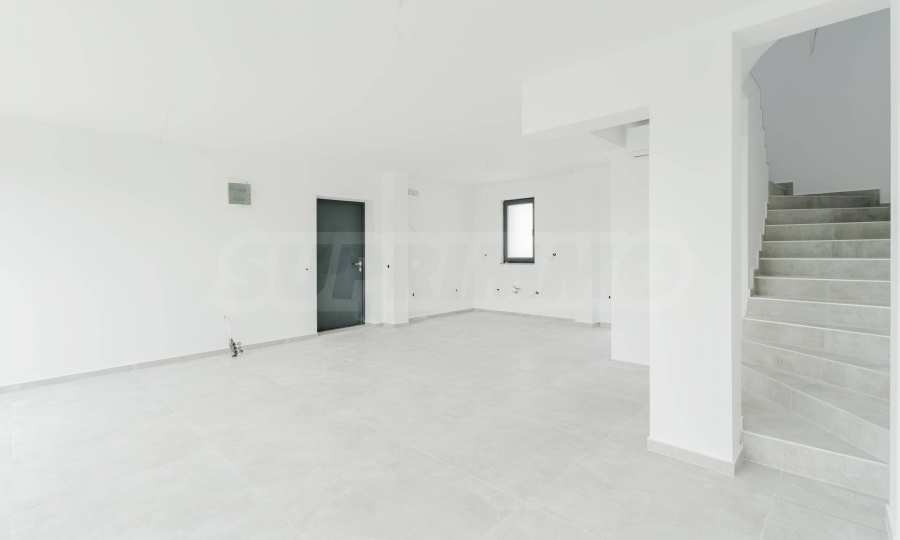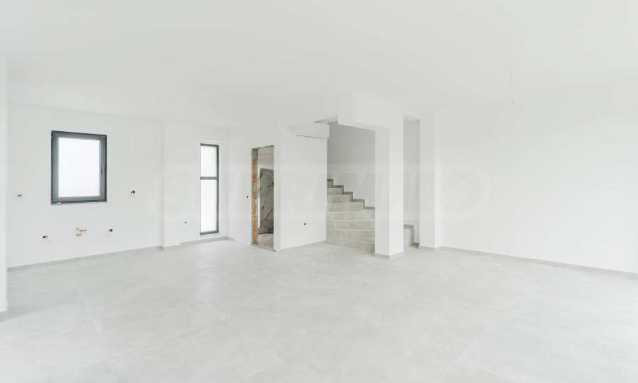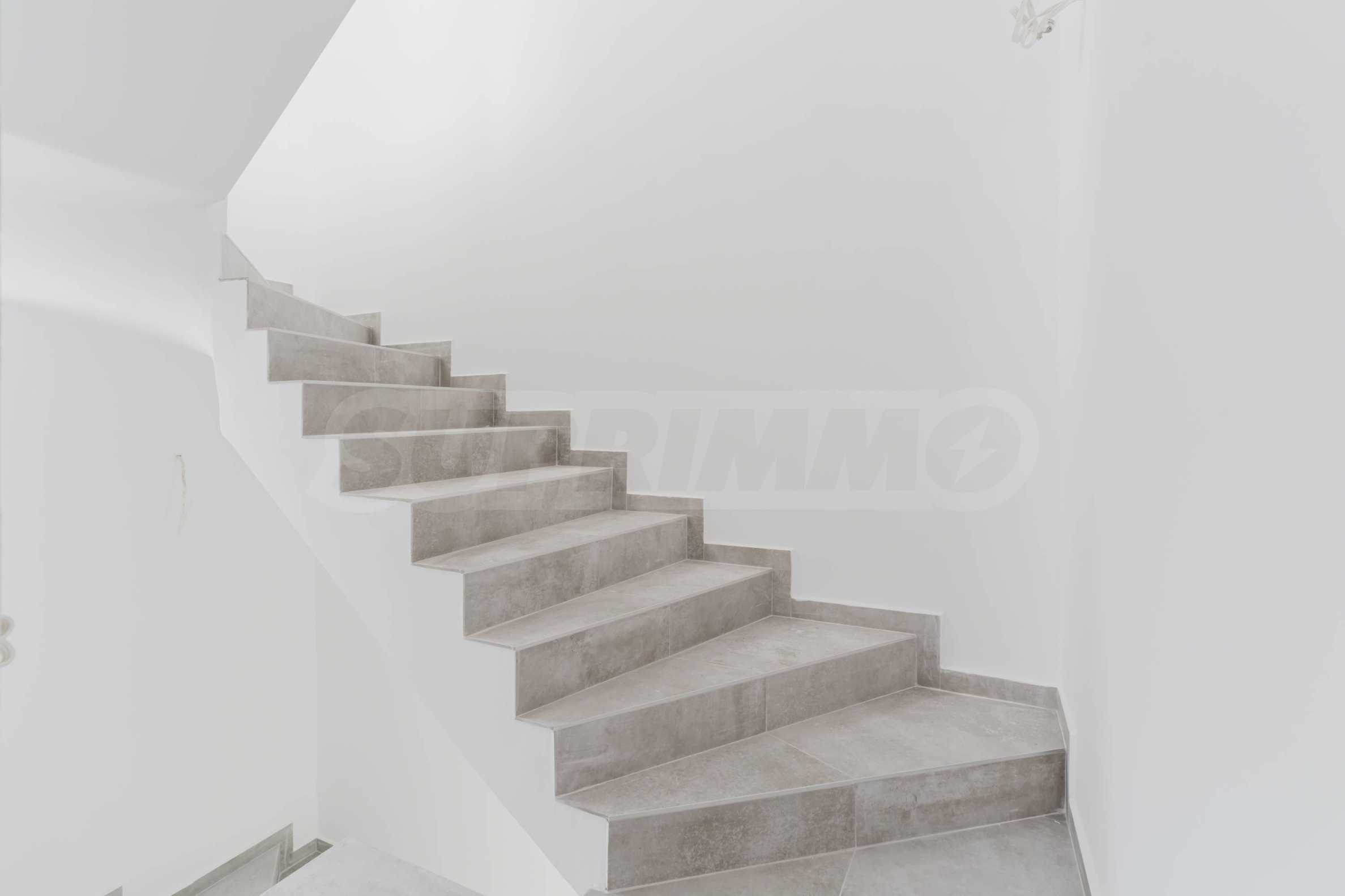 • втори етаж - три спални, едната с със самостоятелна баня с тоалет, отделно баня с тоалетна на етажа, тераса и стълбище;