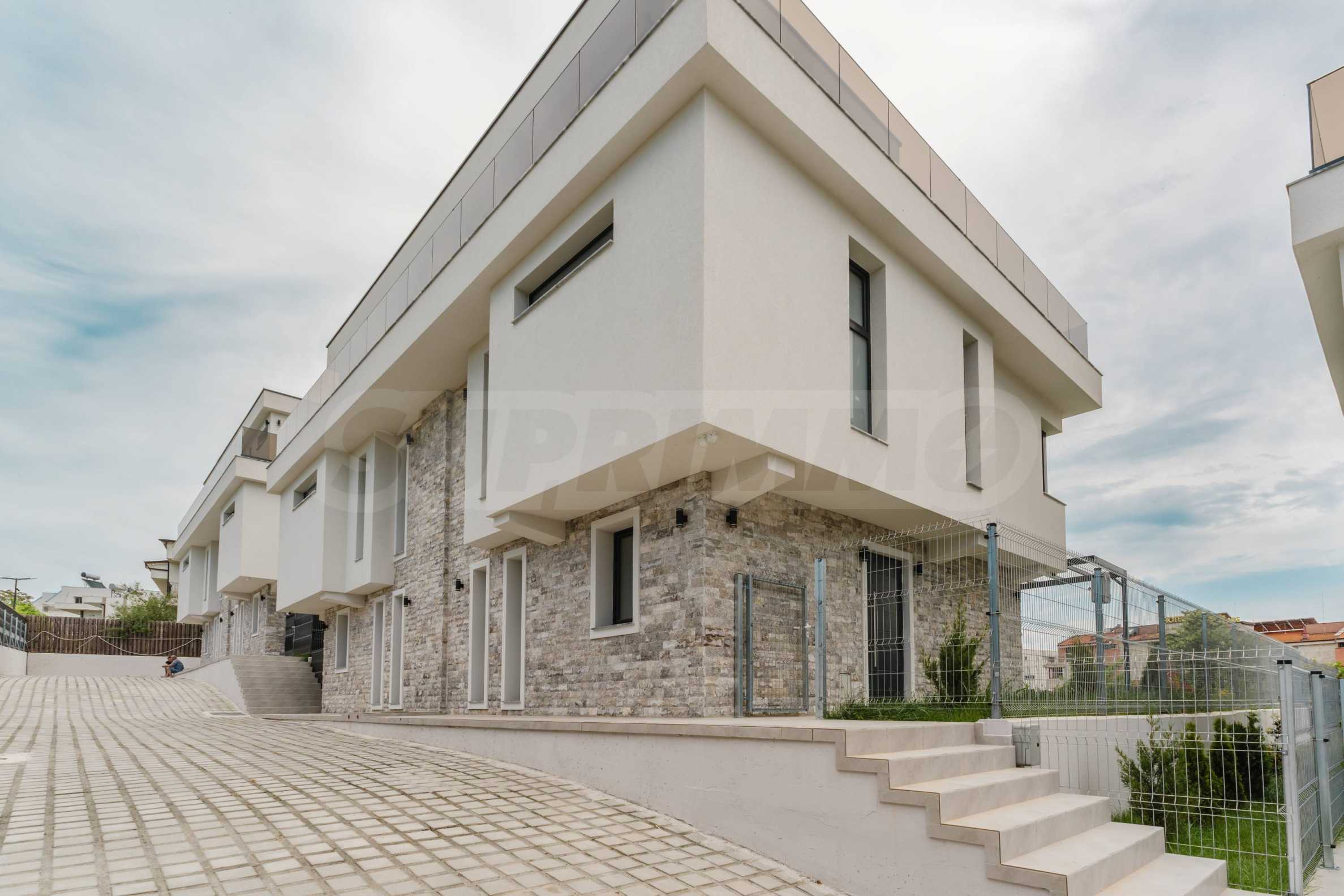 Представяме къща-близнак в комплекс от 8 бр. еднофамилни къщи, с морска панорама и топ локация само на 100 метра от популярния плаж Каваци, близо до гр. Созопол.