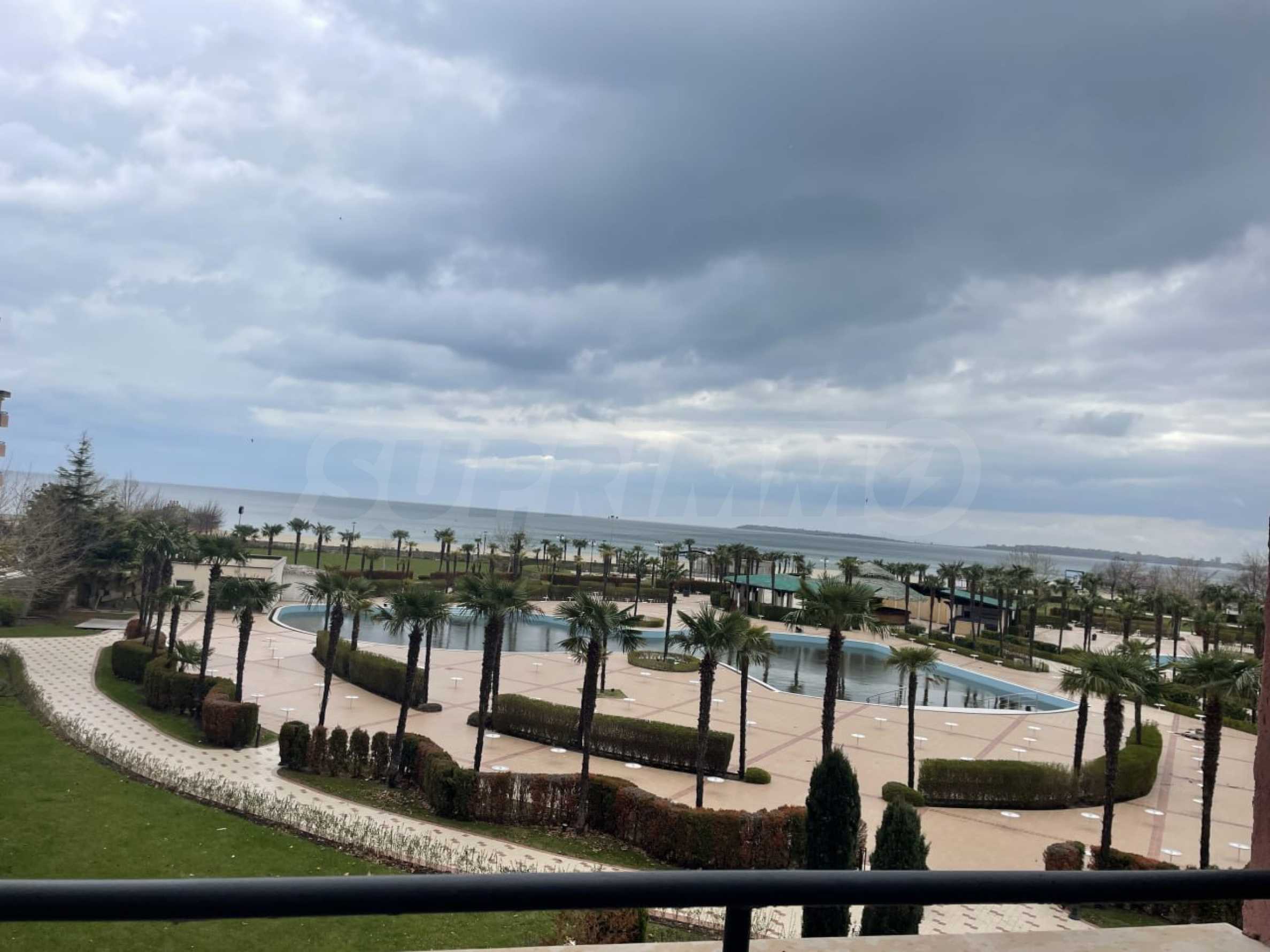 Апарт-хотелът се намира на първа линия до плажа, а територията е с богата инфраструктура.