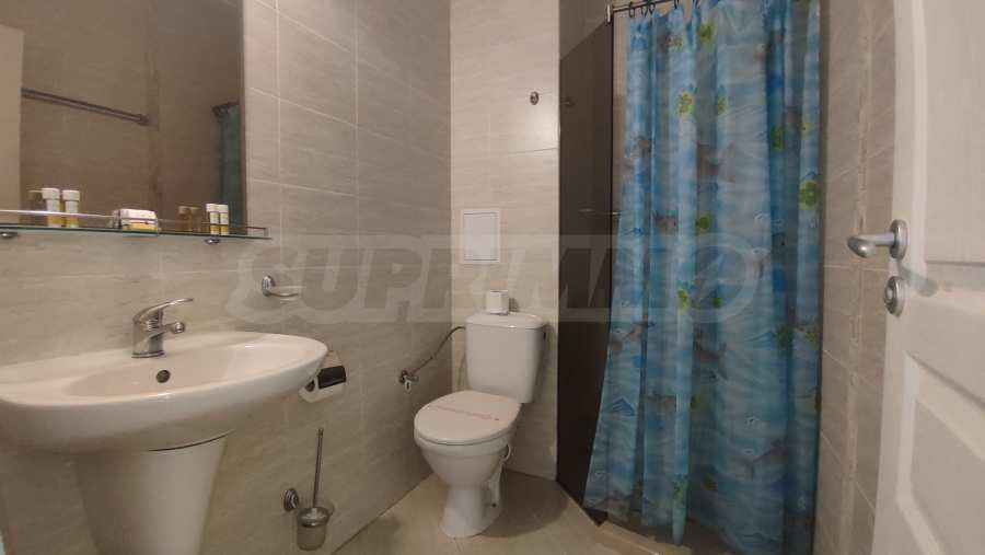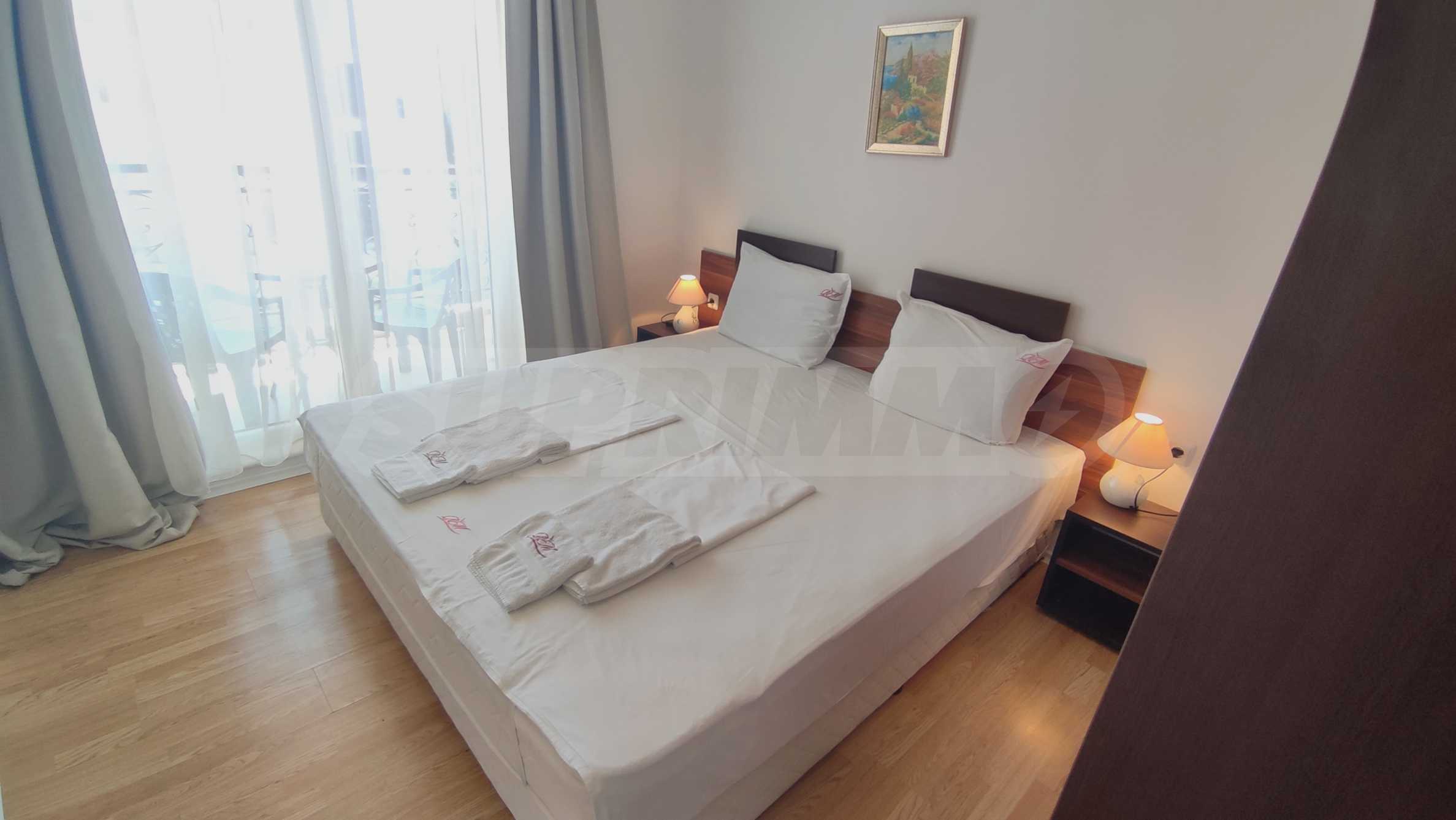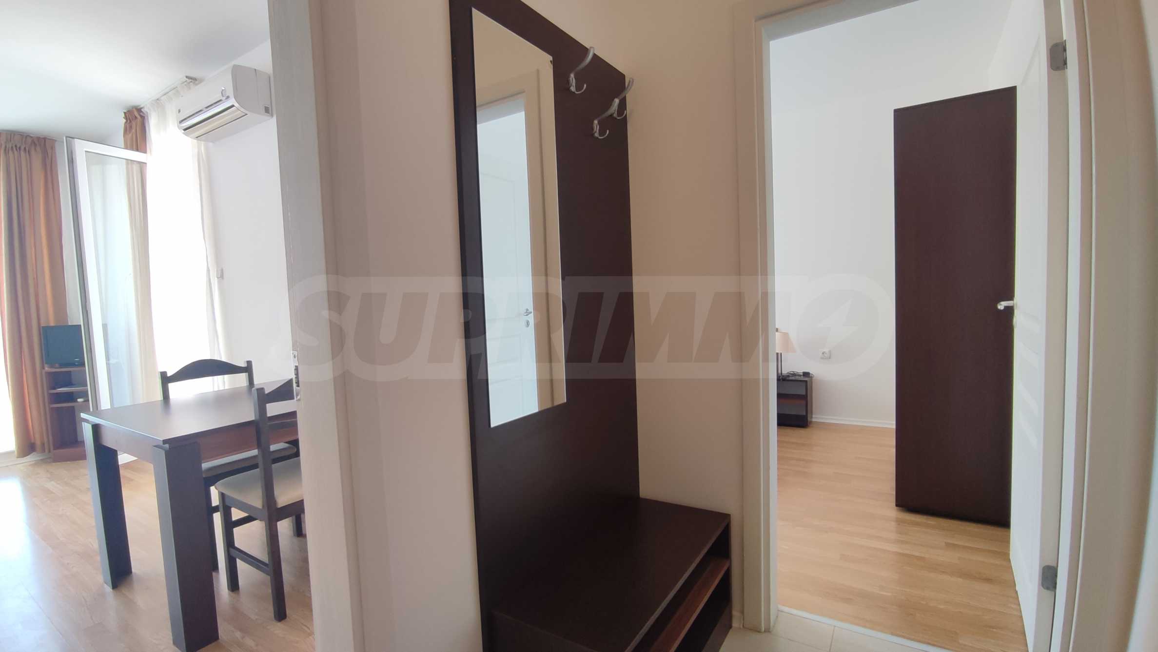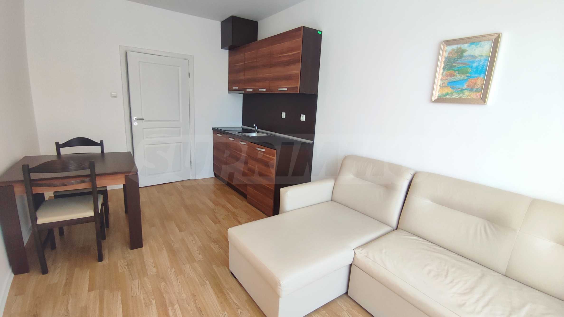 Жилището е готово за ползване, има голям кухненски бокс с котлони и аспиратор, оборудвана баня с душ зона, климатик, ТВ, качествени мебели. Подходящ вариант е както за лично ползване, така и за инвестиция.