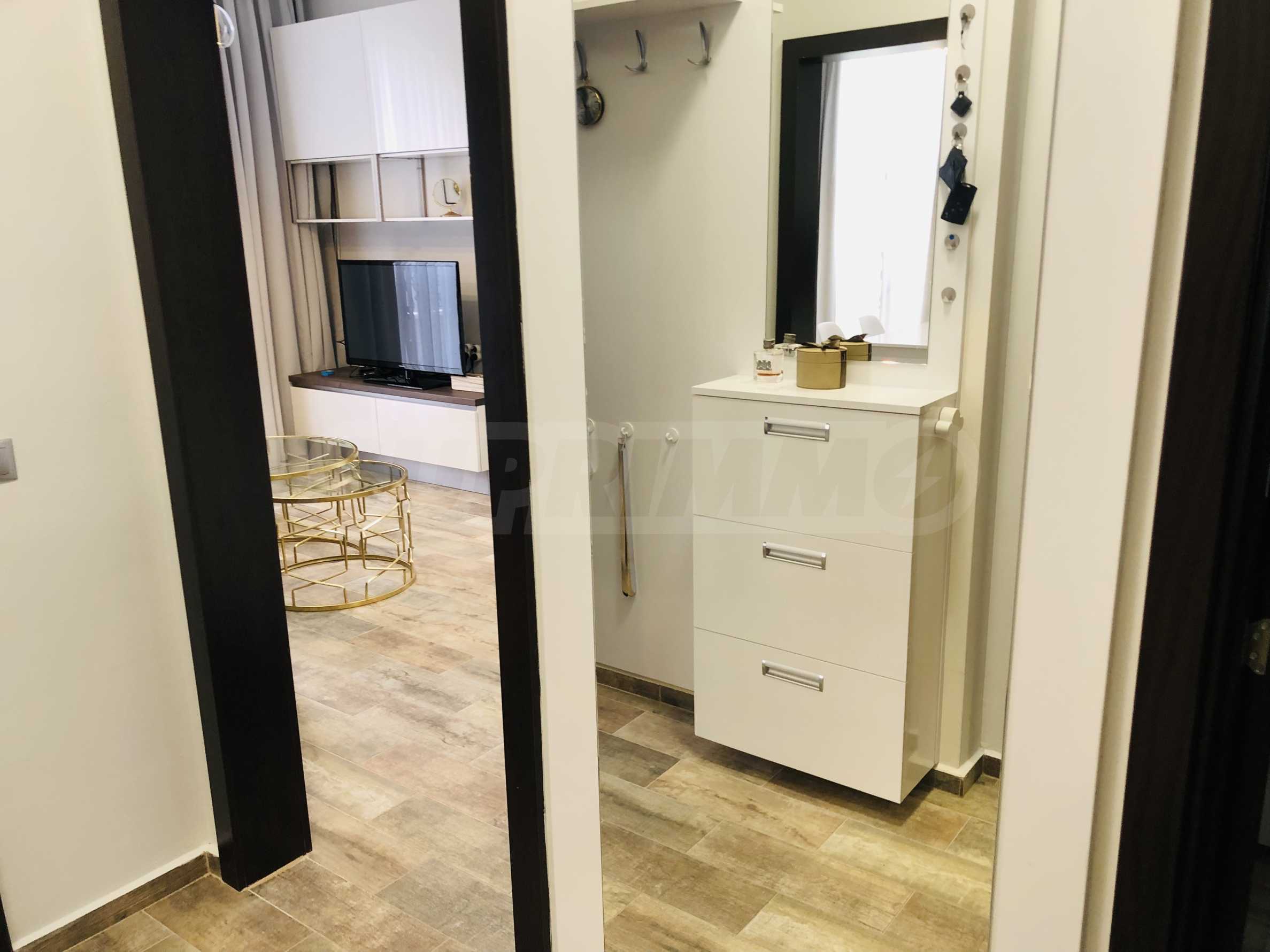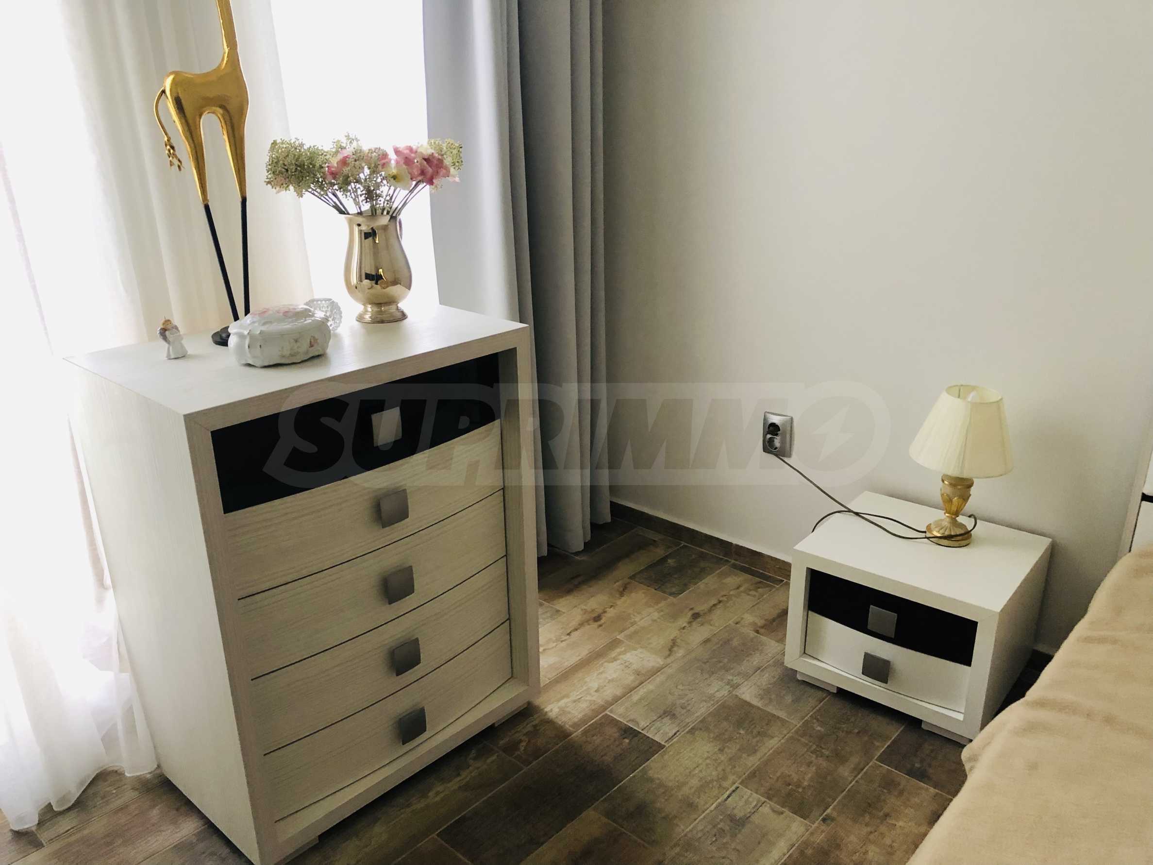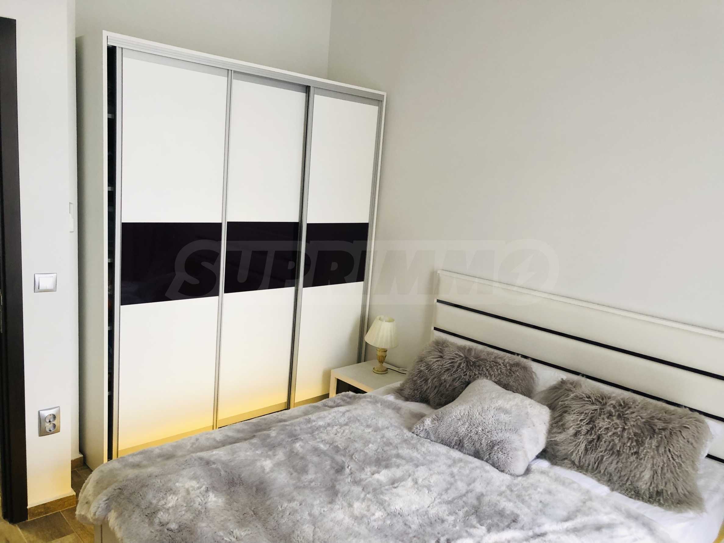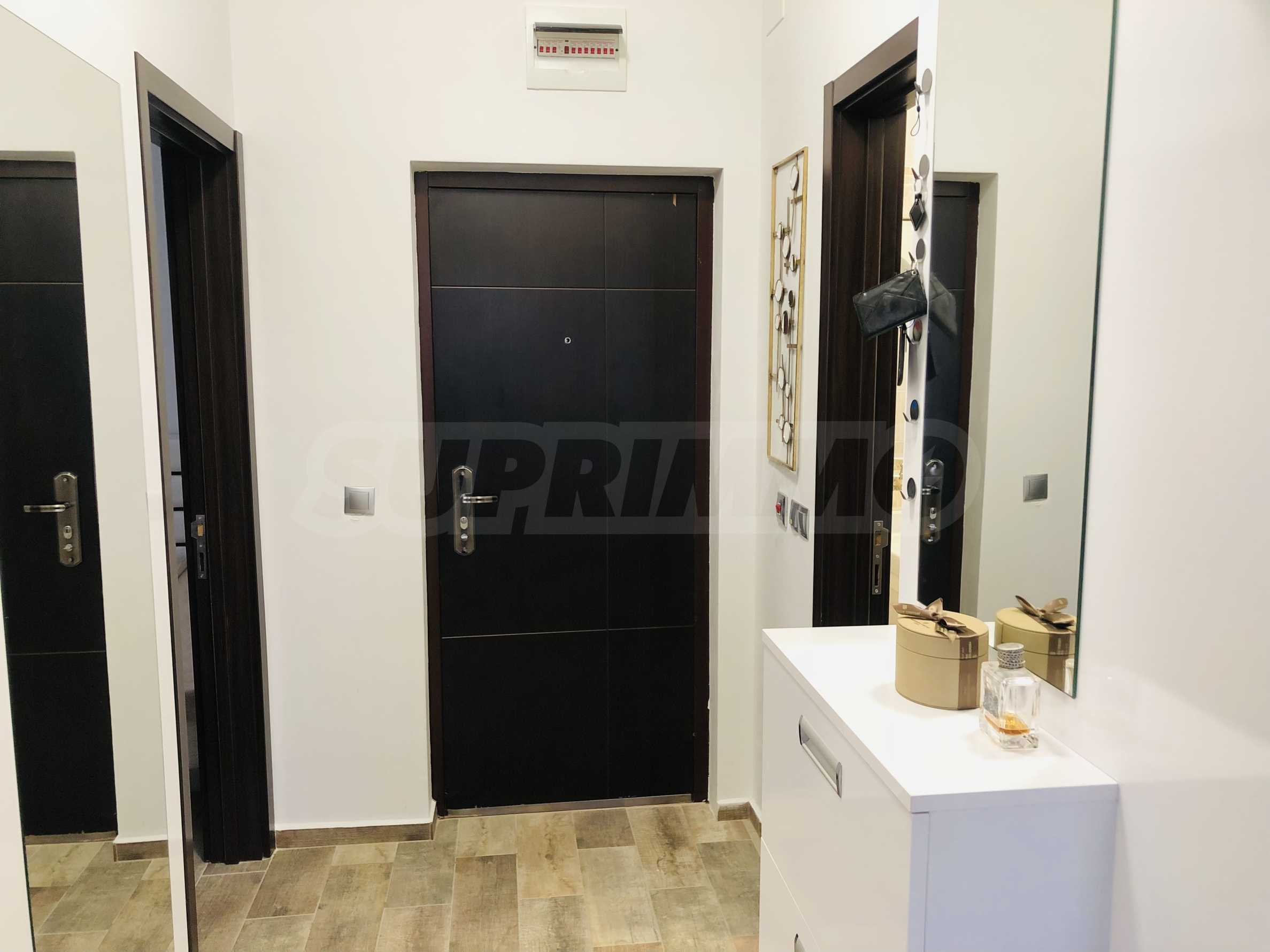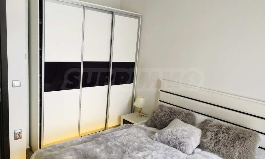 Апартаментът е 63 кв.м и се предлага напълно обзаведен с нови немски мебели, немски домакински уреди: хладилник, многофункционална микровълнова, съдомиялна. Осветлението и декора са от австрийска фирма, на прозорците има и тъмни завеси за пълен комфорт. Жилището е оборудвано с климатици и пералня, готово за нанасяне или за отдаване под наем.