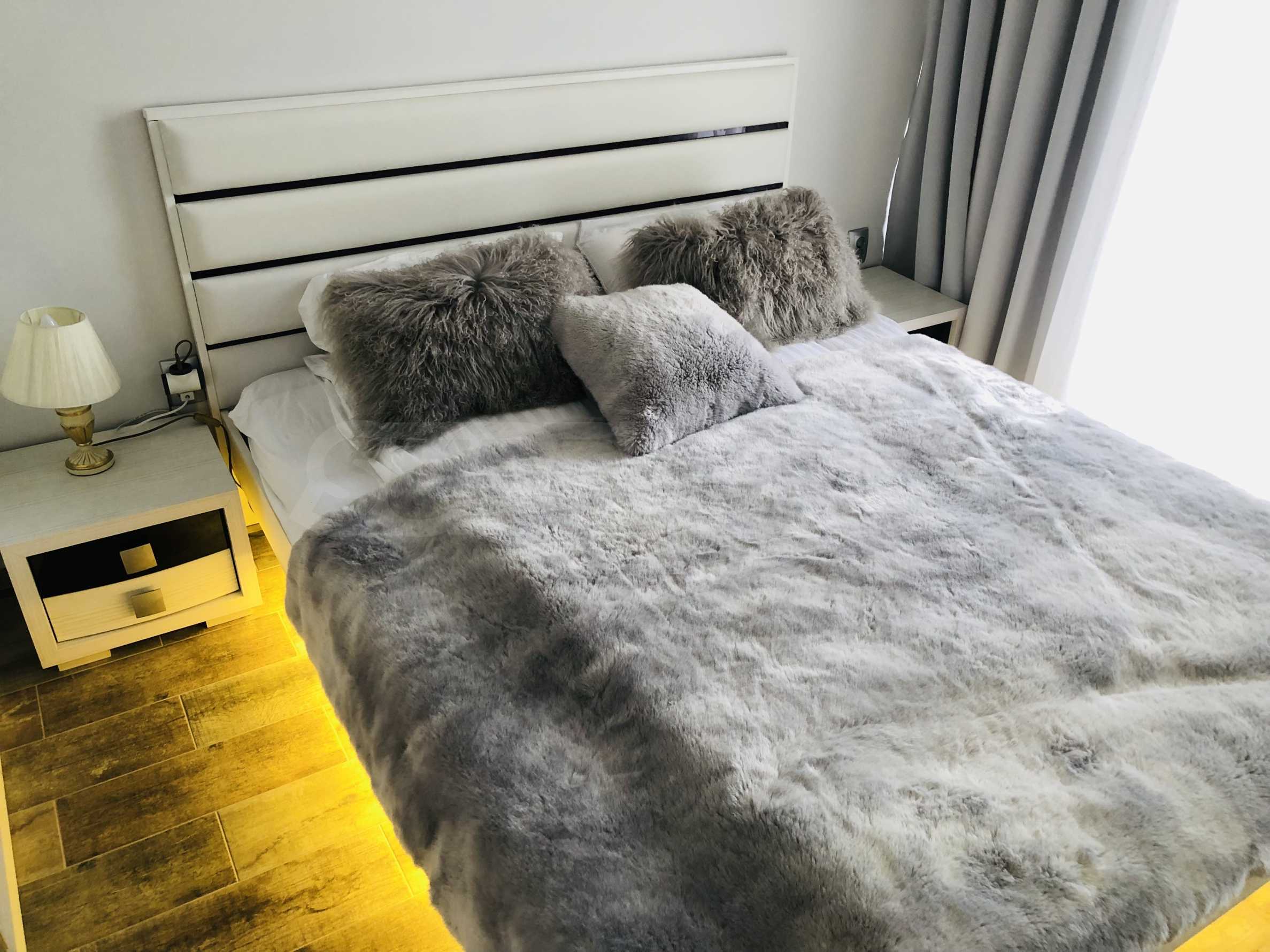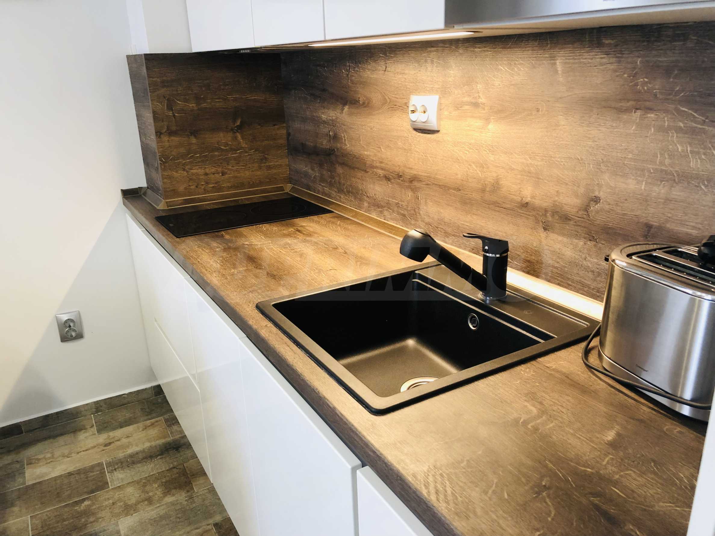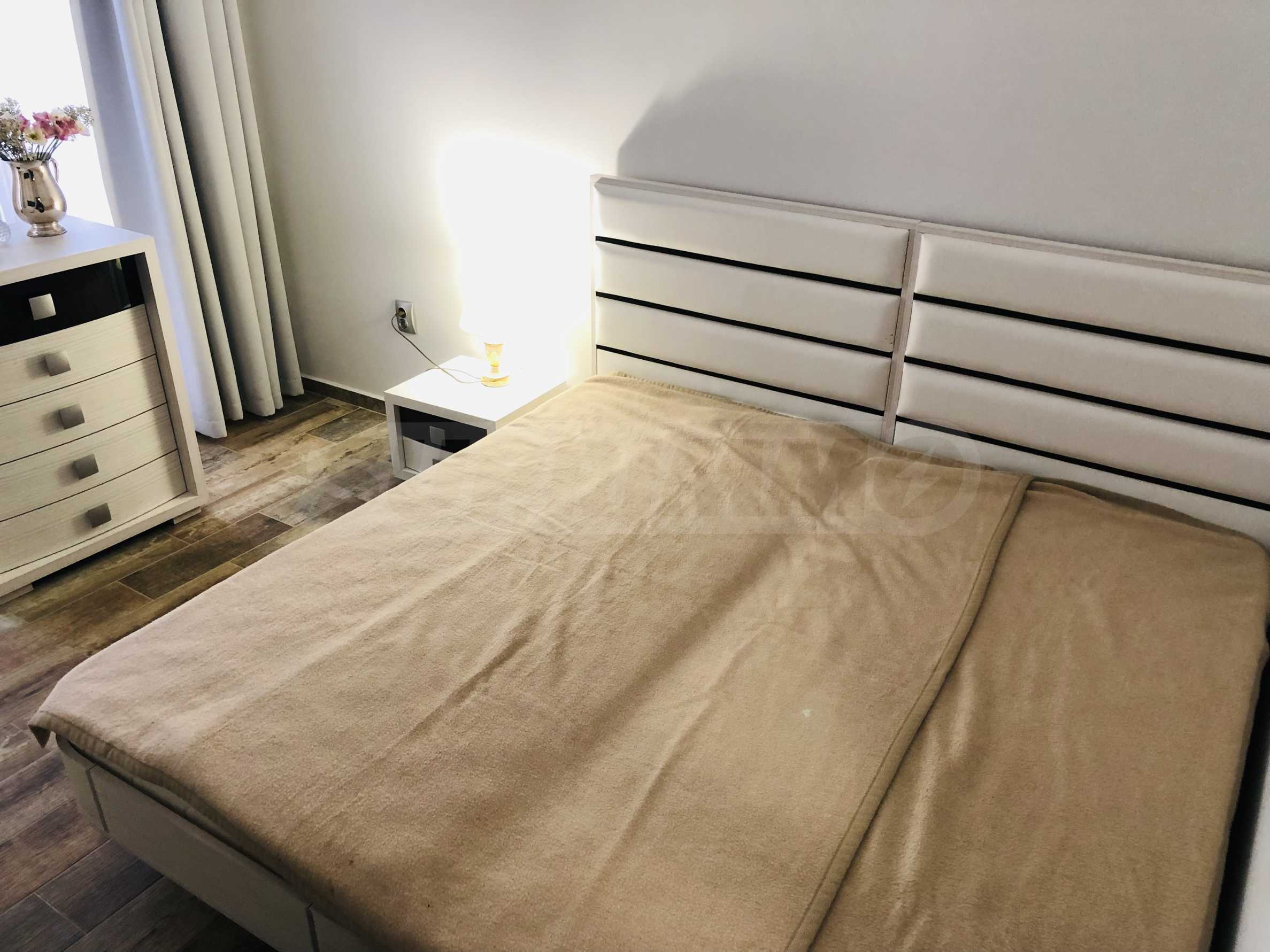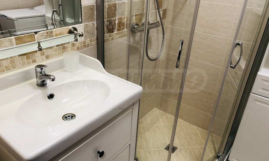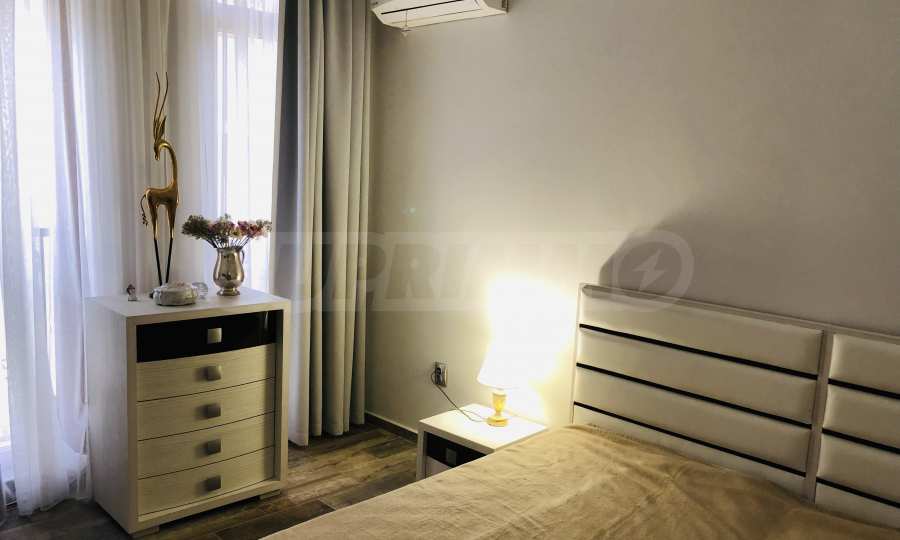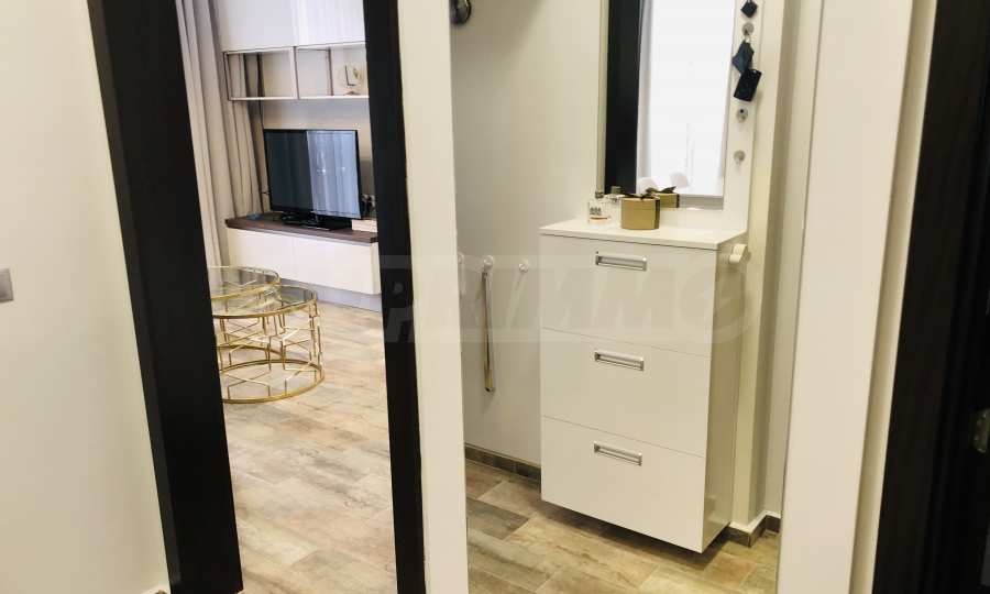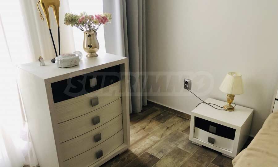 Апартаментът е 63 кв.м и се предлага напълно обзаведен с нови немски мебели, немски домакински уреди: хладилник, многофункционална микровълнова, съдомиялна. Осветлението и декора са от австрийска фирма, на прозорците има и тъмни завеси за пълен комфорт. Жилището е оборудвано с климатици и пералня, готово за нанасяне или за отдаване под наем.