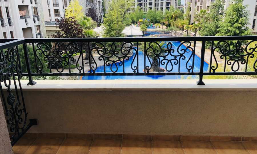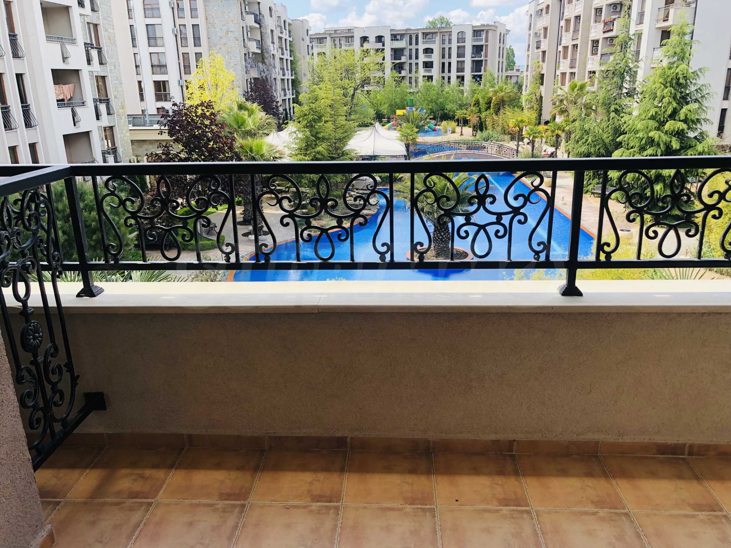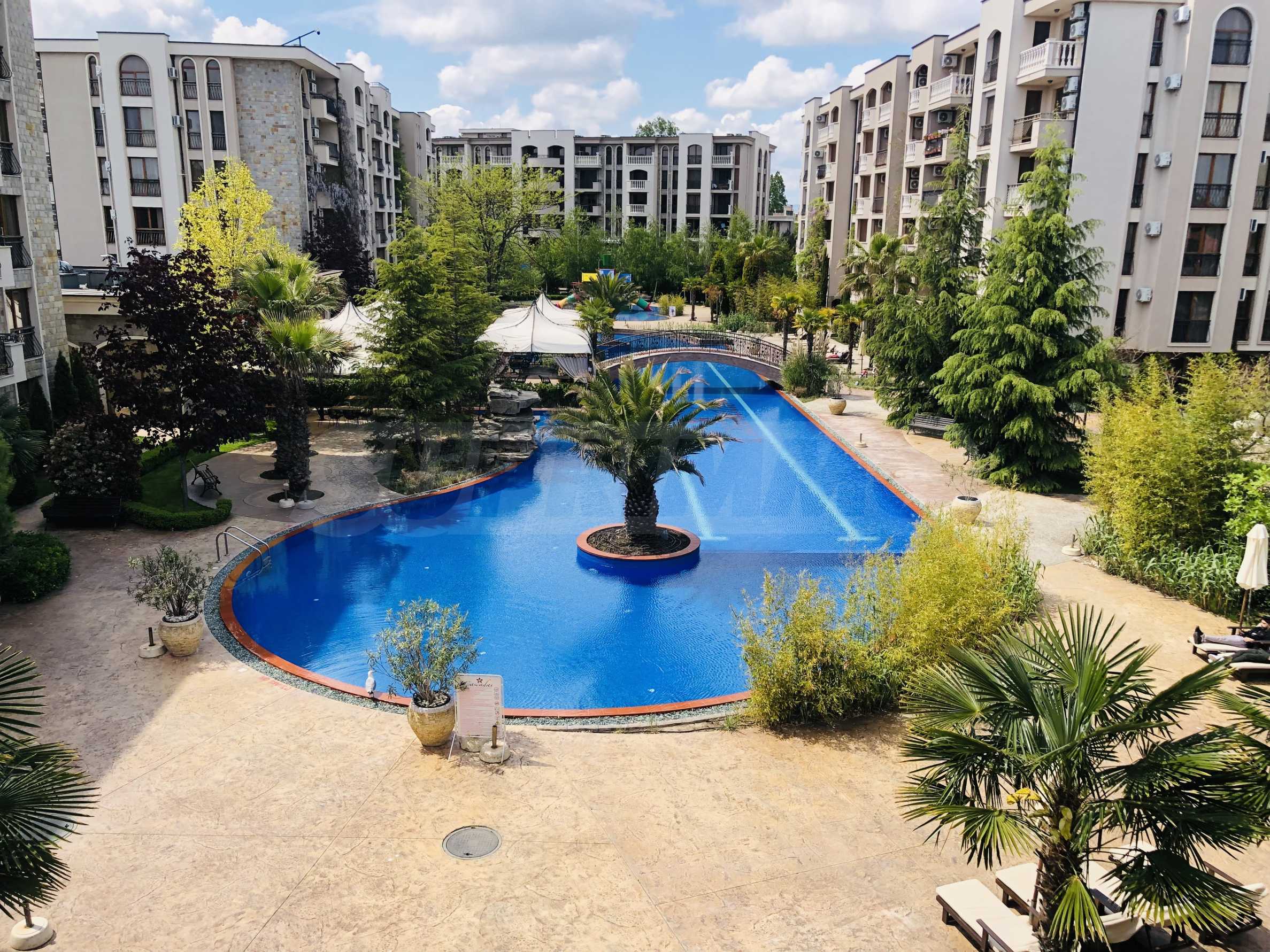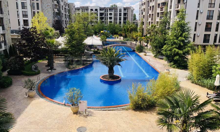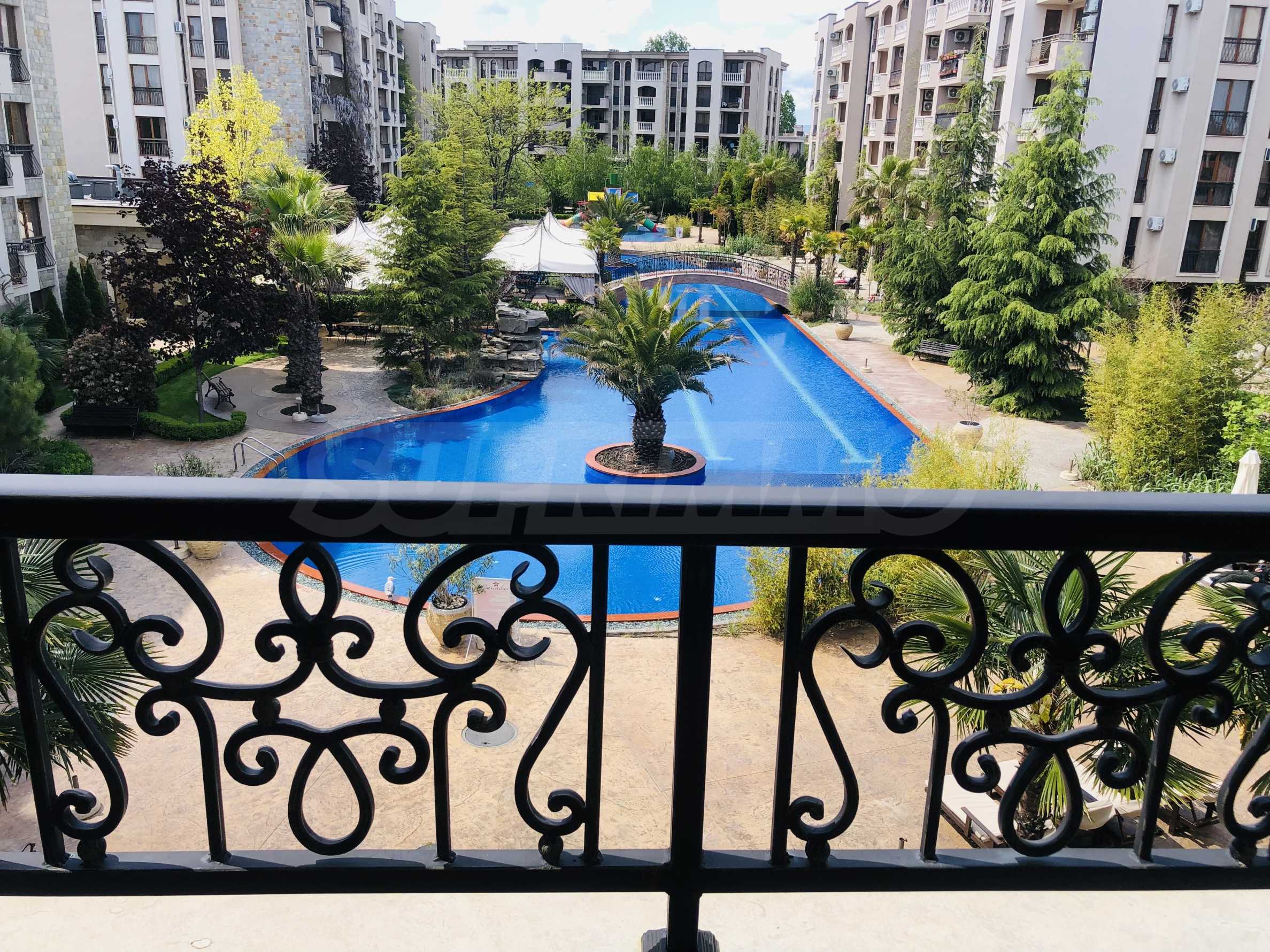 Местоположението е удобно, в хубавия морски комплекс с големи басейни с детска част и водна пързалка, детска площадка, ресторант с международна кухня, бар край басейна, фитнес, Wi-Fi Интернет, магазини, 24-часова целогодишна охрана и поддръжка, подземни гаражи и др.