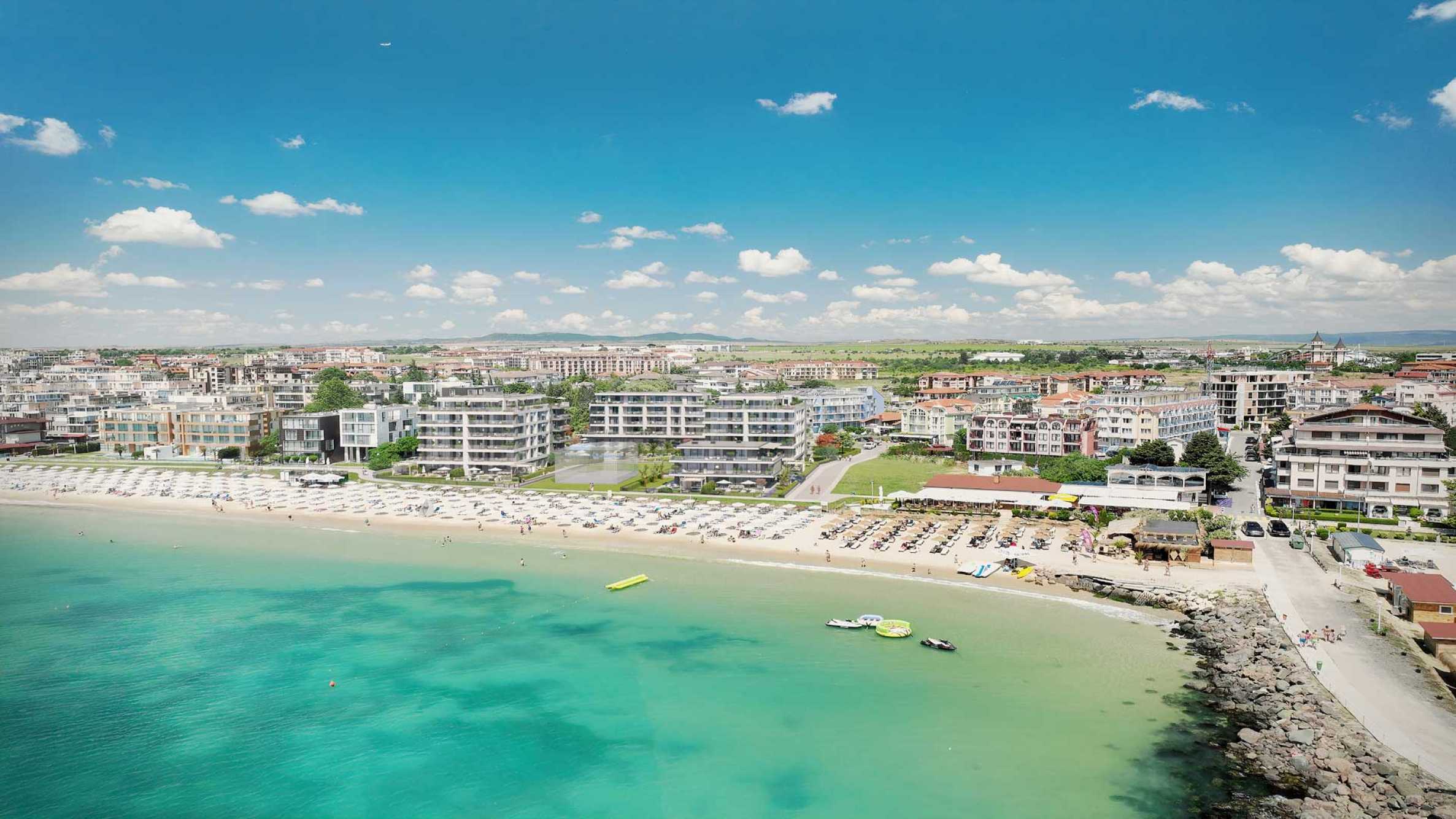 Крайбрежният комплекс, в който се намира имотът, е разположен на първа линия, пред един от най-красивите и чисти плажове на българското Черноморие – "Олимпийски надежди" в Равда. Само на 2 км от Стария град на един от най-предпочитаните ни курортни градове - Несебър и на 1 км от аквапарка, комплексът е разположен в района на кв. "Аурелия" и предлага бърз достъп до градската инфраструктура на Несебър.