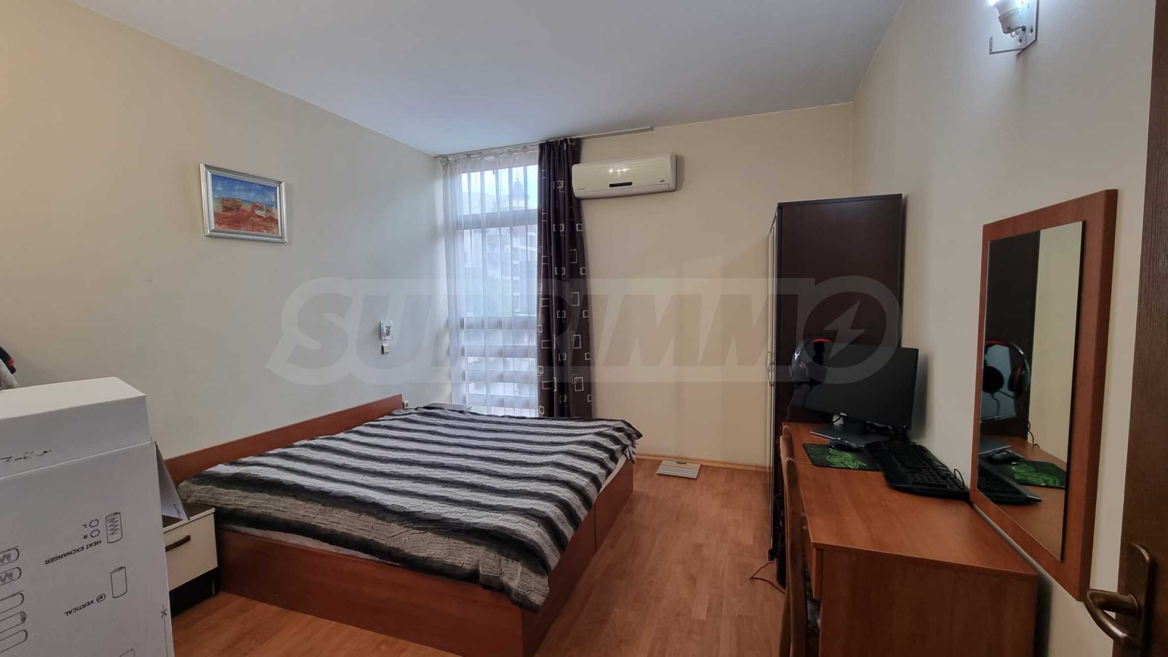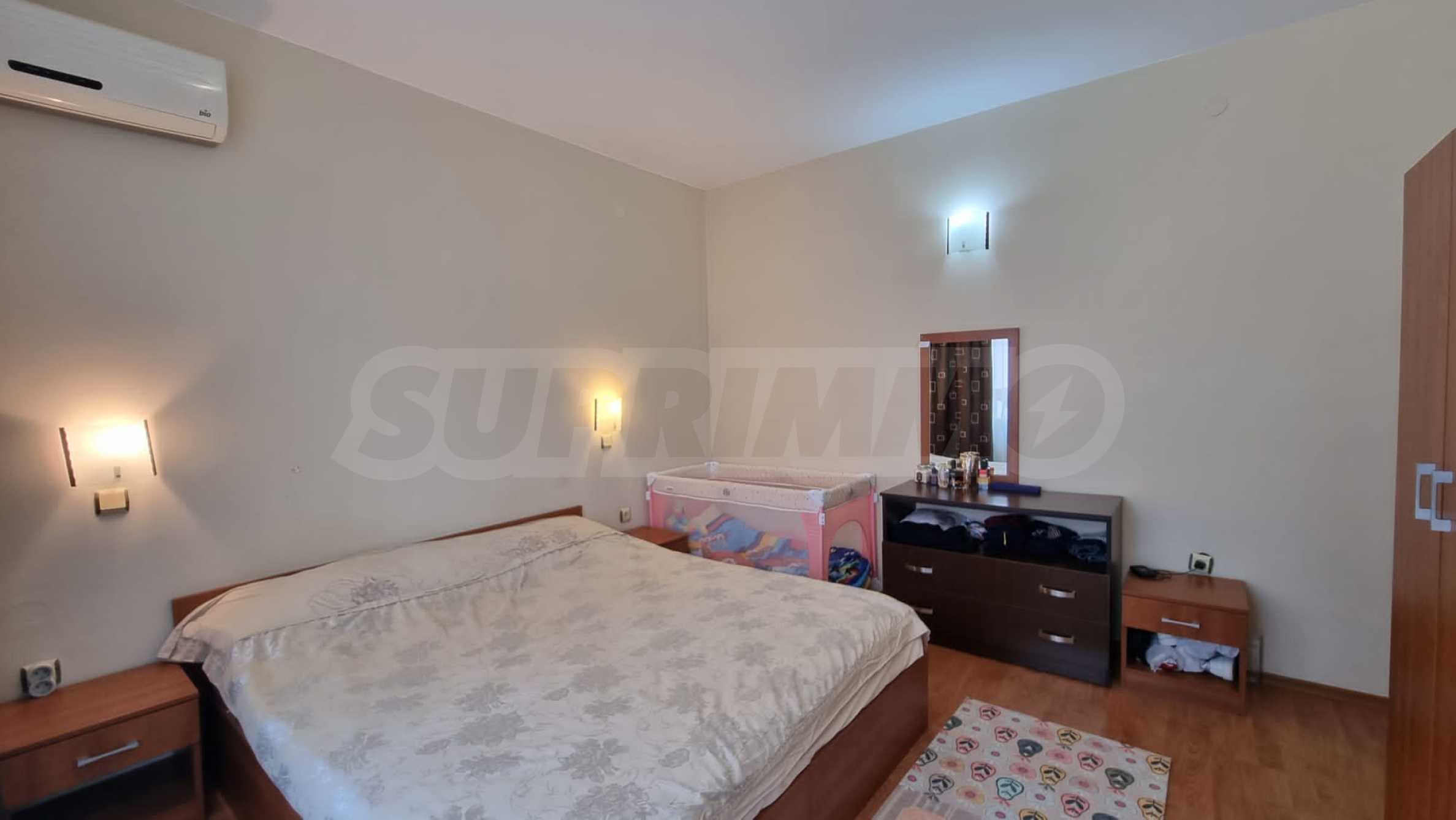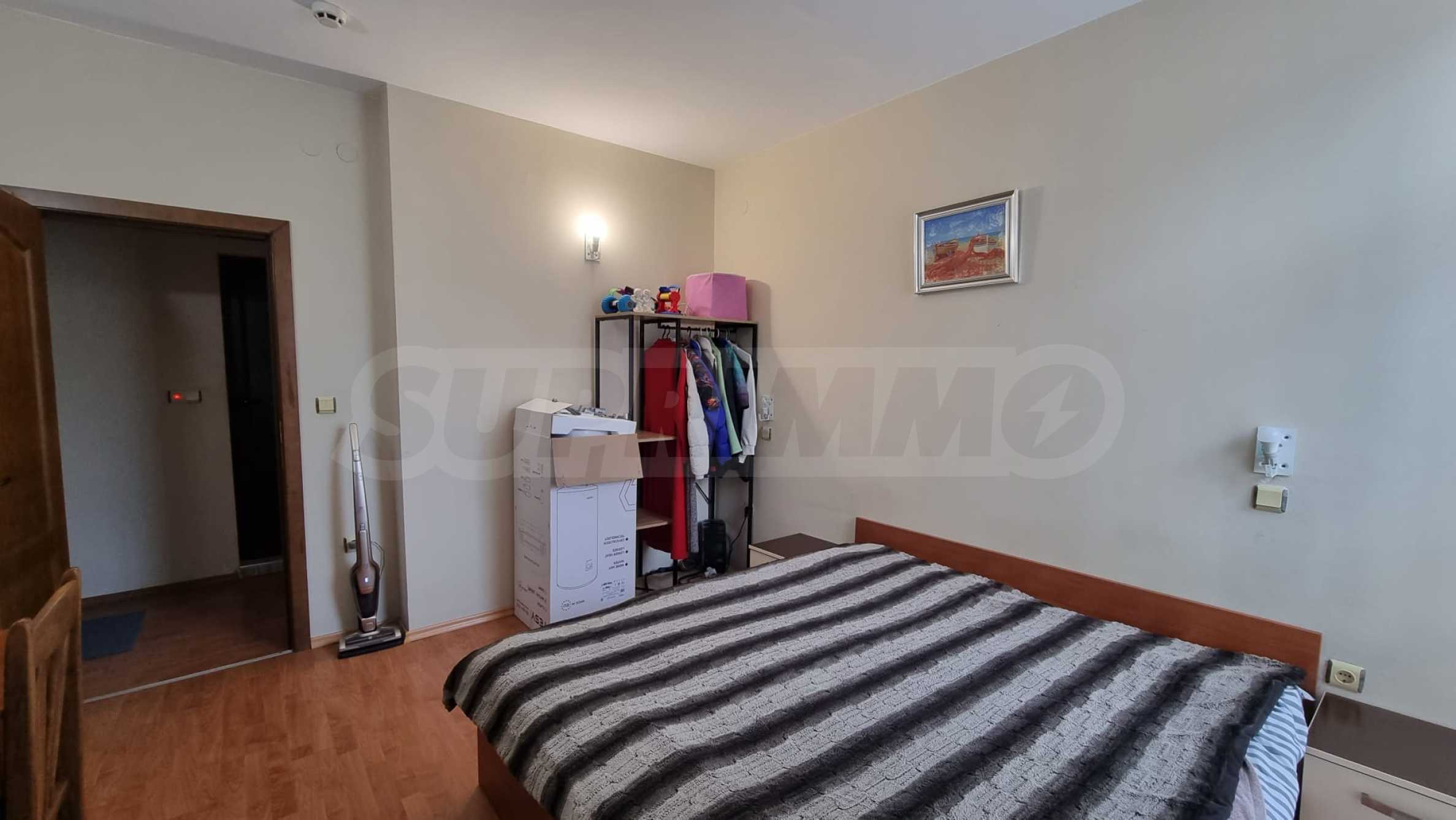 Жилището е напълно обзаведено и готово за нанасяне. Намира се в район е с много развита инфраструктура с магазини, заведения, аптеки, целогодишен супермаркет, спирка на градския транспорт и други.