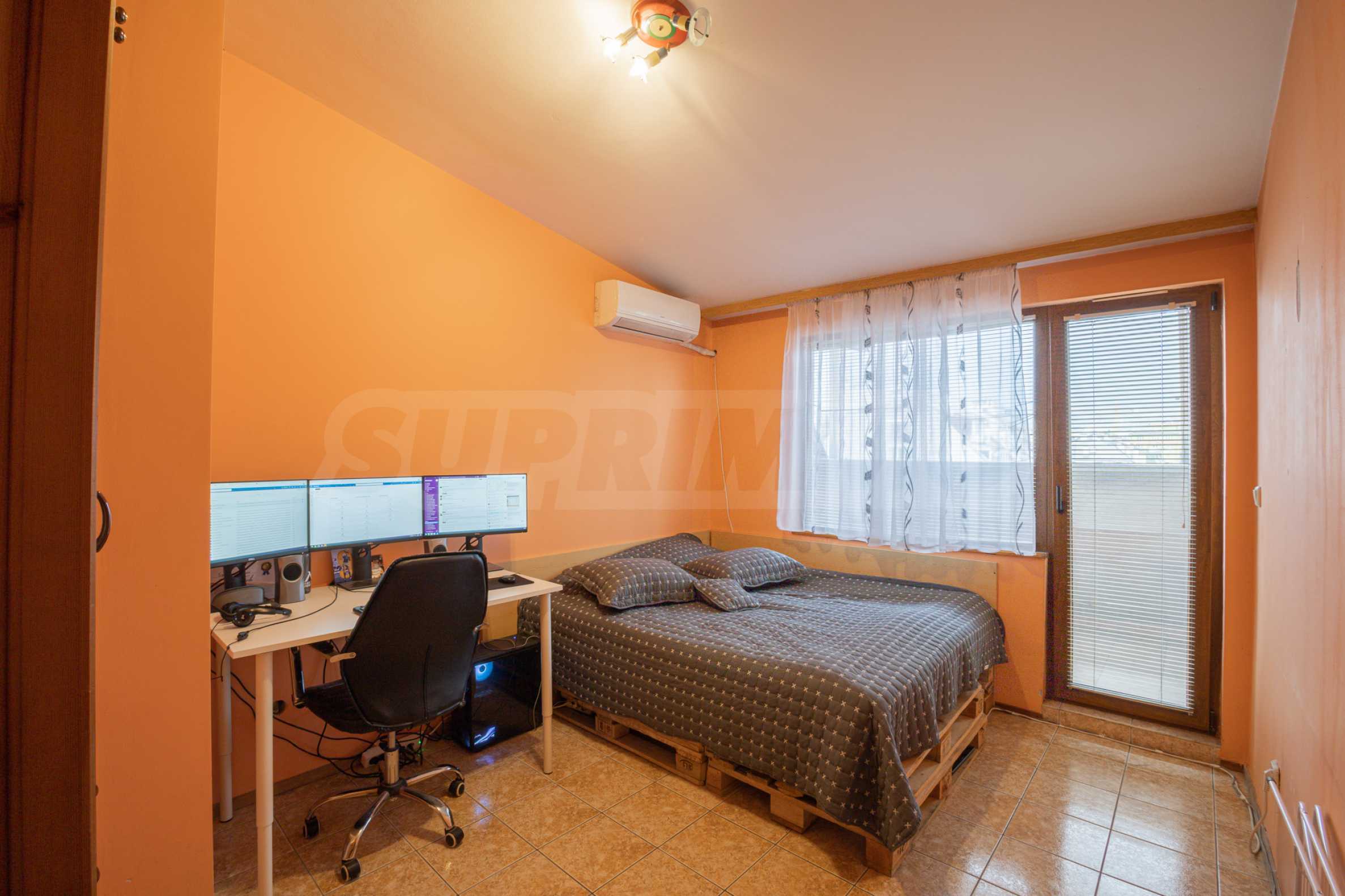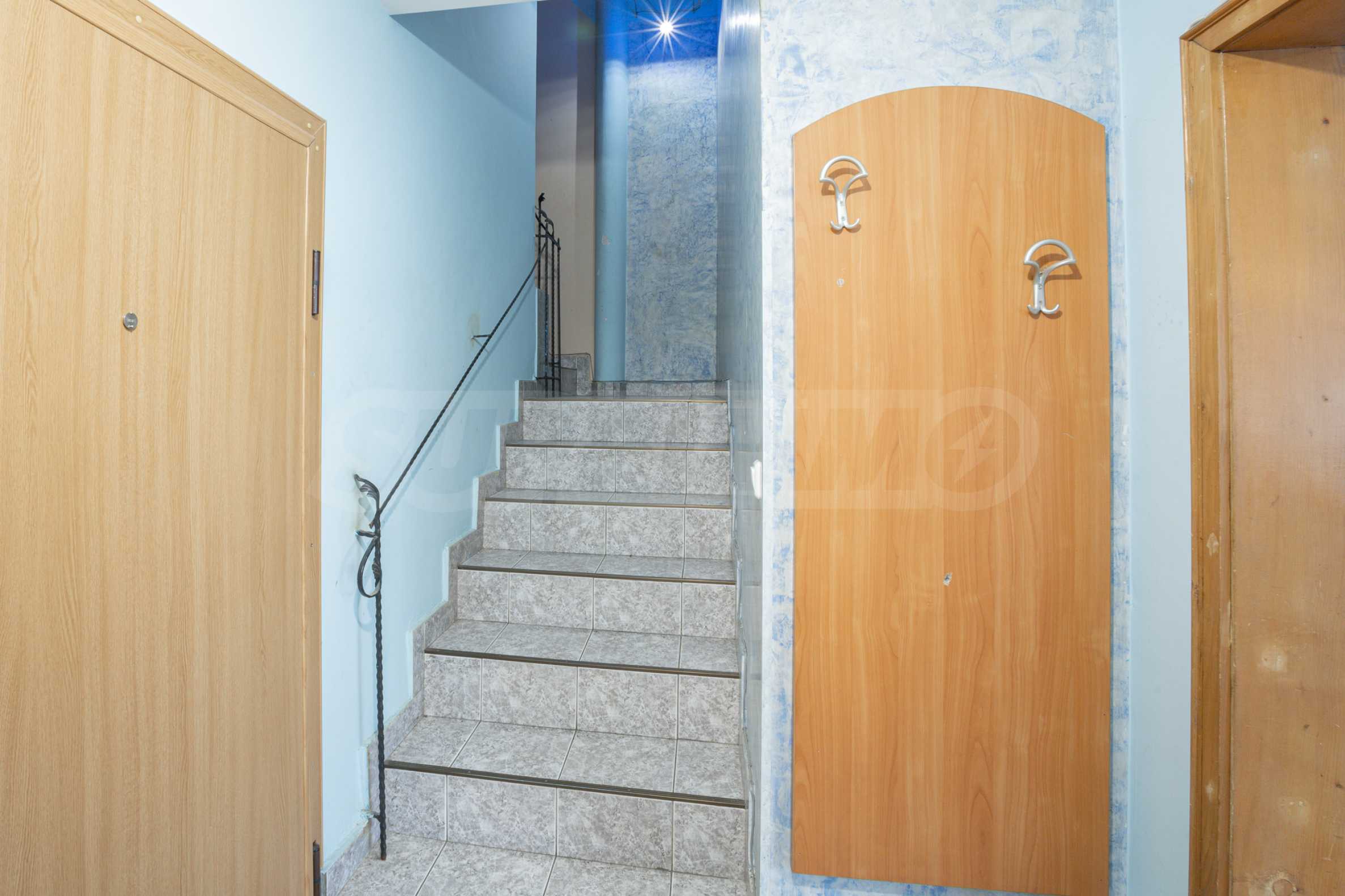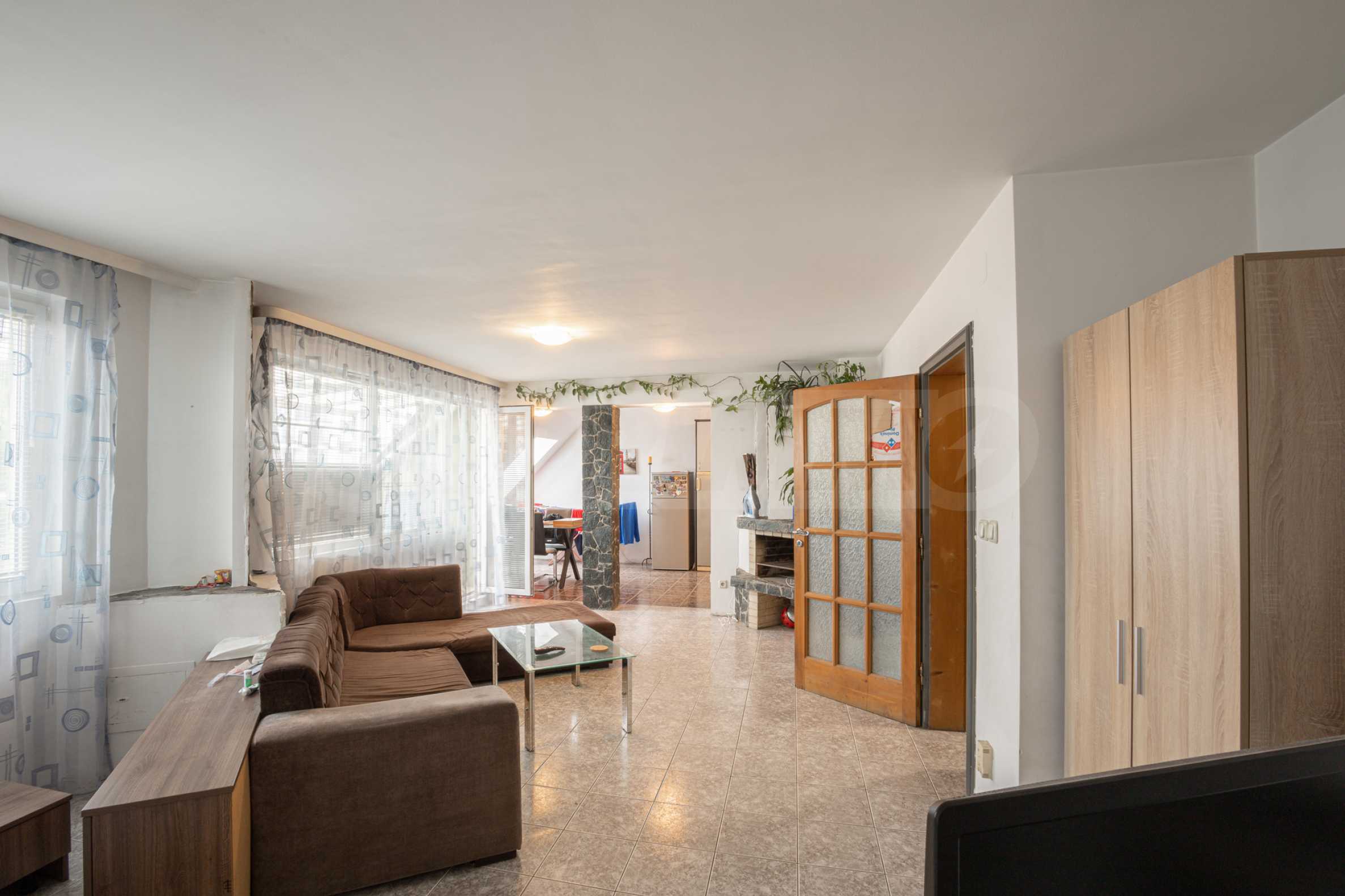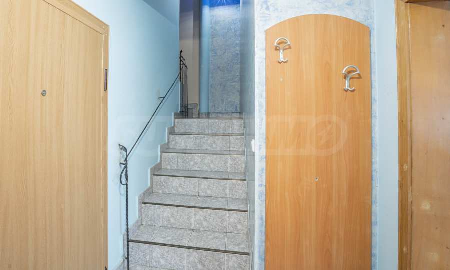 Входът в мезонета Ви води към просторната дневна, която Ви позволява да се насладите на комфорт и да отдъхнете от натовареното ежедневие. Тук имате достатъчно място за поставяне на удобни мебели и разполагате със зона за хранене и приготвяне на вкусни ястия за Вас и Вашите близки. Прозорците позволяват изобилие от естествена светлина да прониква в пространството и да осветява интериора. Чрез вътрешно стълбище се достига до второто ниво на мезонета, където са разположени две големи спални. Всяка спалня е просторна и уютна, с достатъчно място за легло, гардероб и допълнителни мебели. Има прозорци, които позволяват прекрасни гледки и осигуряват свеж въздух и естествена светлина. Мезонетът разполага с една баня с тоалетна, която е снабдена с необходимите санитарни уреди и аксесоари. Тя осигурява комфортно място за грижа за себе си. Освен основната баня, имотът разполага с допълнителна отделна тоалетна, на първо ниво. Това е удобно решение, което позволява по-голяма практичност и улеснение за живущите в мезонета, както и техните гости. Мезонетът предлага три тераси, от които можете да се наслаждавате на впечатляващи гледки към града и планината.