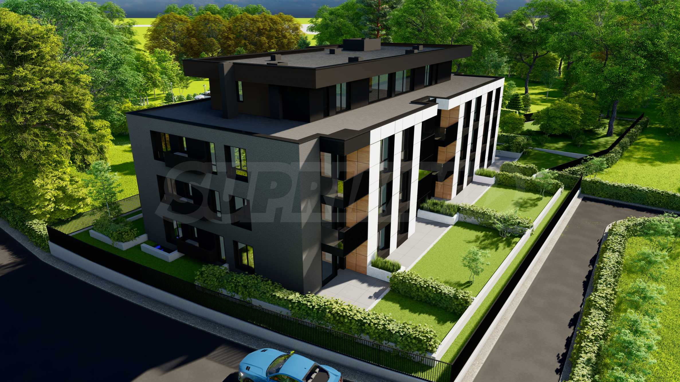 Архитектурната визия е модерна, с фасадно оформление, комбинация от полимерна мазилка и естествен камък. Общите части ще бъдат луксозно изпълнени и оборудвани с гранит, дървена ламперия и луксозен хидравличен асансьор. Предвидени са богато озеленени площи, паркова среда с детски кът, както и фасадно LED осветление и декоративно градинско осветление, което да очертае парцела и зелените площи.