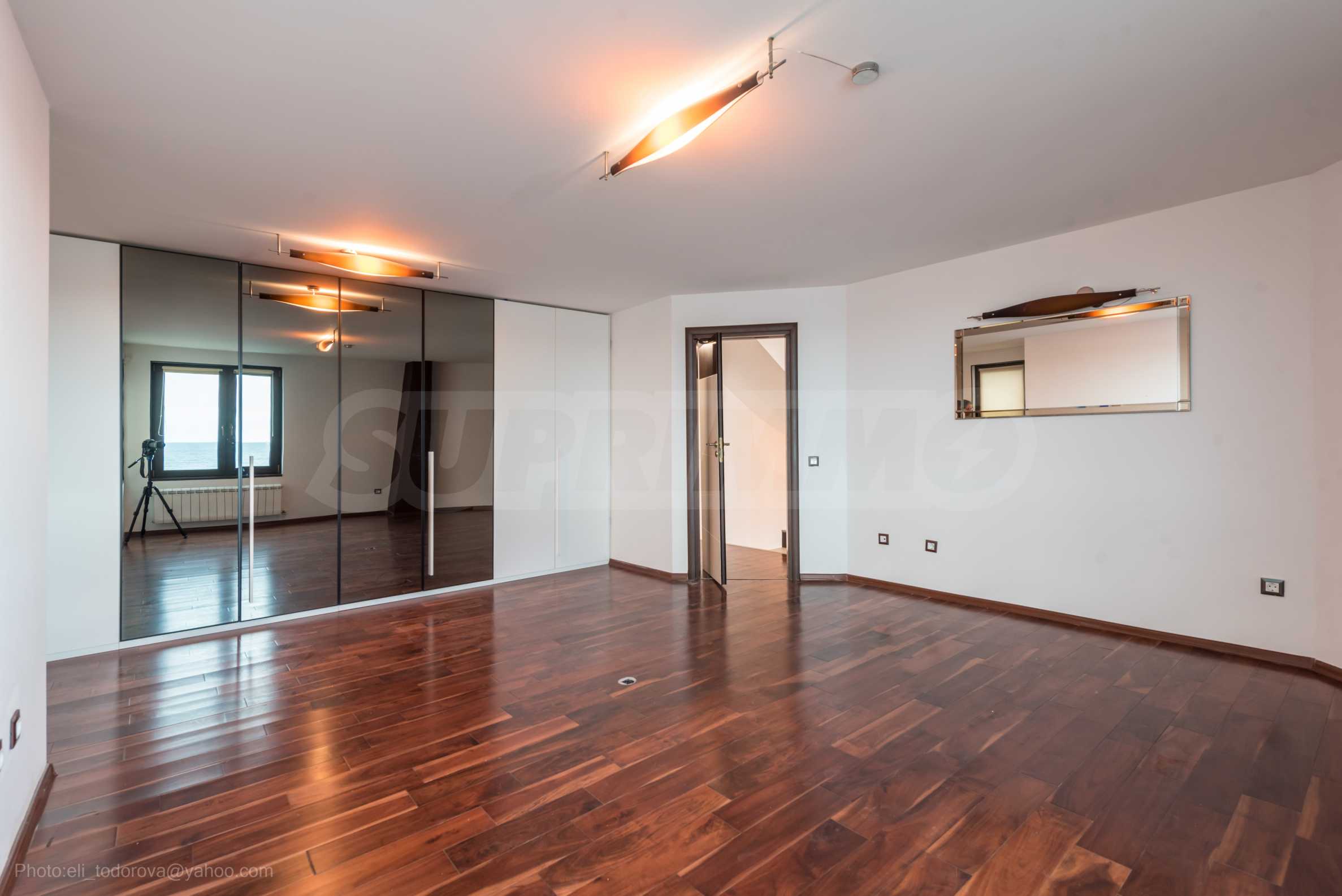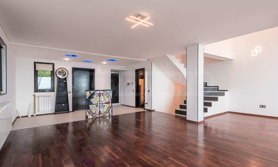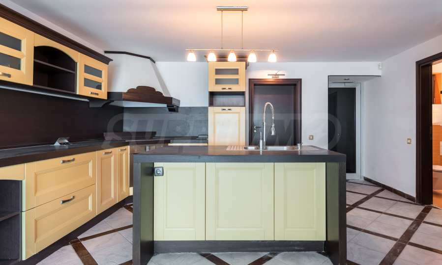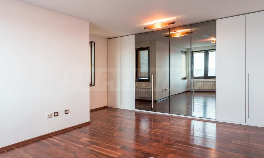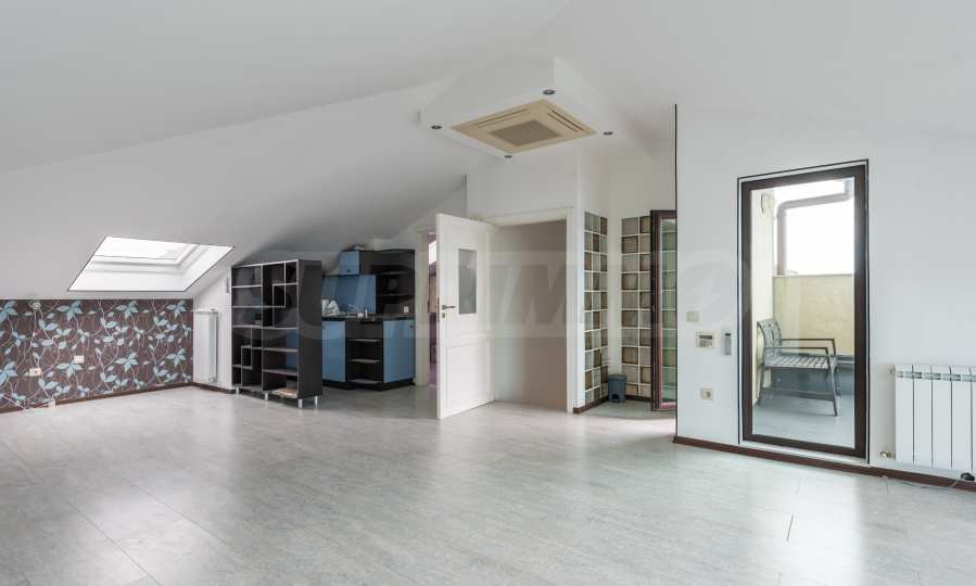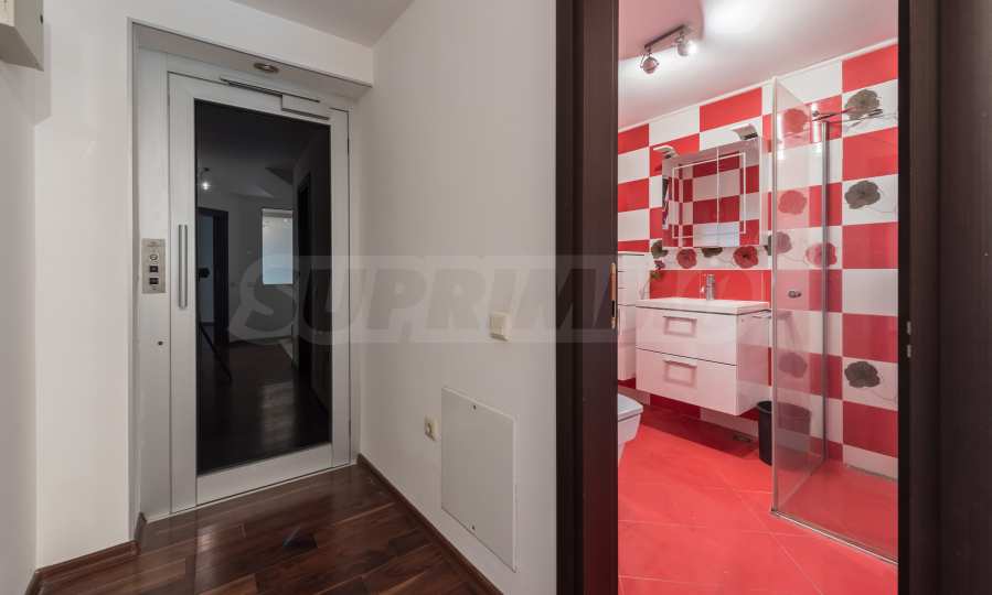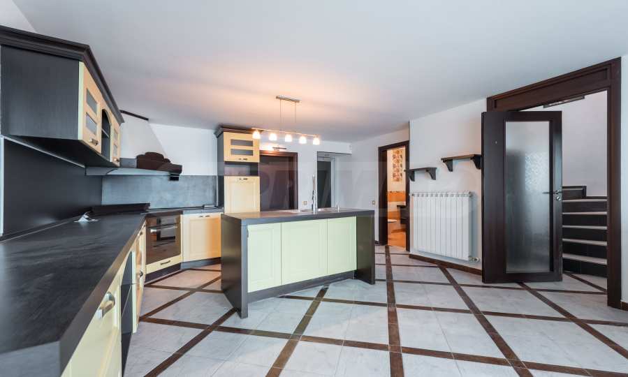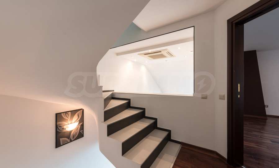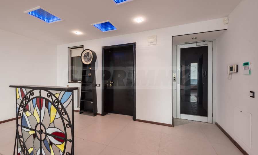 Имотът се предлага необзаведен, в степен на завършеност "до ключ", с кухня. Разполага със собствен асансьор и сауна, има модерна камина.