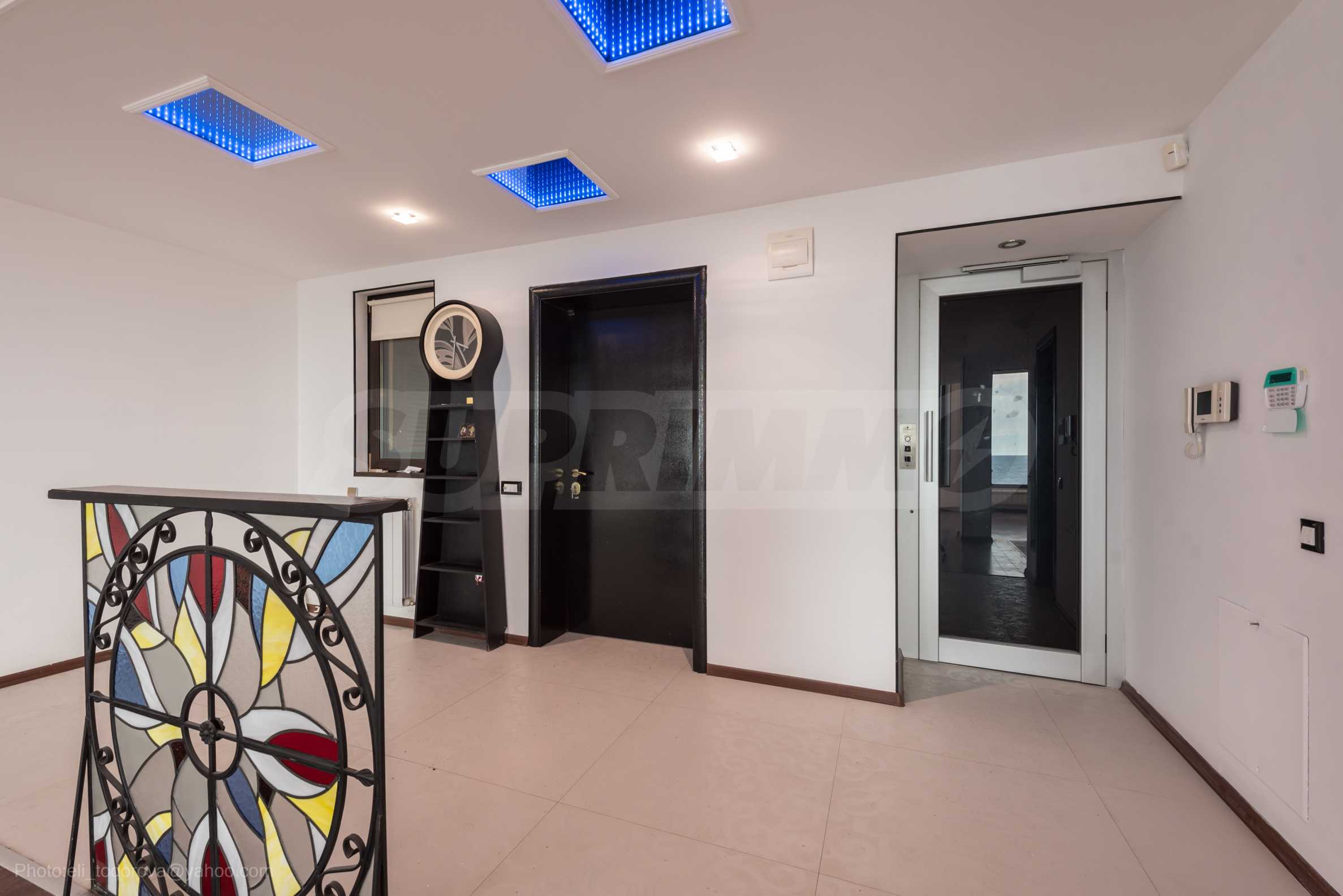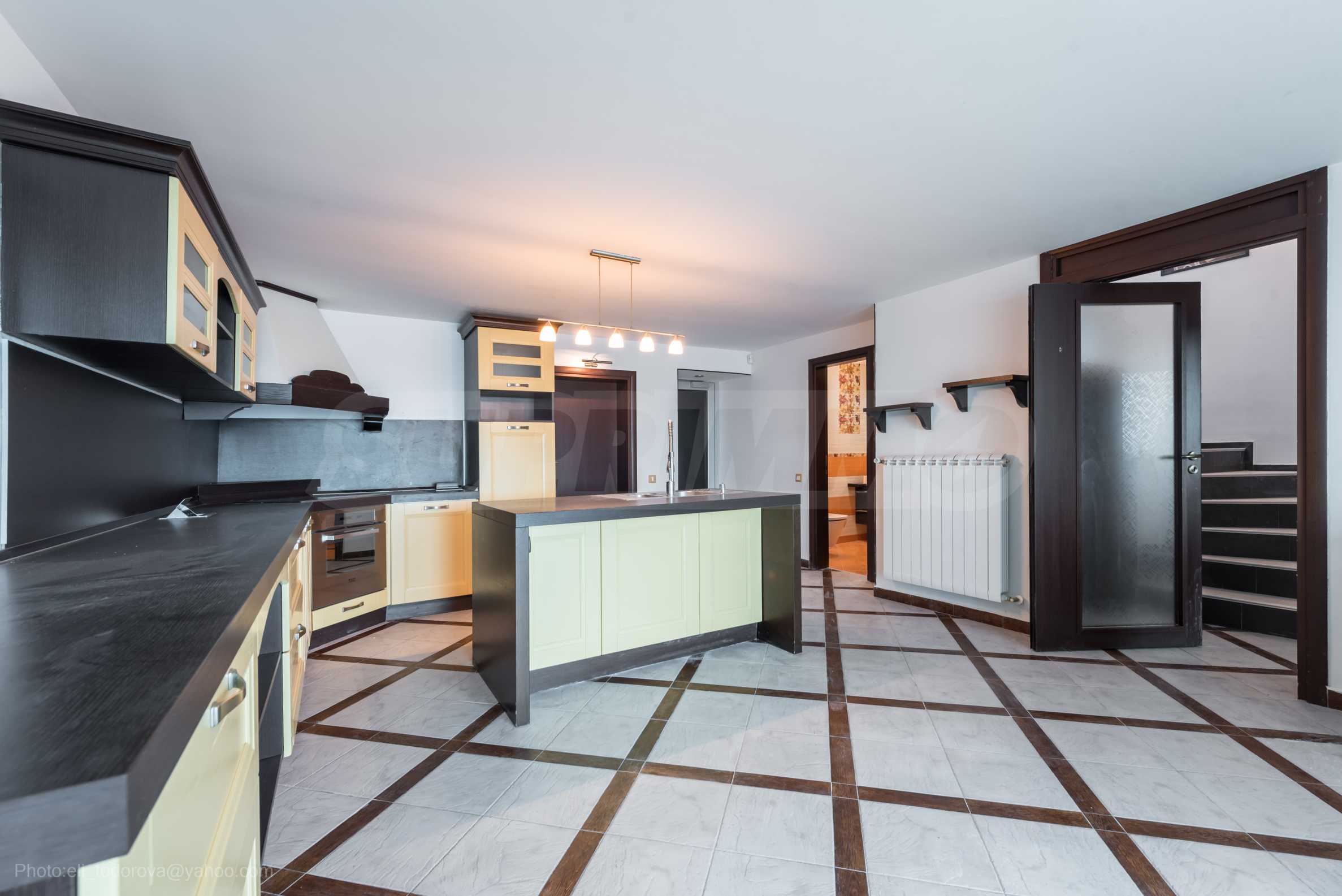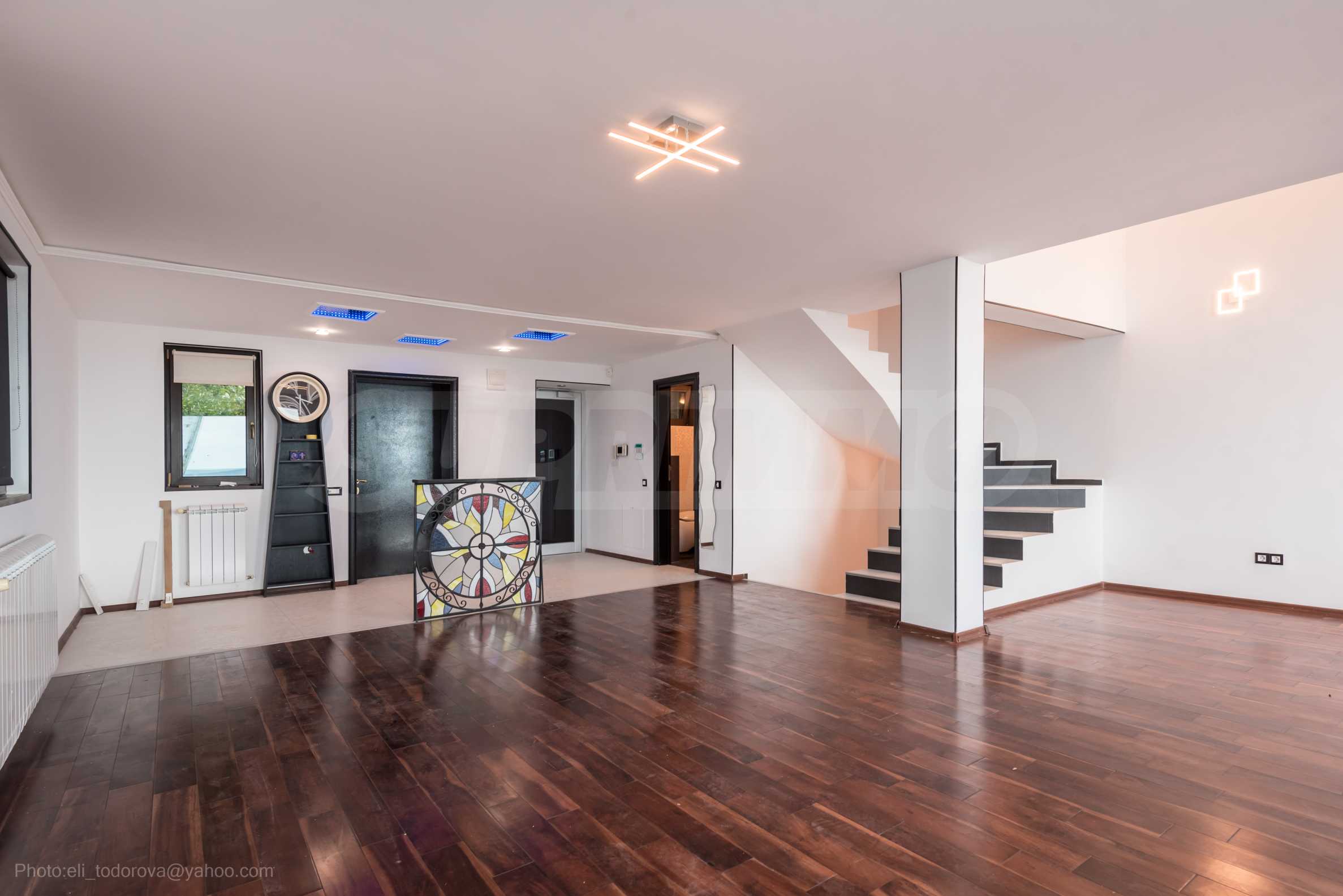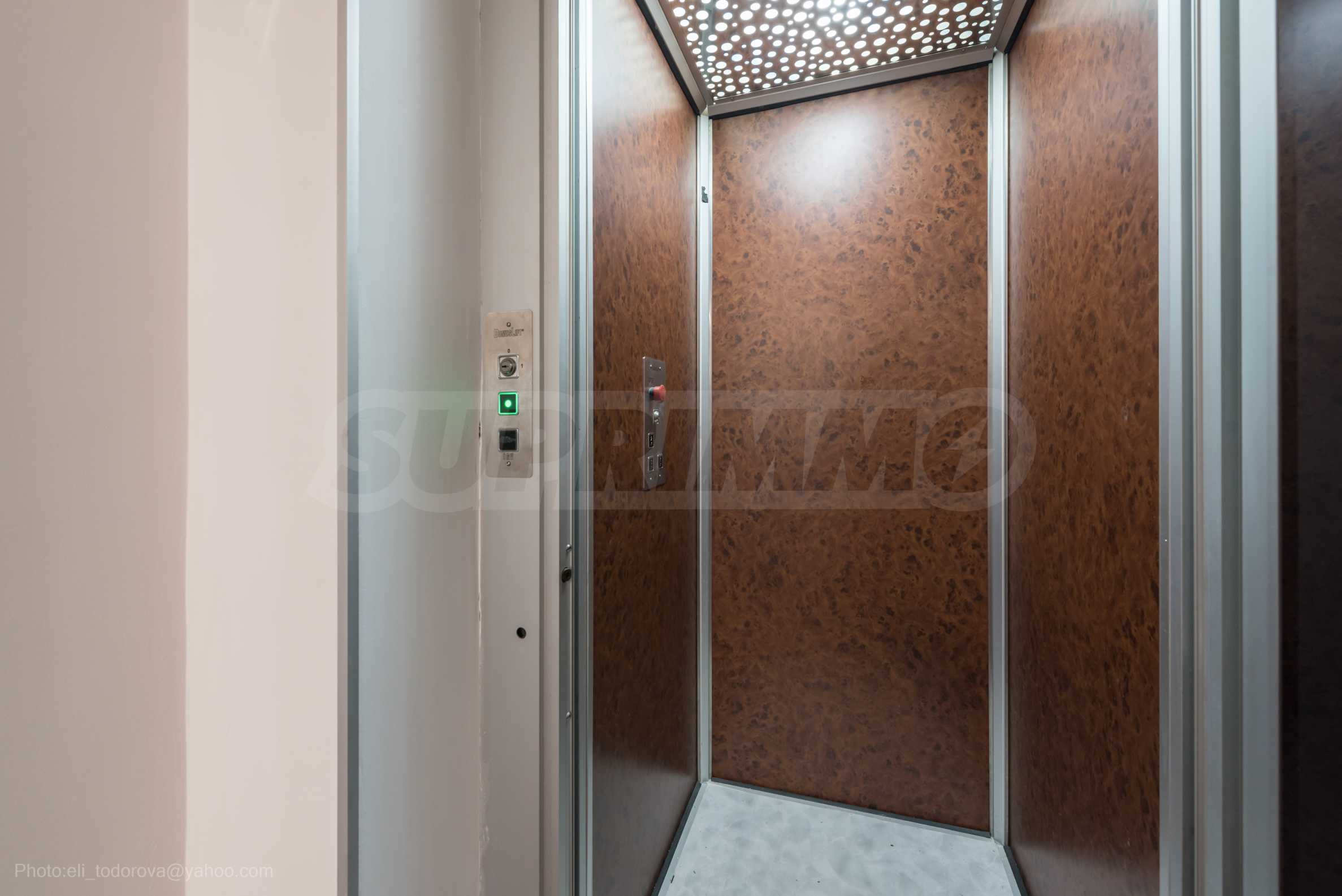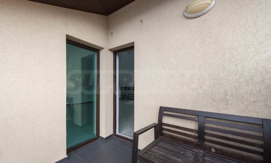 Имотът се предлага необзаведен, в степен на завършеност "до ключ", с кухня. Разполага със собствен асансьор и сауна, има модерна камина.