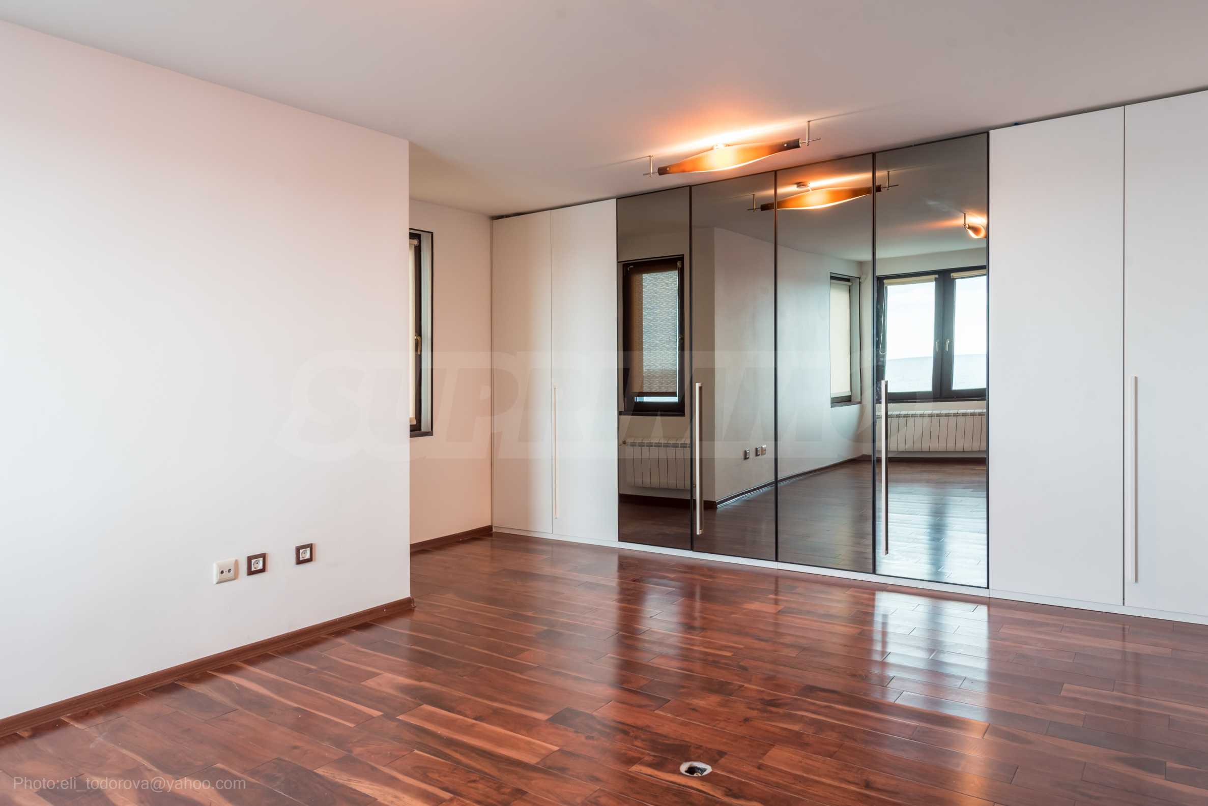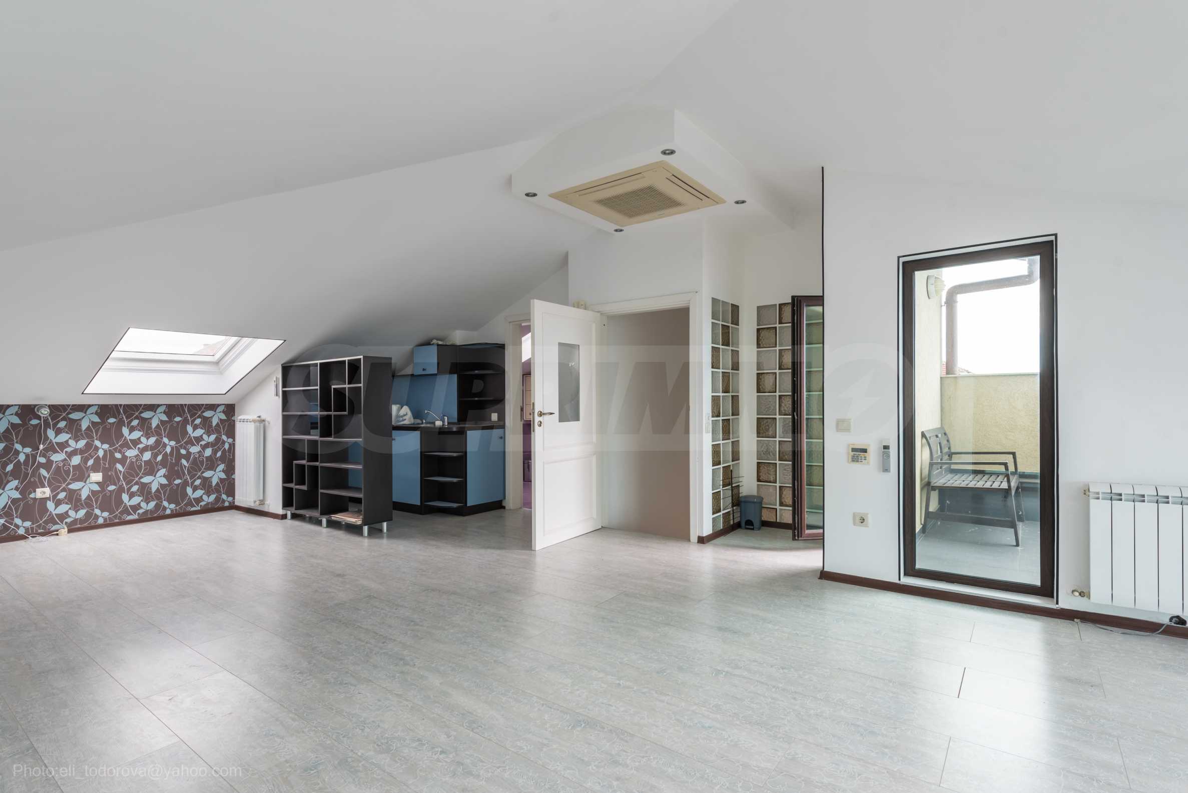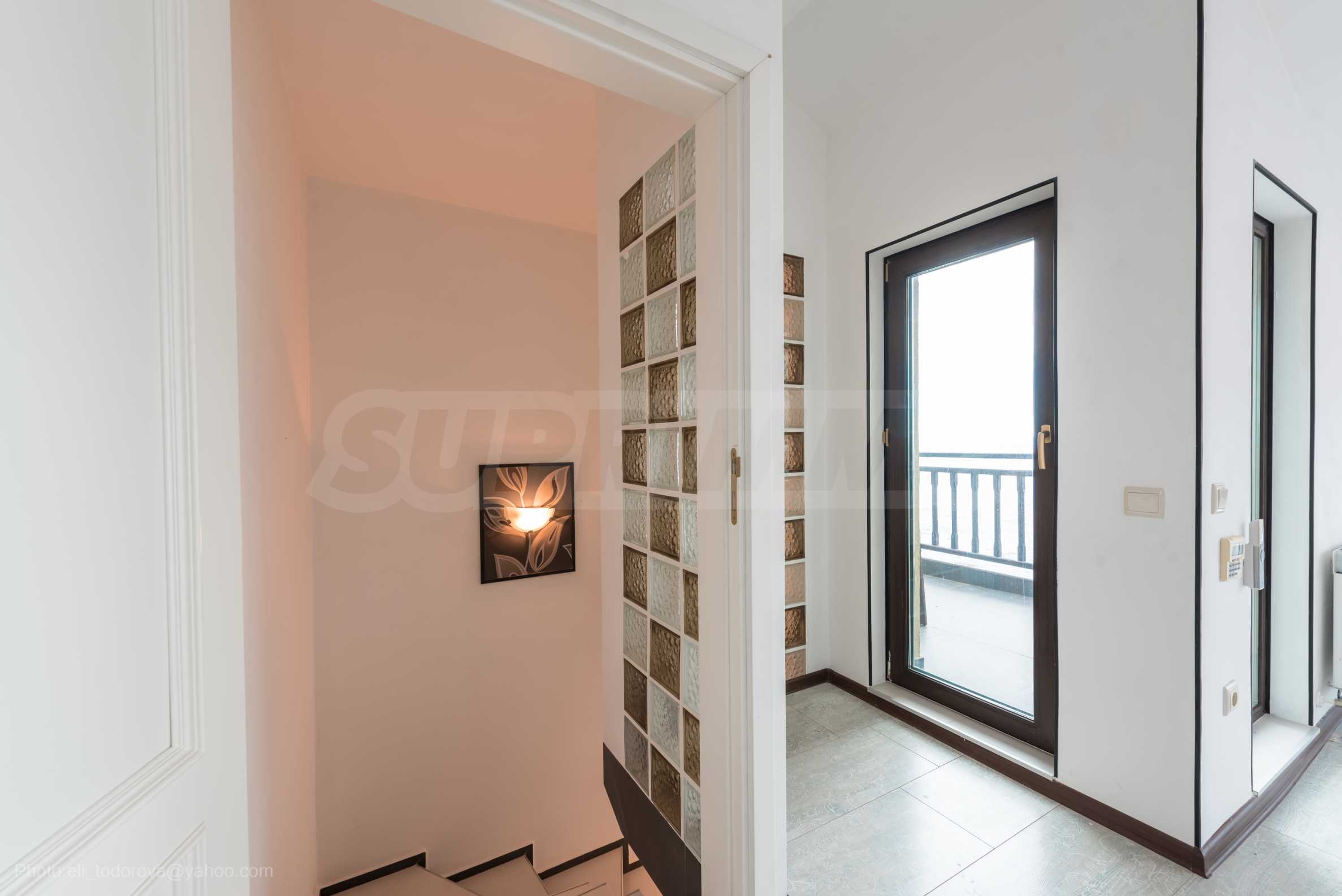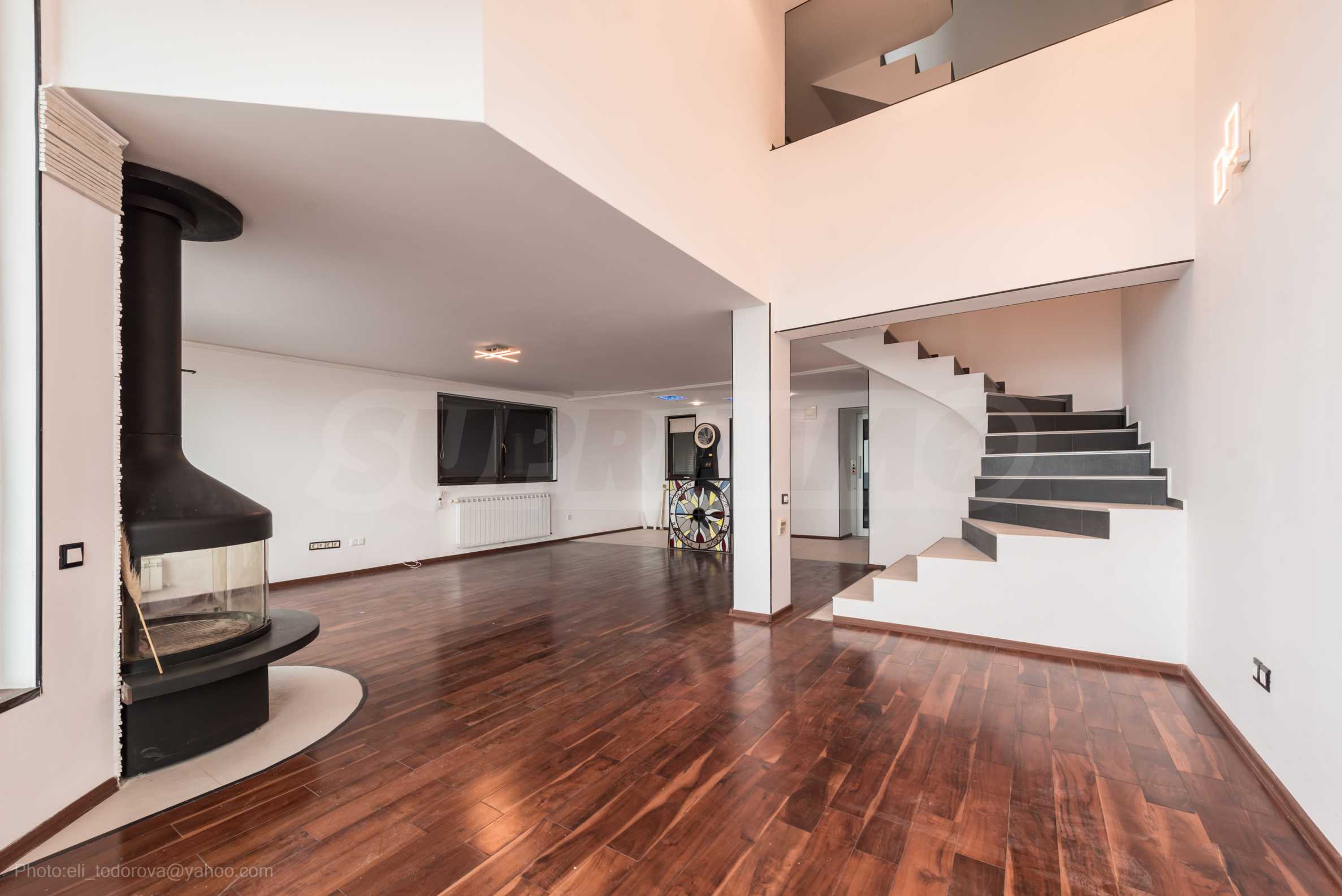Имотът се предлага необзаведен, в степен на завършеност "до ключ", с кухня. Разполага със собствен асансьор и сауна, има модерна камина.