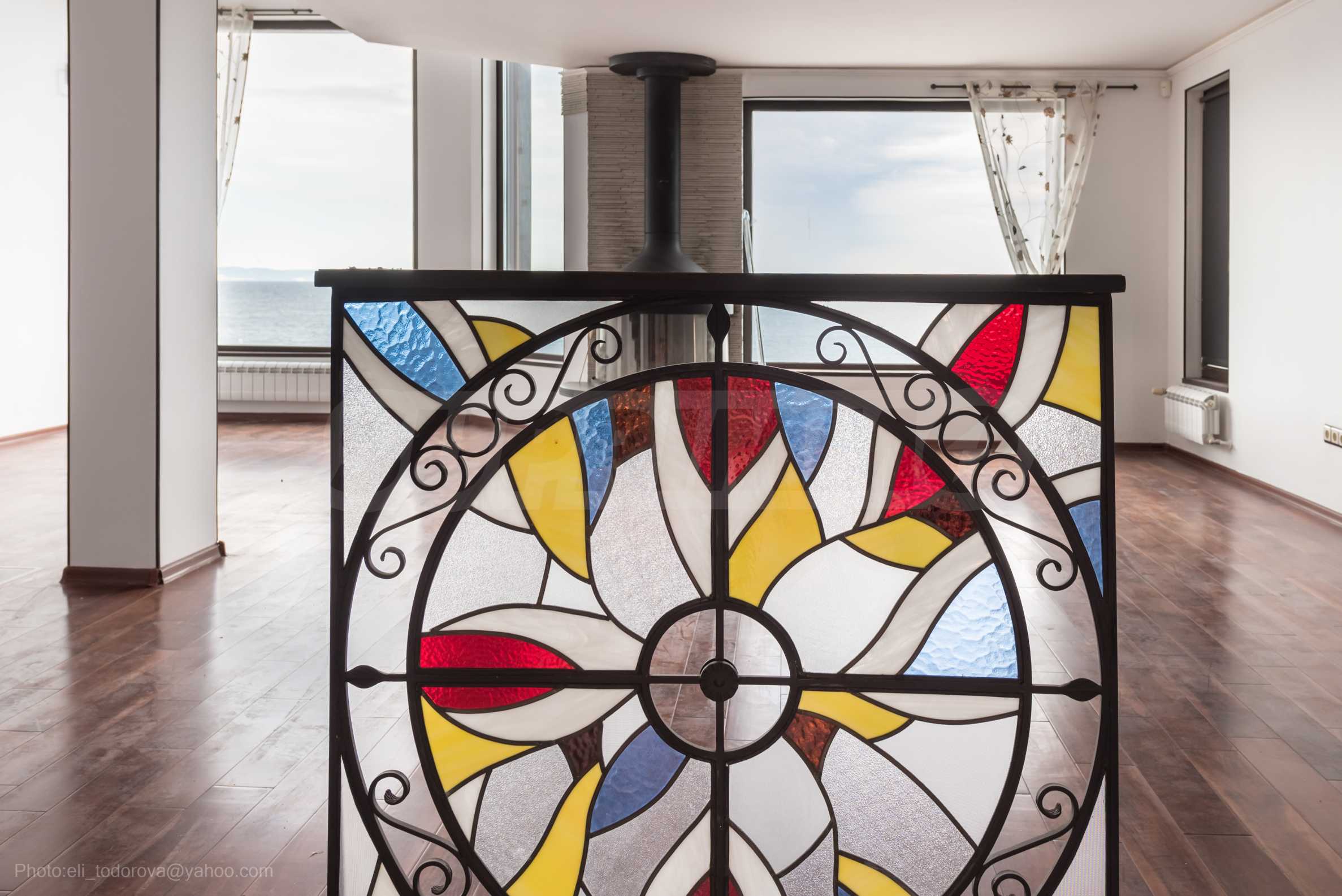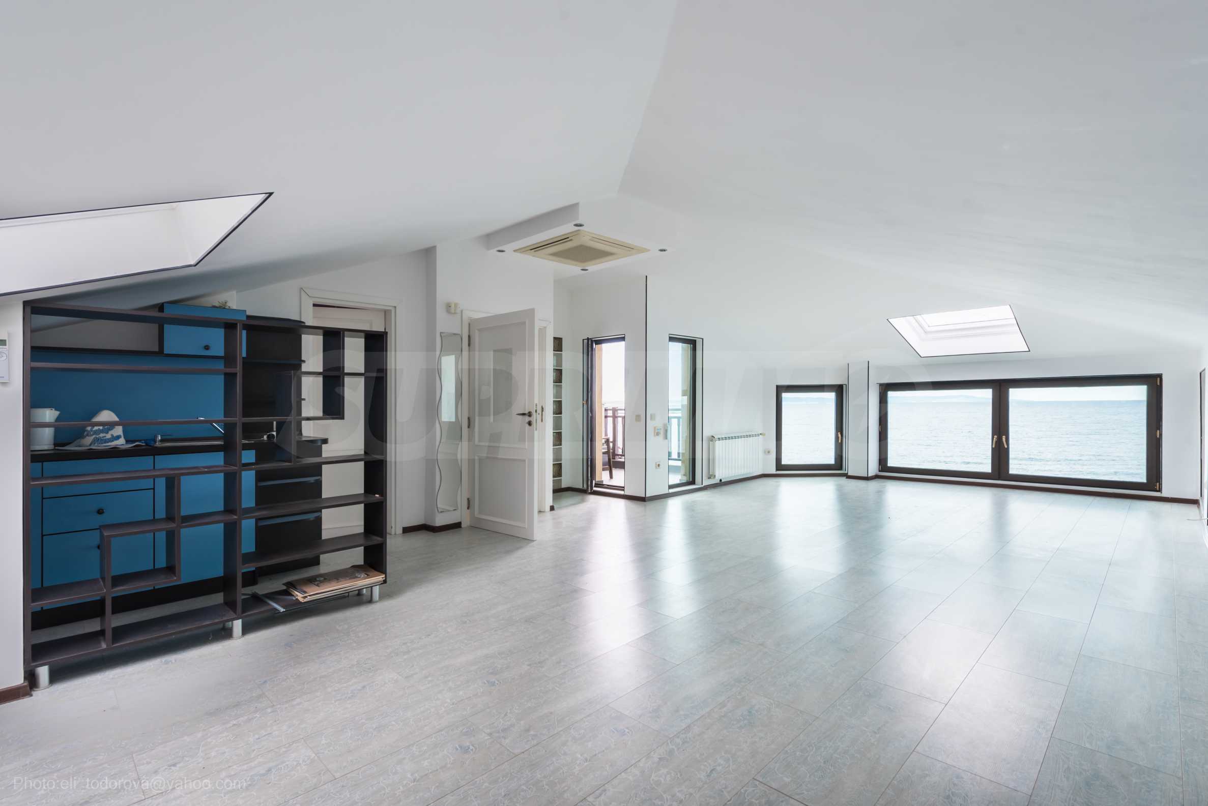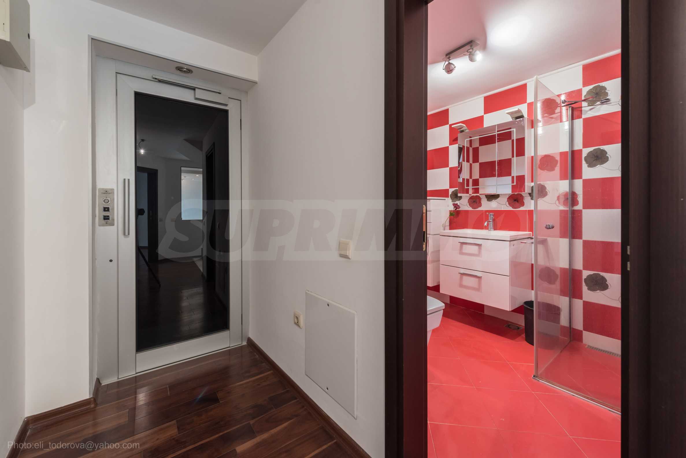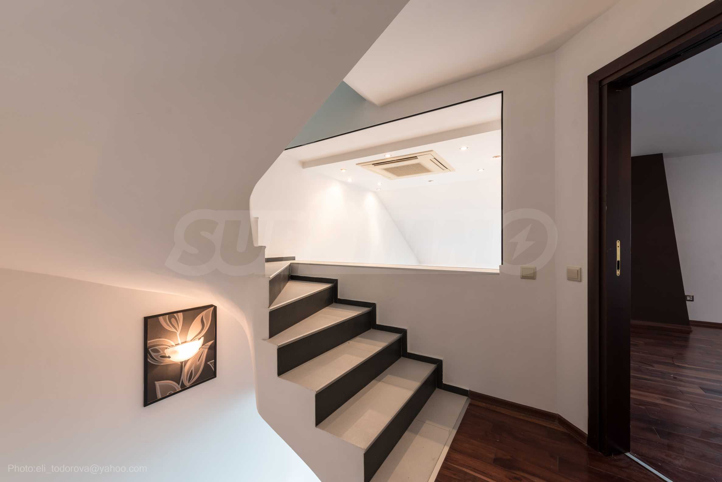 Имотът се предлага необзаведен, в степен на завършеност "до ключ", с кухня. Разполага със собствен асансьор и сауна, има модерна камина.